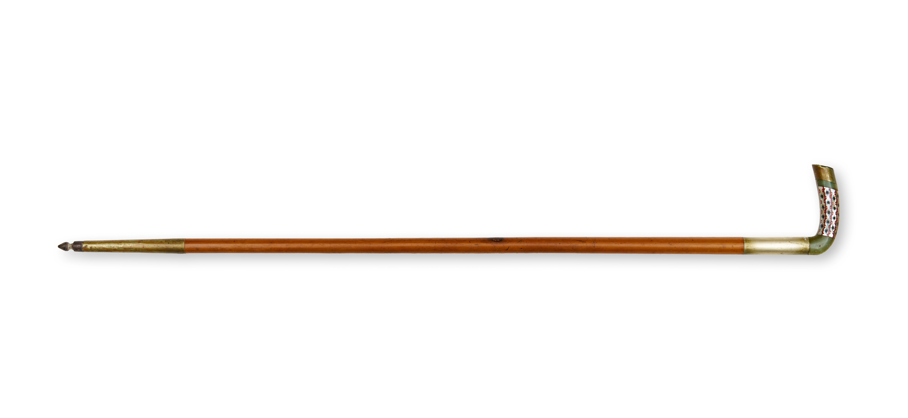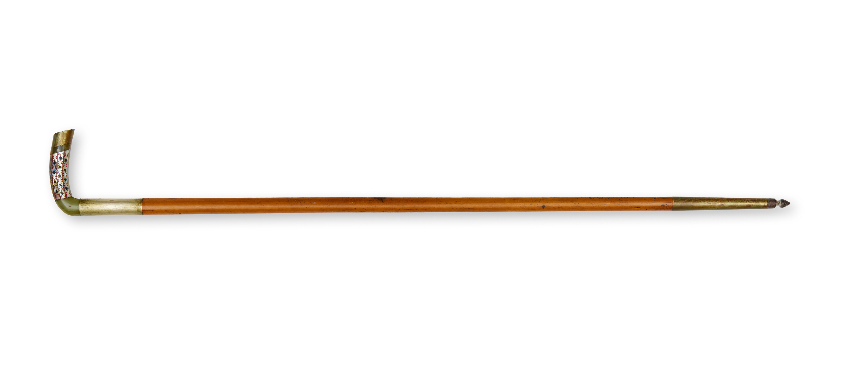 A JADE INLAID HANDLE WOODEN SWAGGER WALKING STICK, POSSIBLY INDIA, LATE 19TH – EARLY 20TH CENTURY