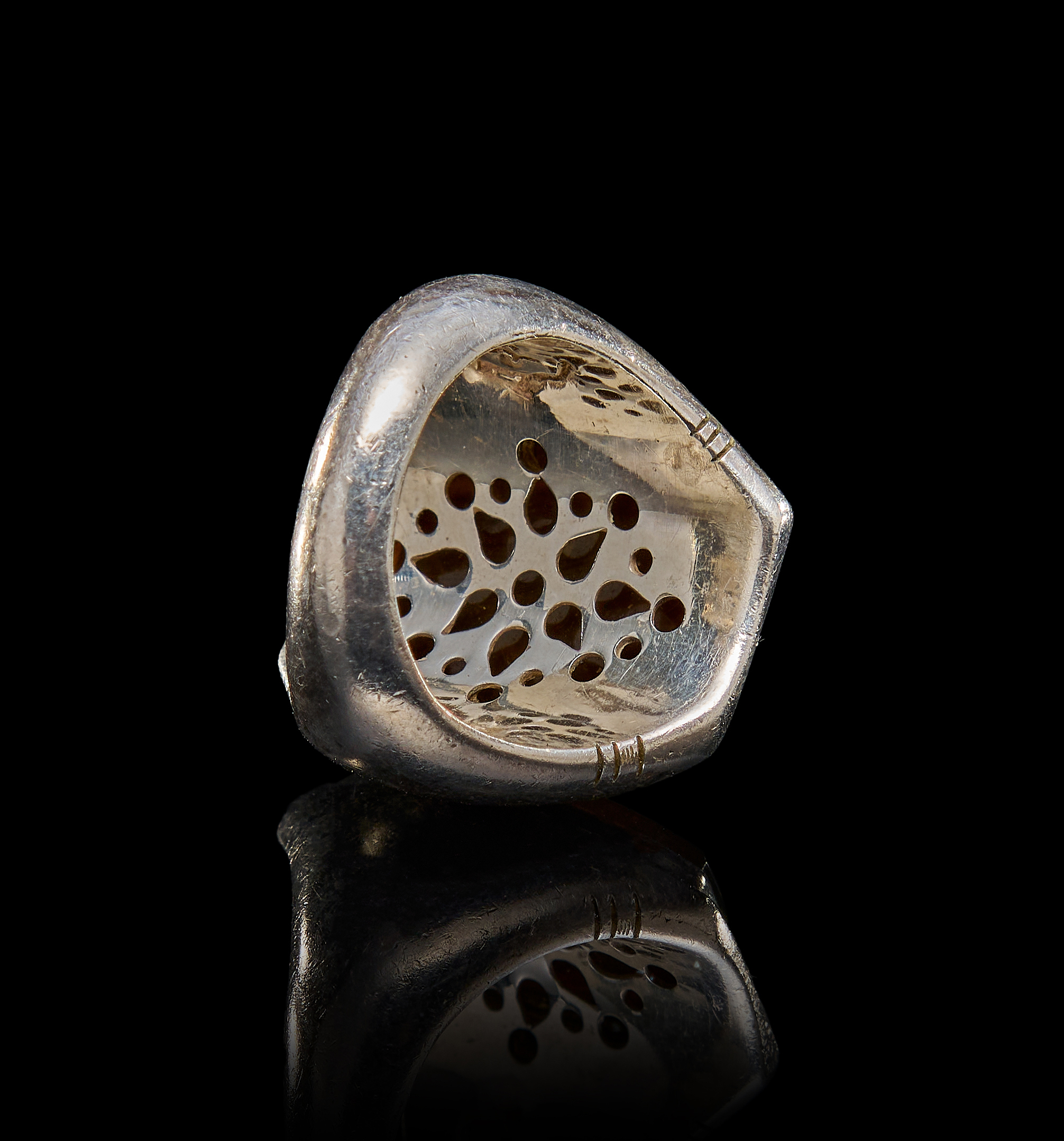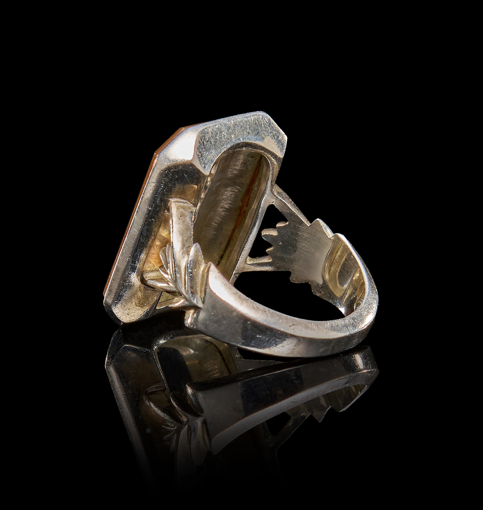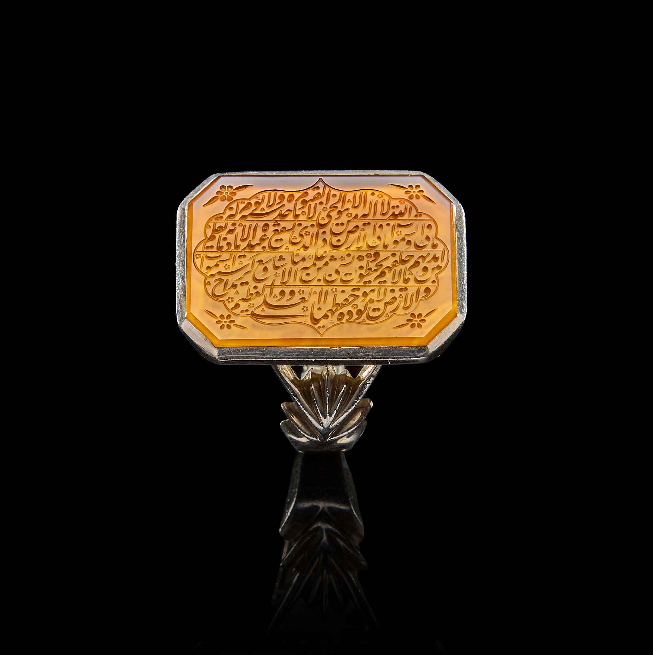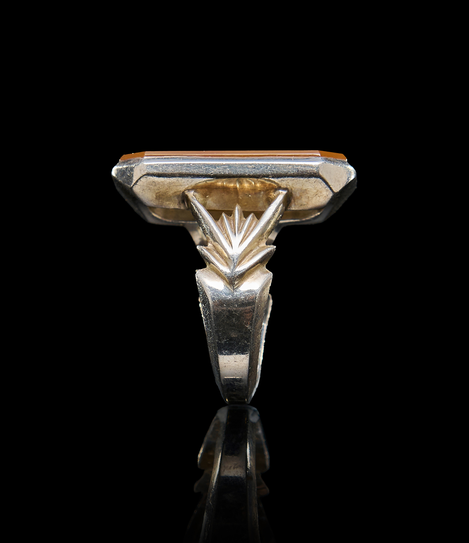 AN INSCRIBED ISLAMIC AGATE IN A SILVER RING