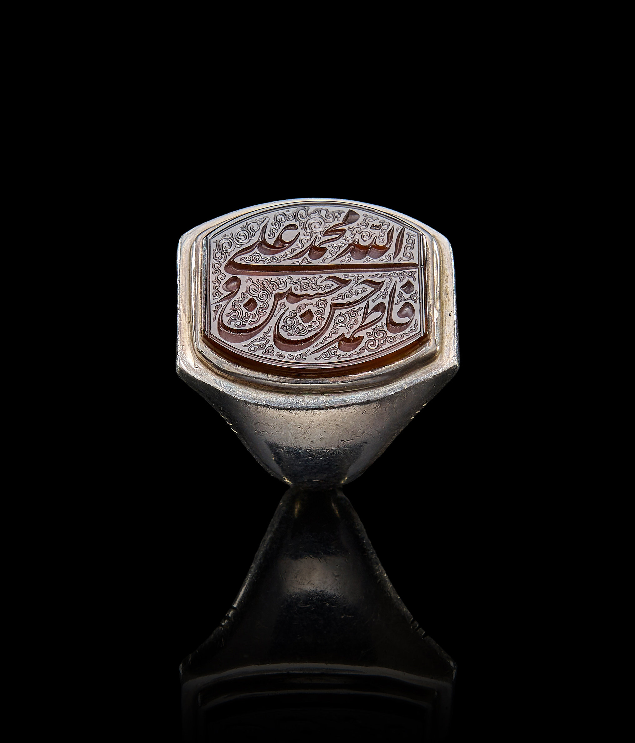 AN INSCRIBED ISLAMIC AGATE IN A SILVER RING