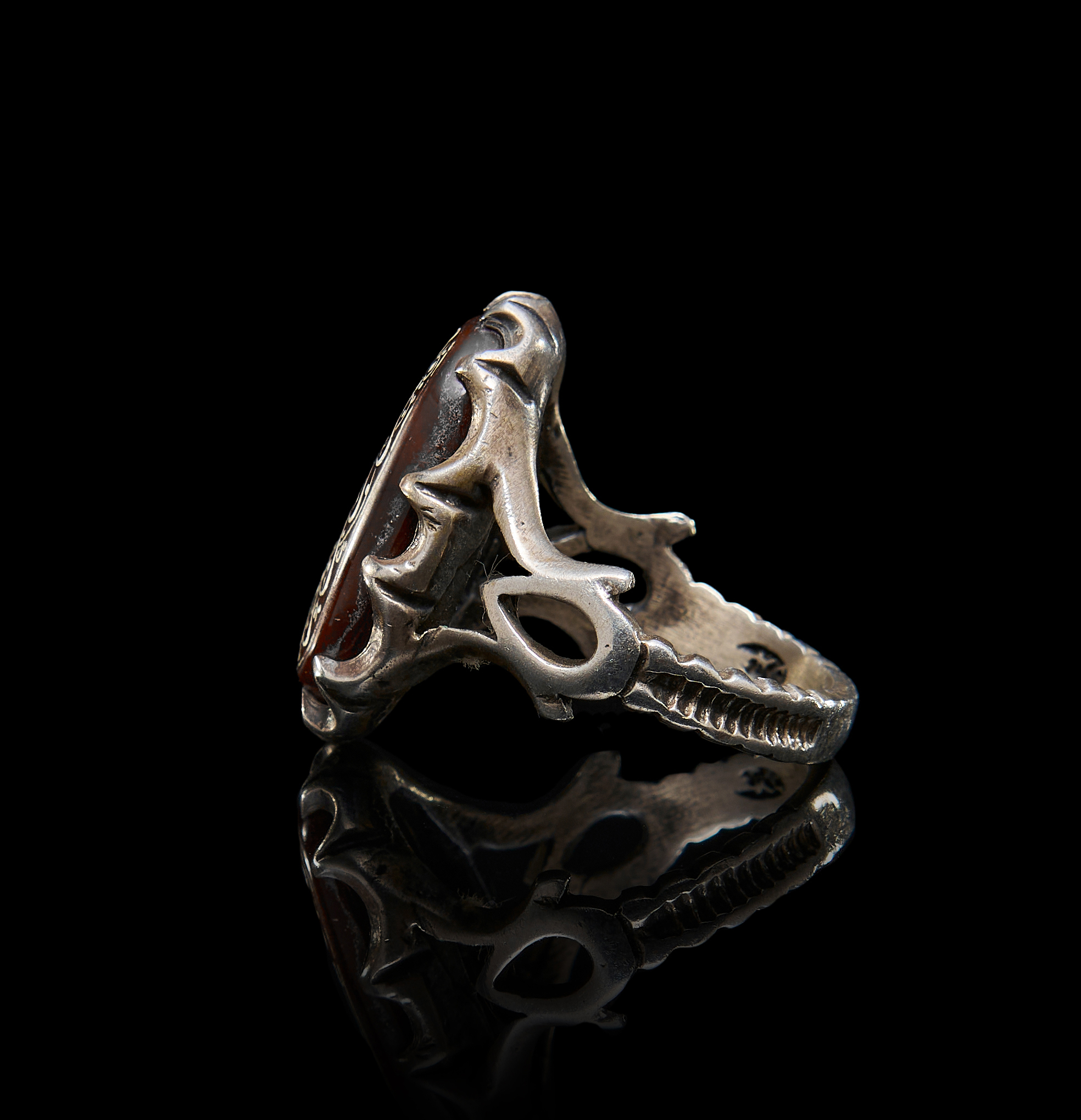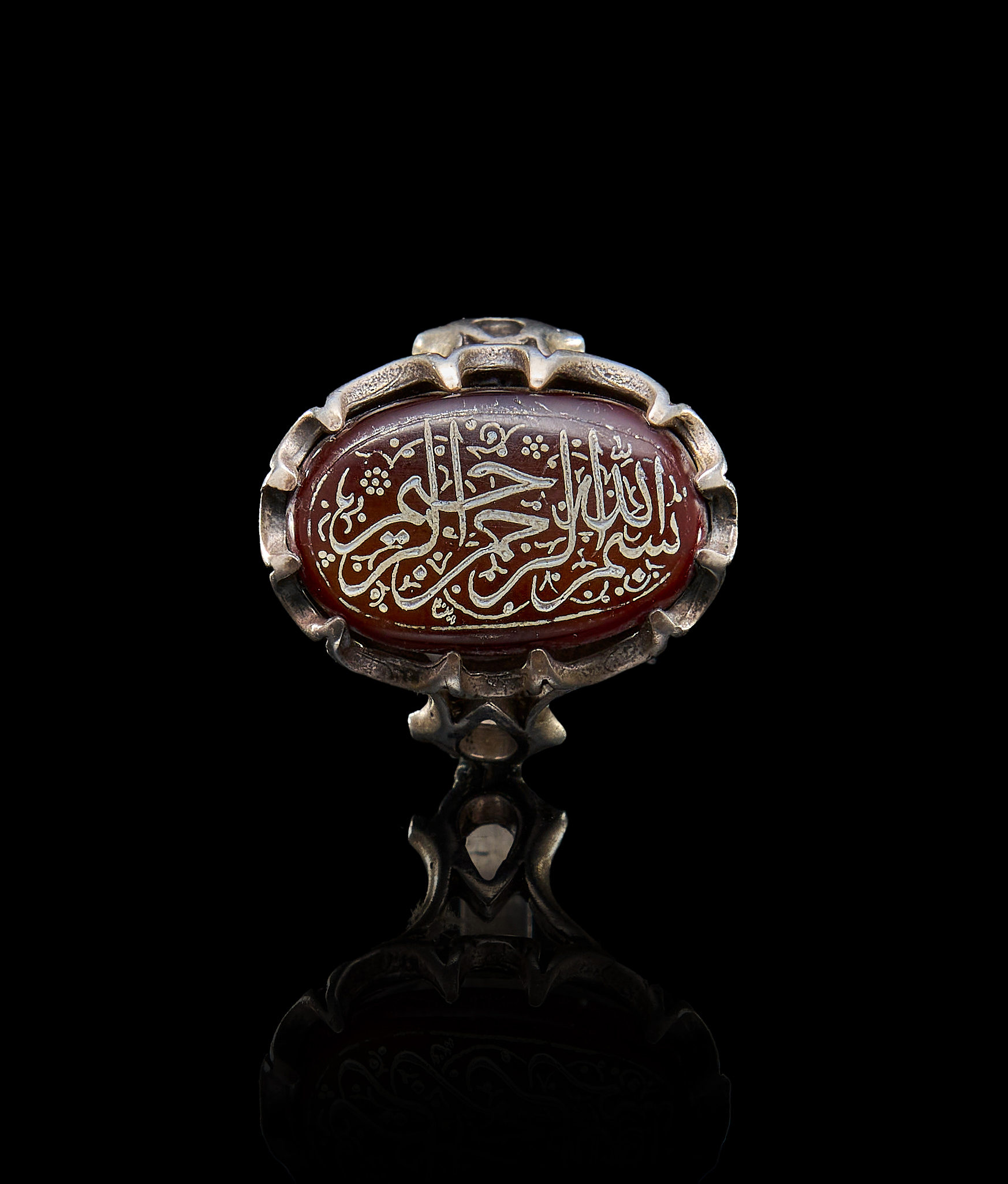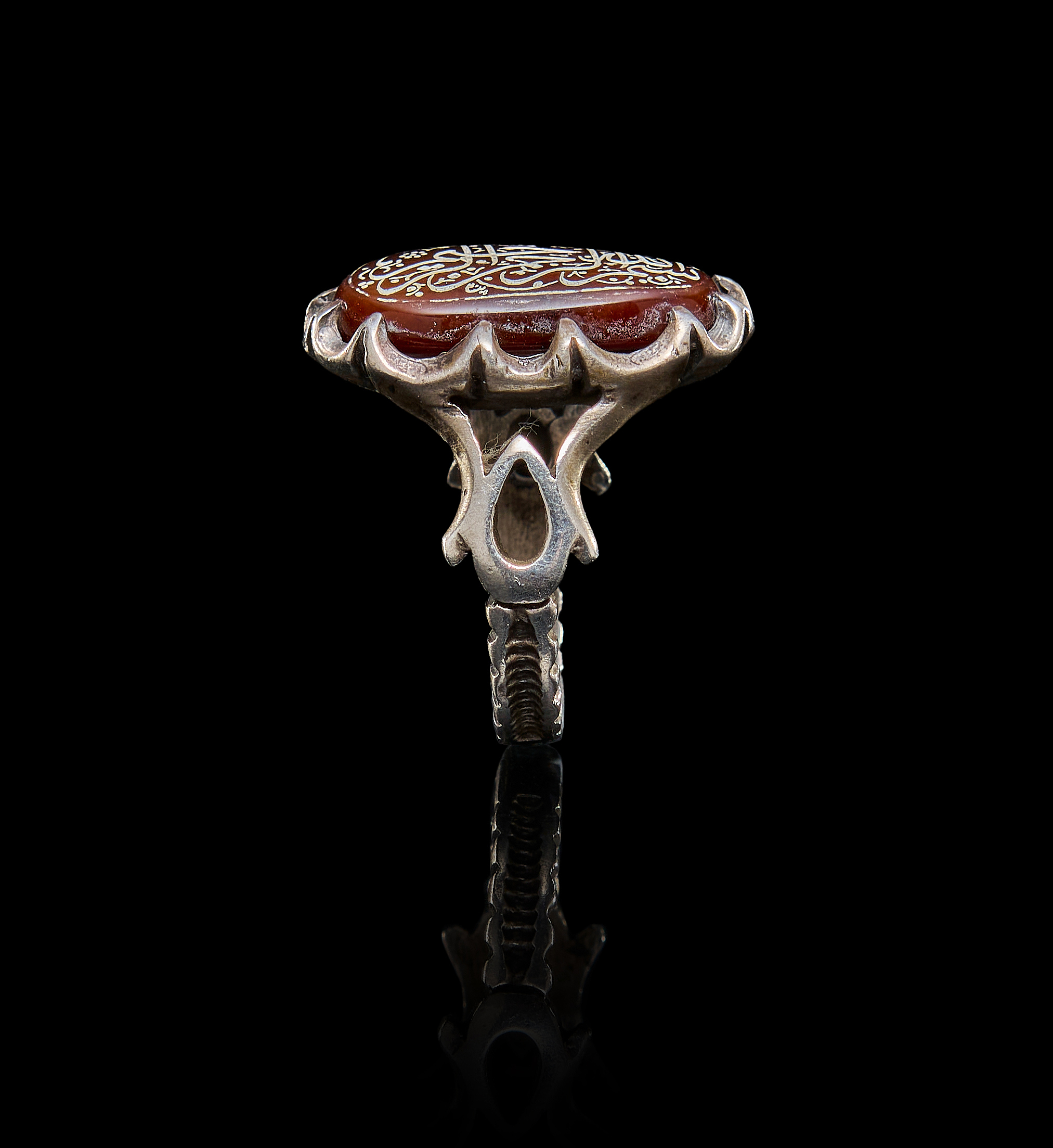 AN INSCRIBED ISLAMIC AGATE IN A SILVER RING