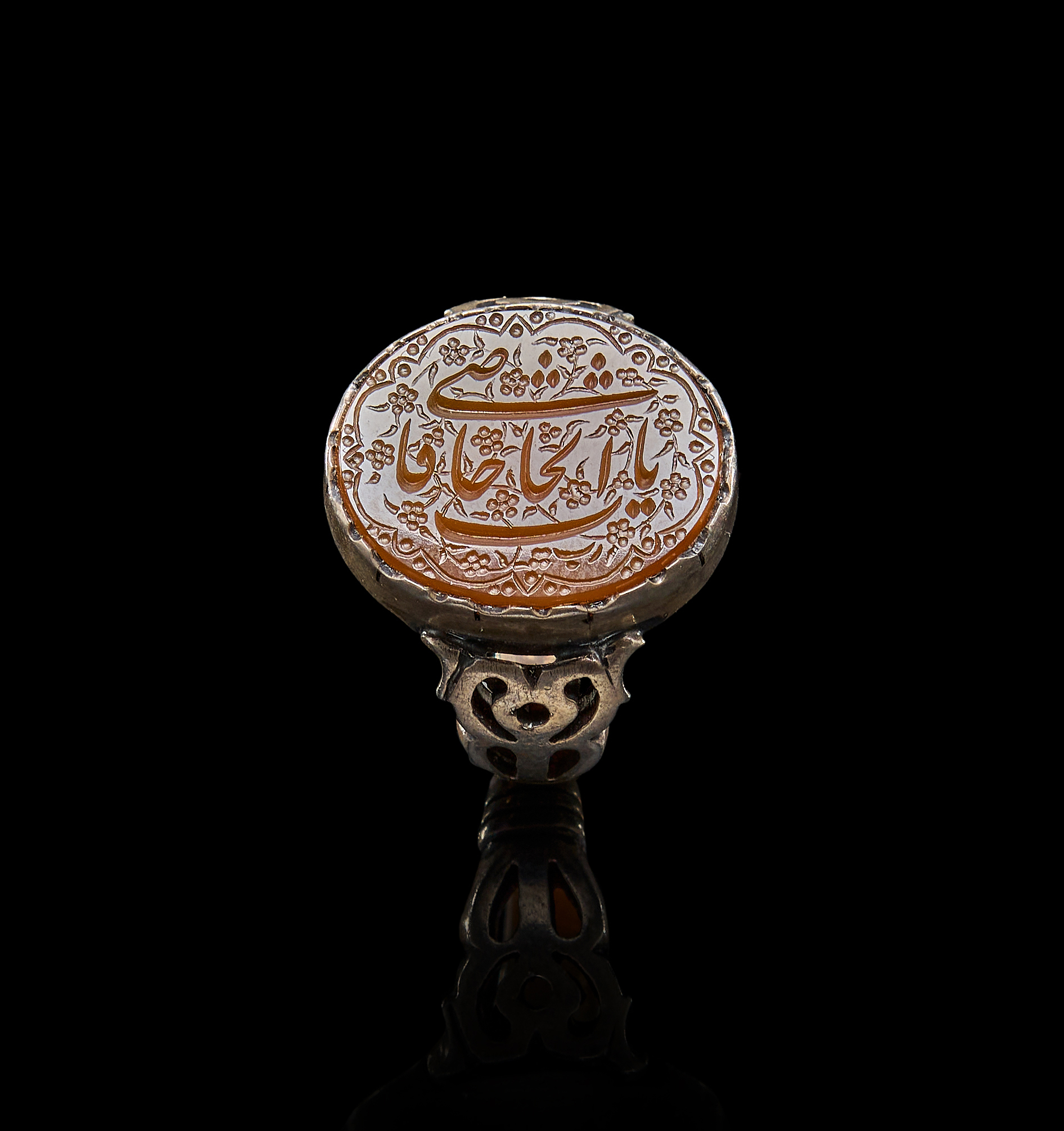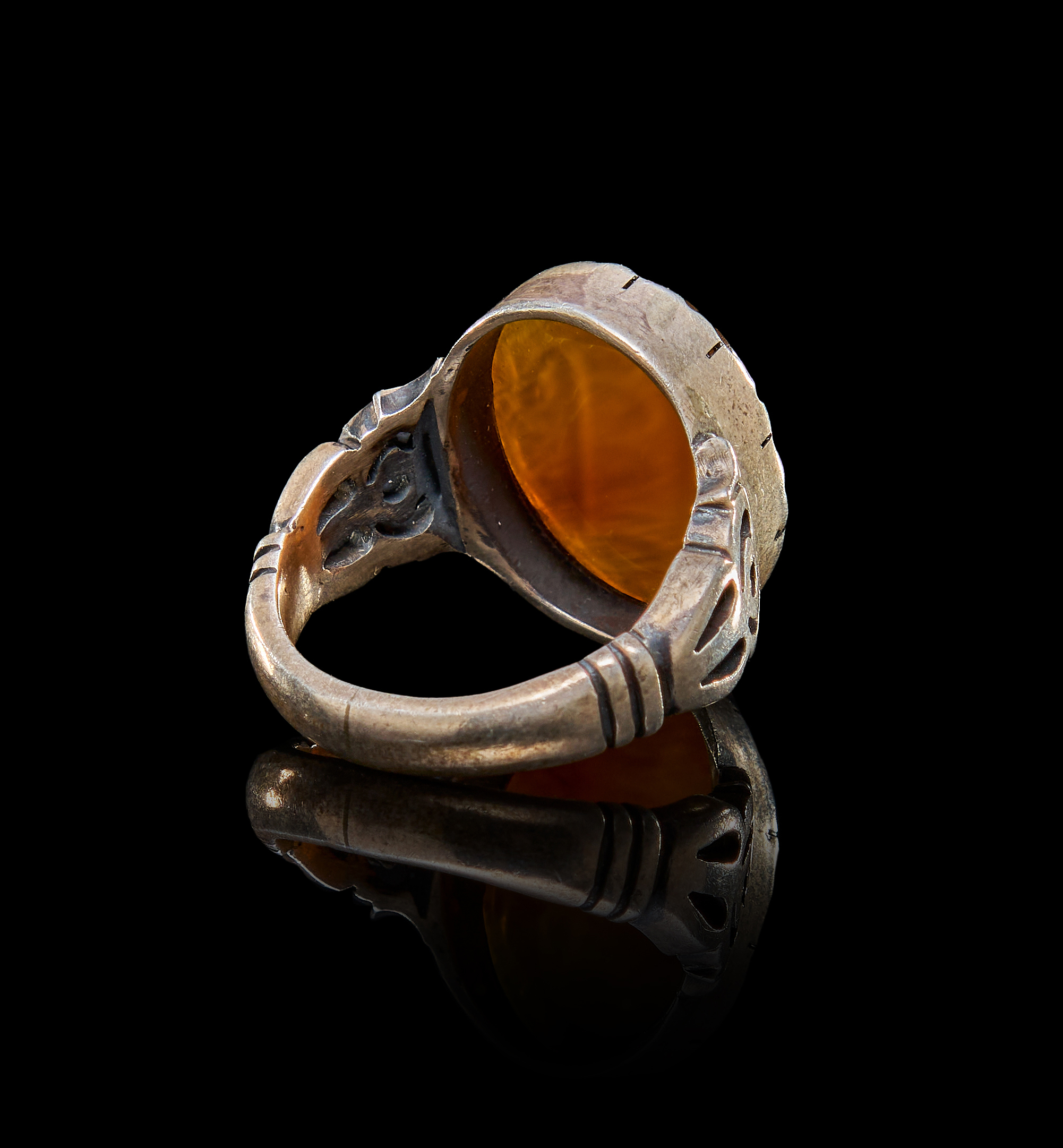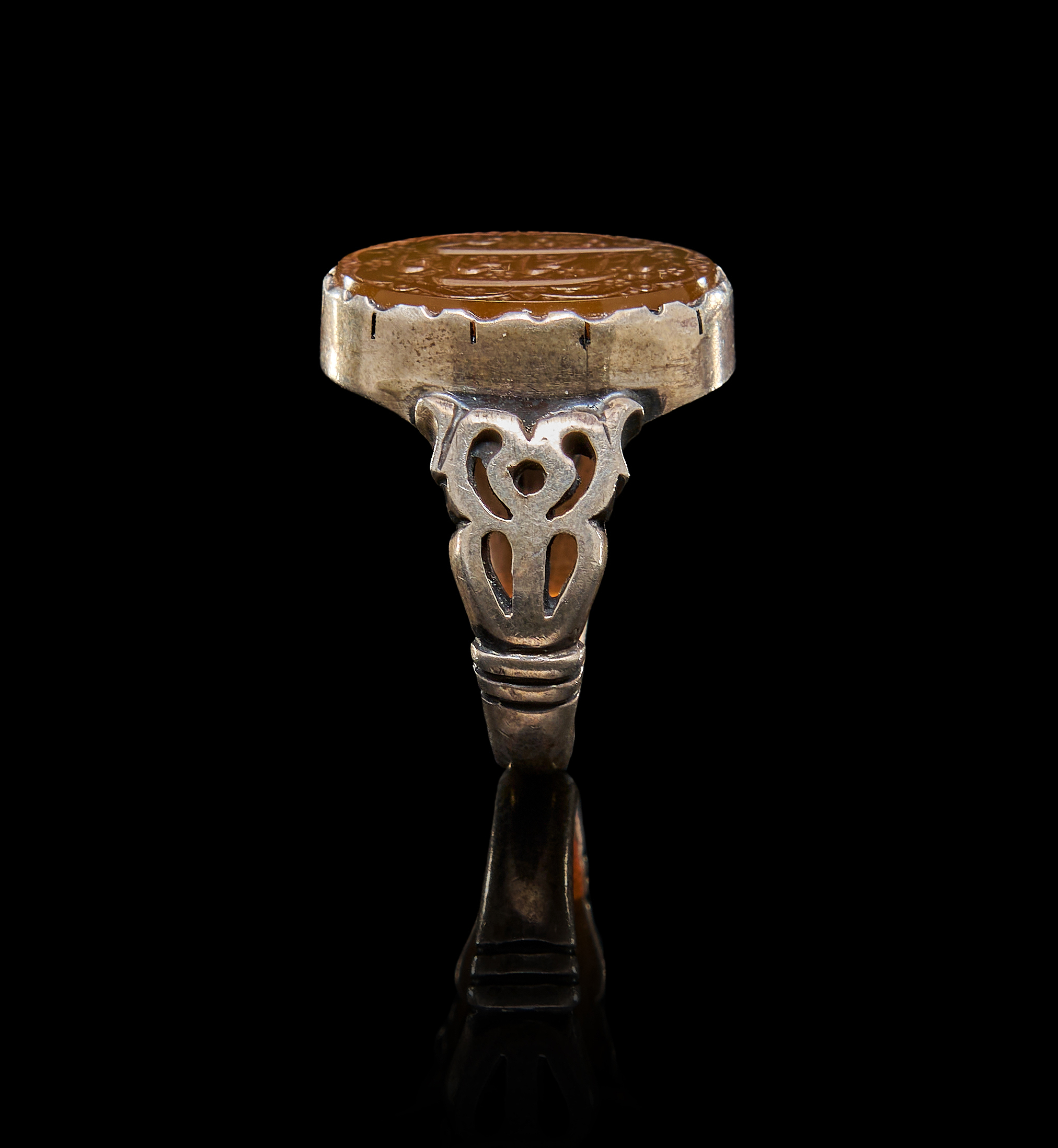 AN INSCRIBED ISLAMIC AGATE IN A SILVER RING