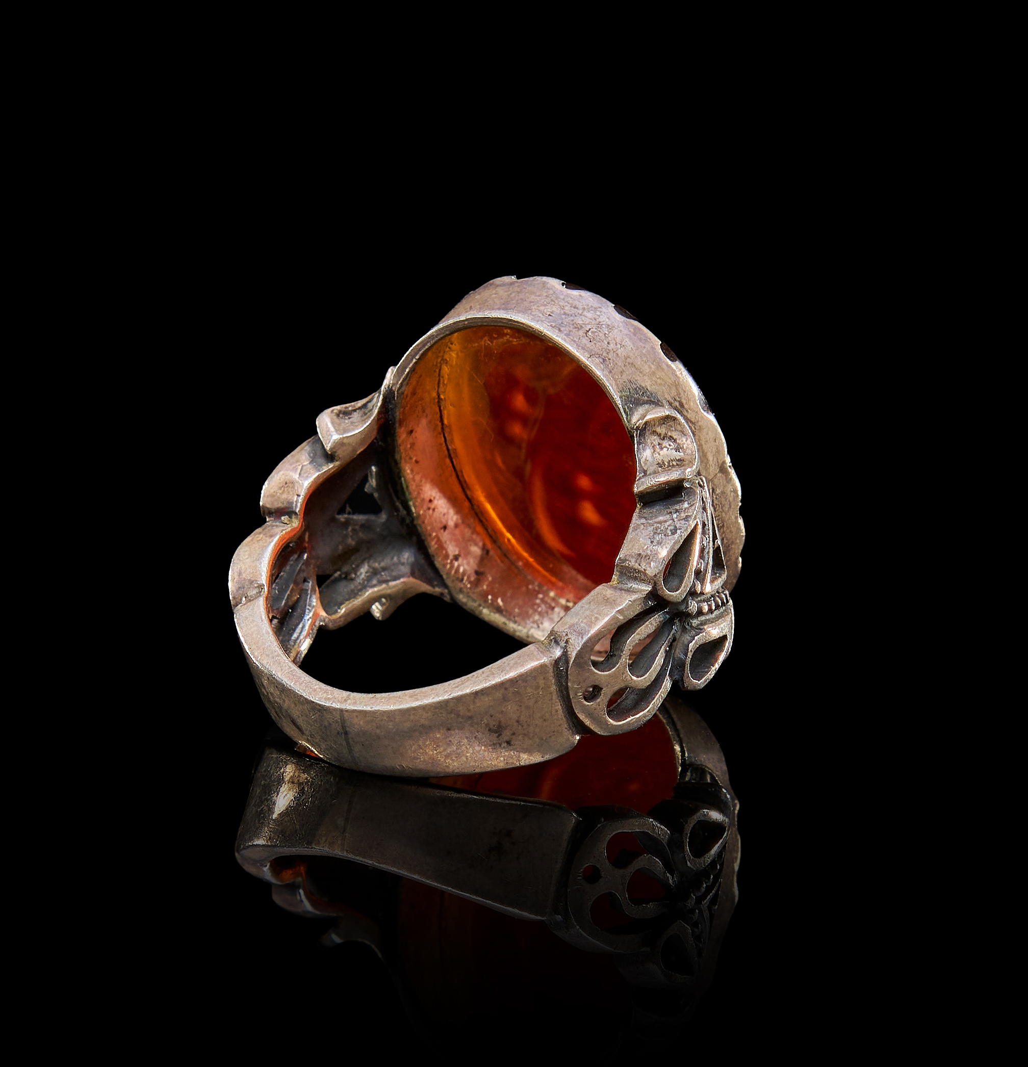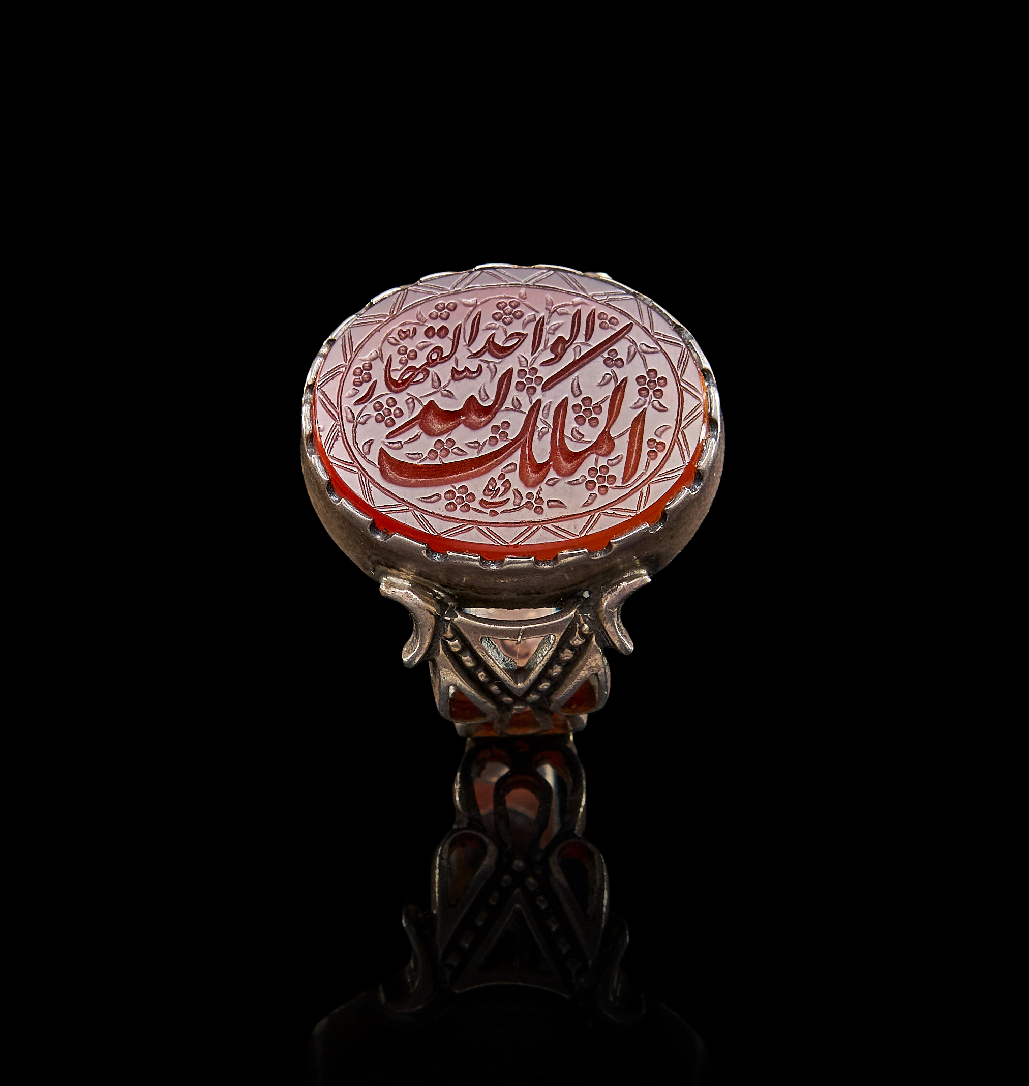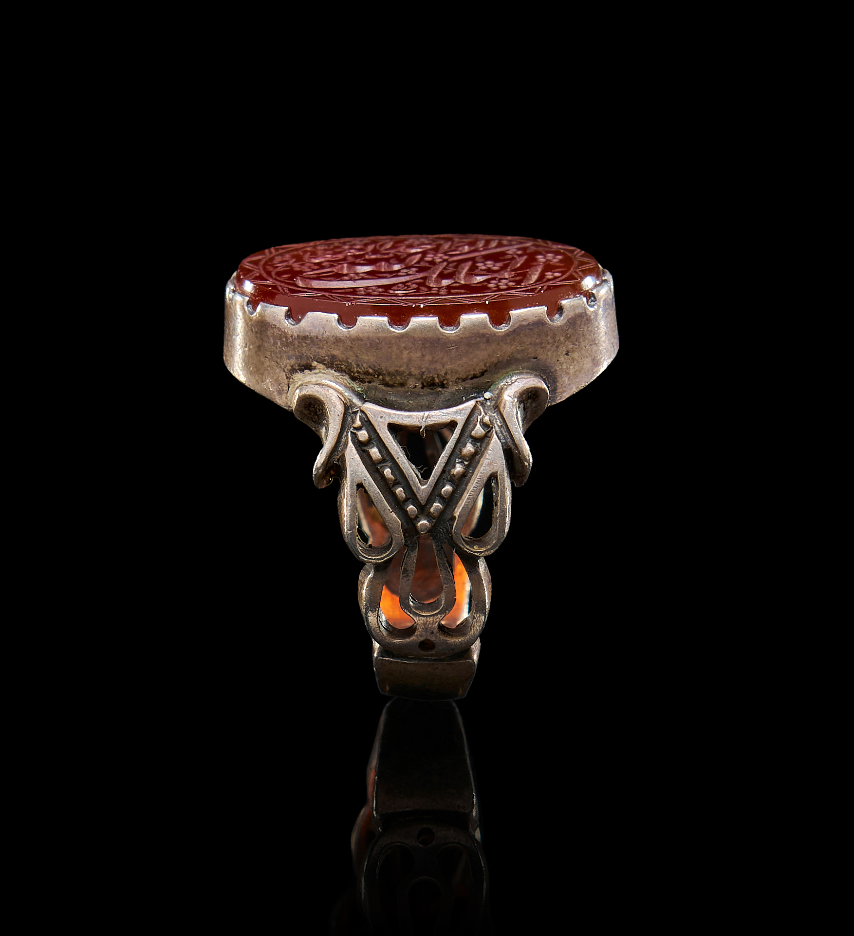 AN INSCRIBED ISLAMIC AGATE IN A SILVER RING