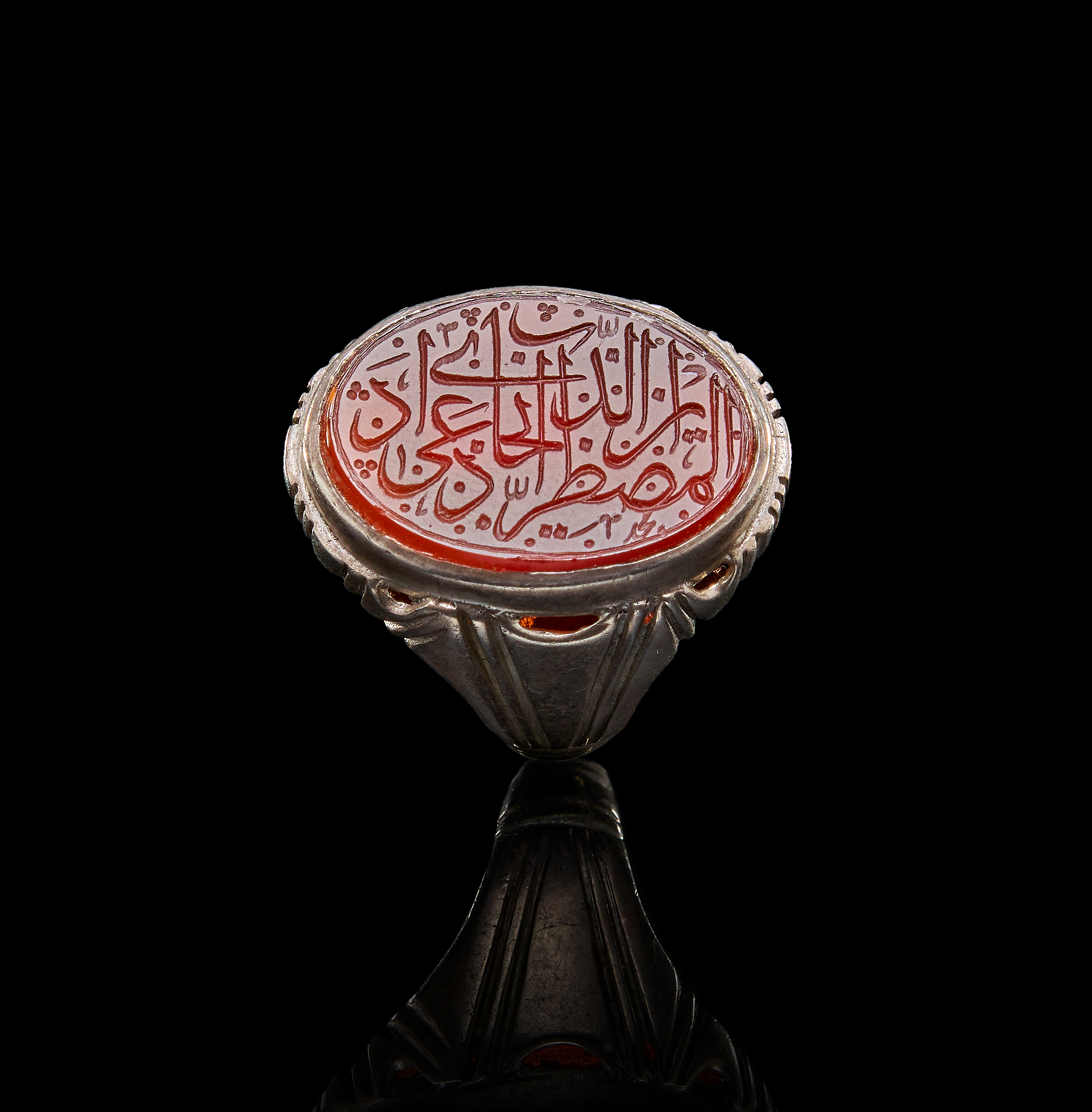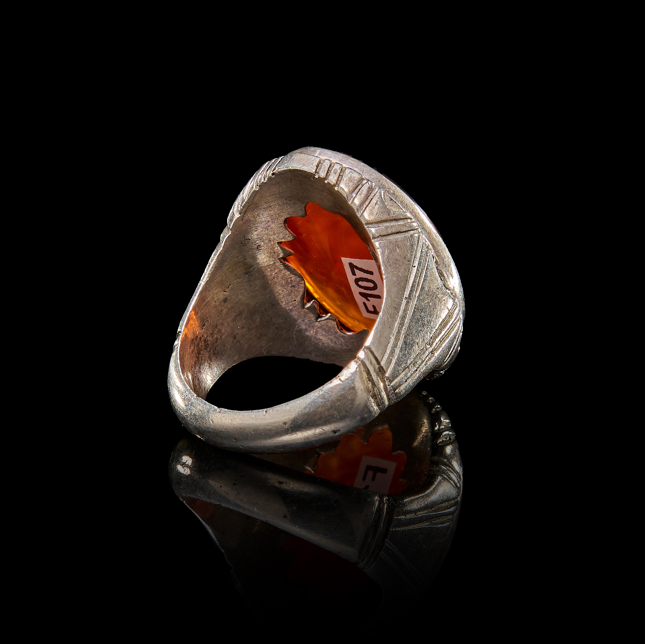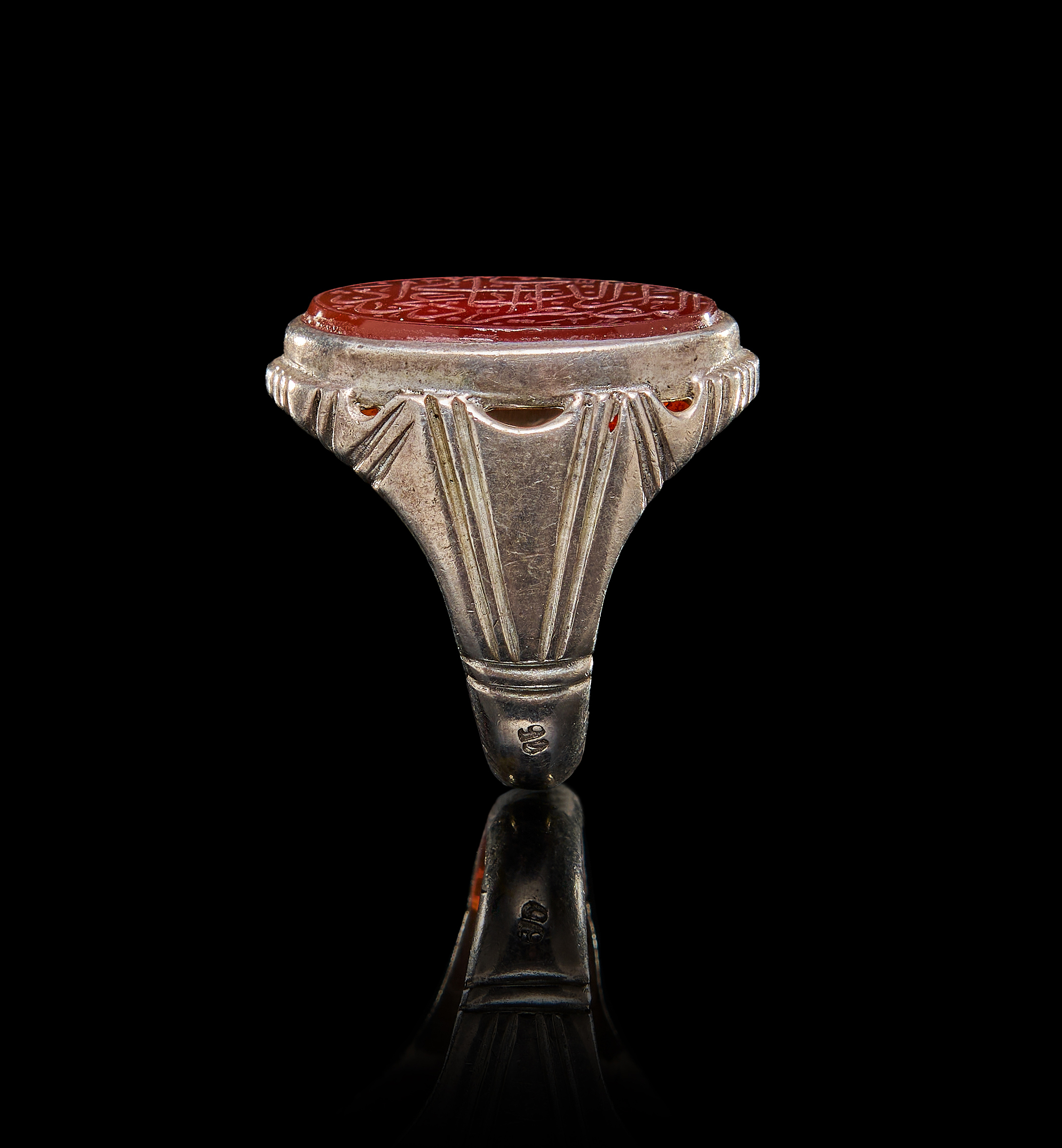 AN INSCRIBED ISLAMIC AGATE IN A SILVER RING