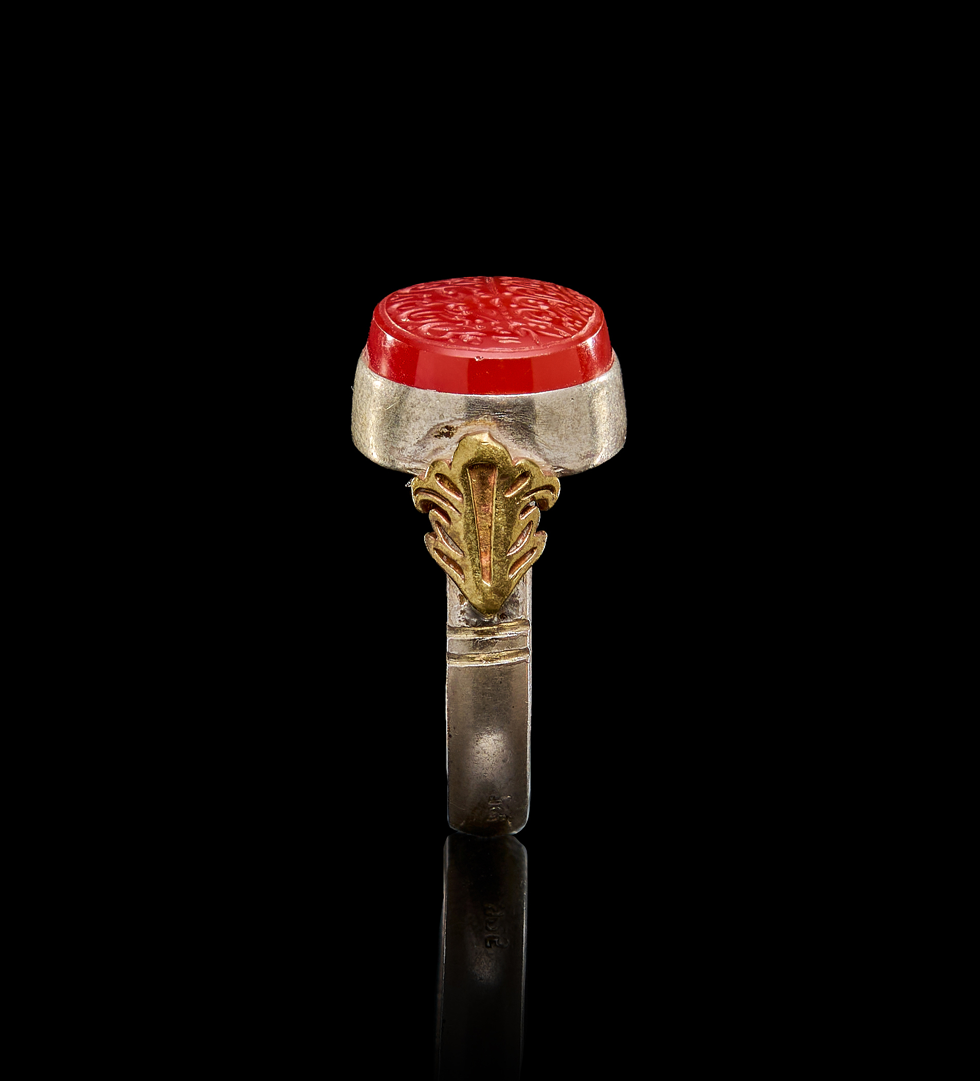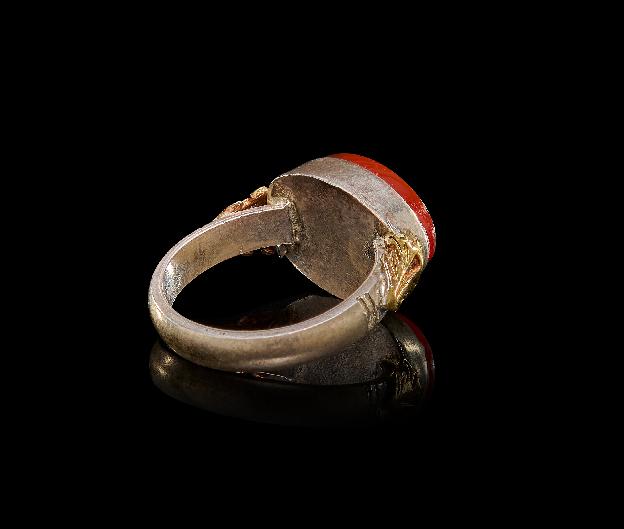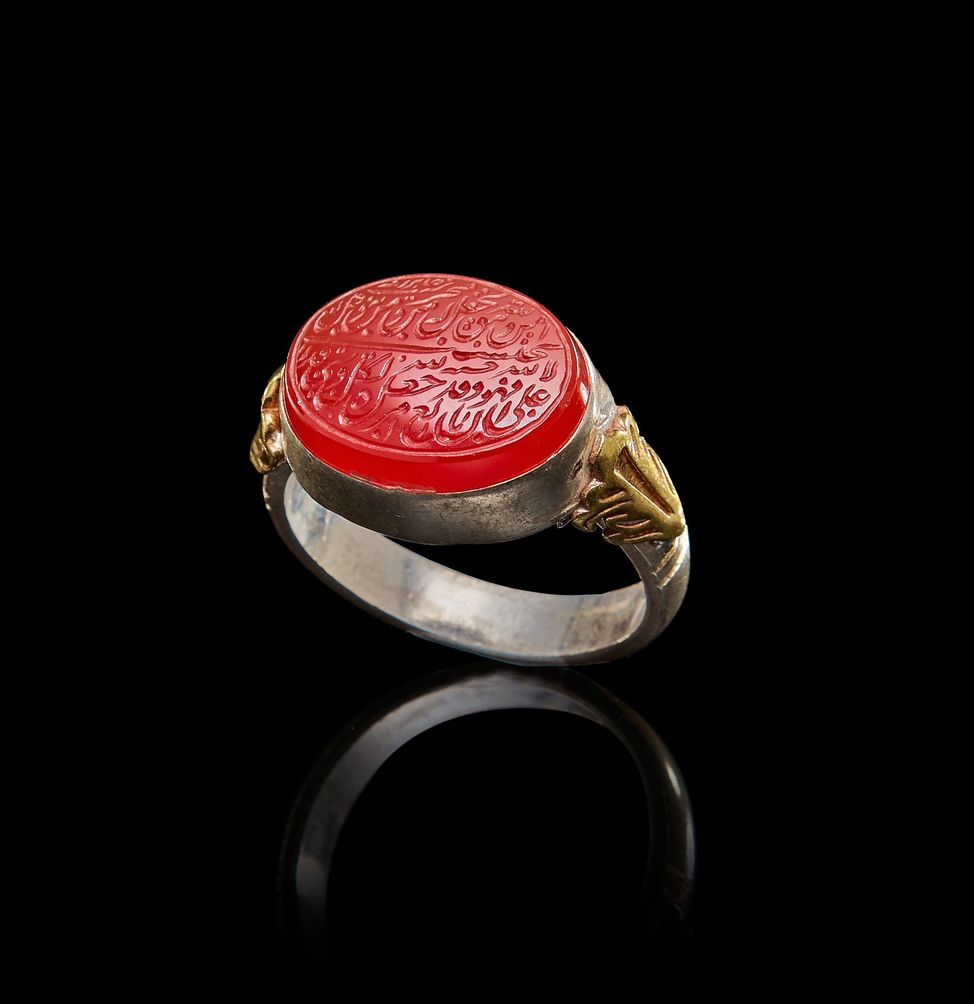 AN INSCRIBED ISLAMIC AGATE IN A SILVER RING