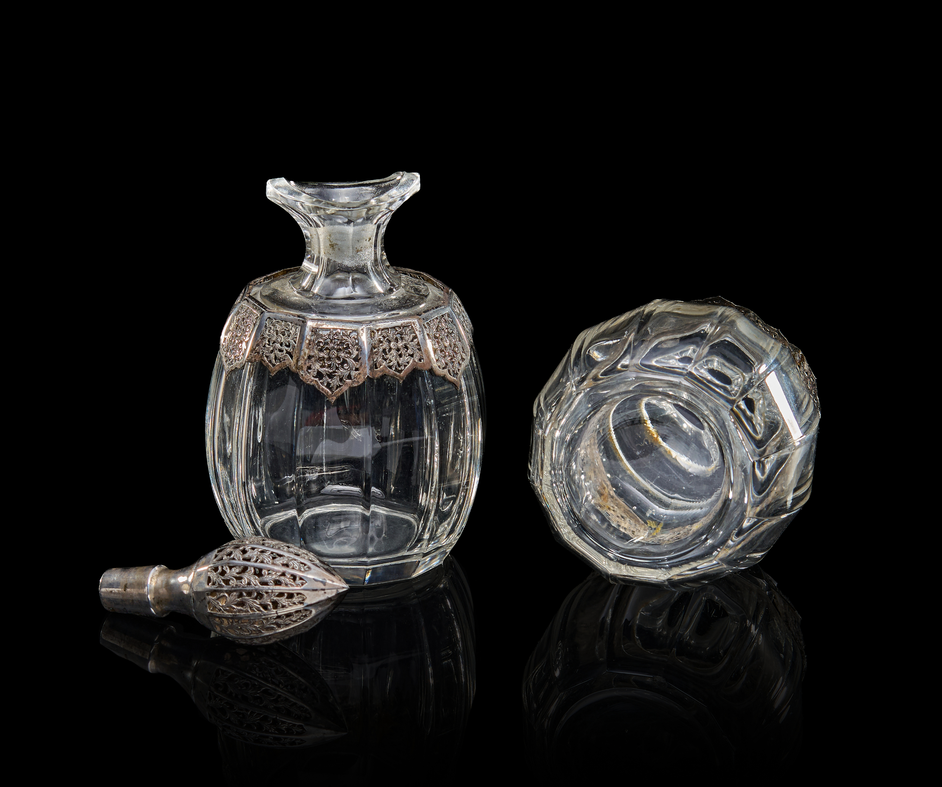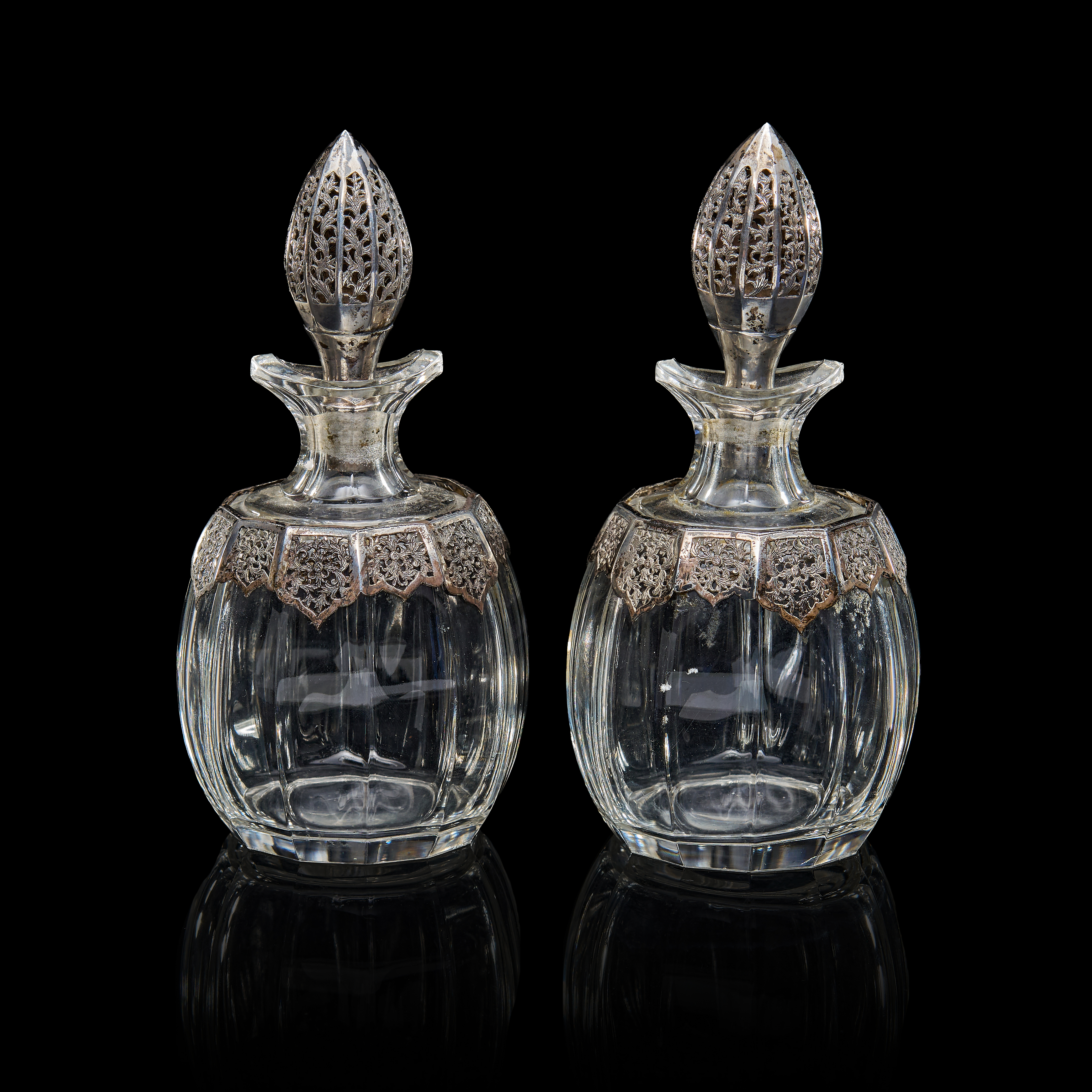 A PAIR OF SILVER MOUNTED GLASS SCENT BOTTLES, SOUTH EAST ASIA, 19TH – 20TH CENTURY