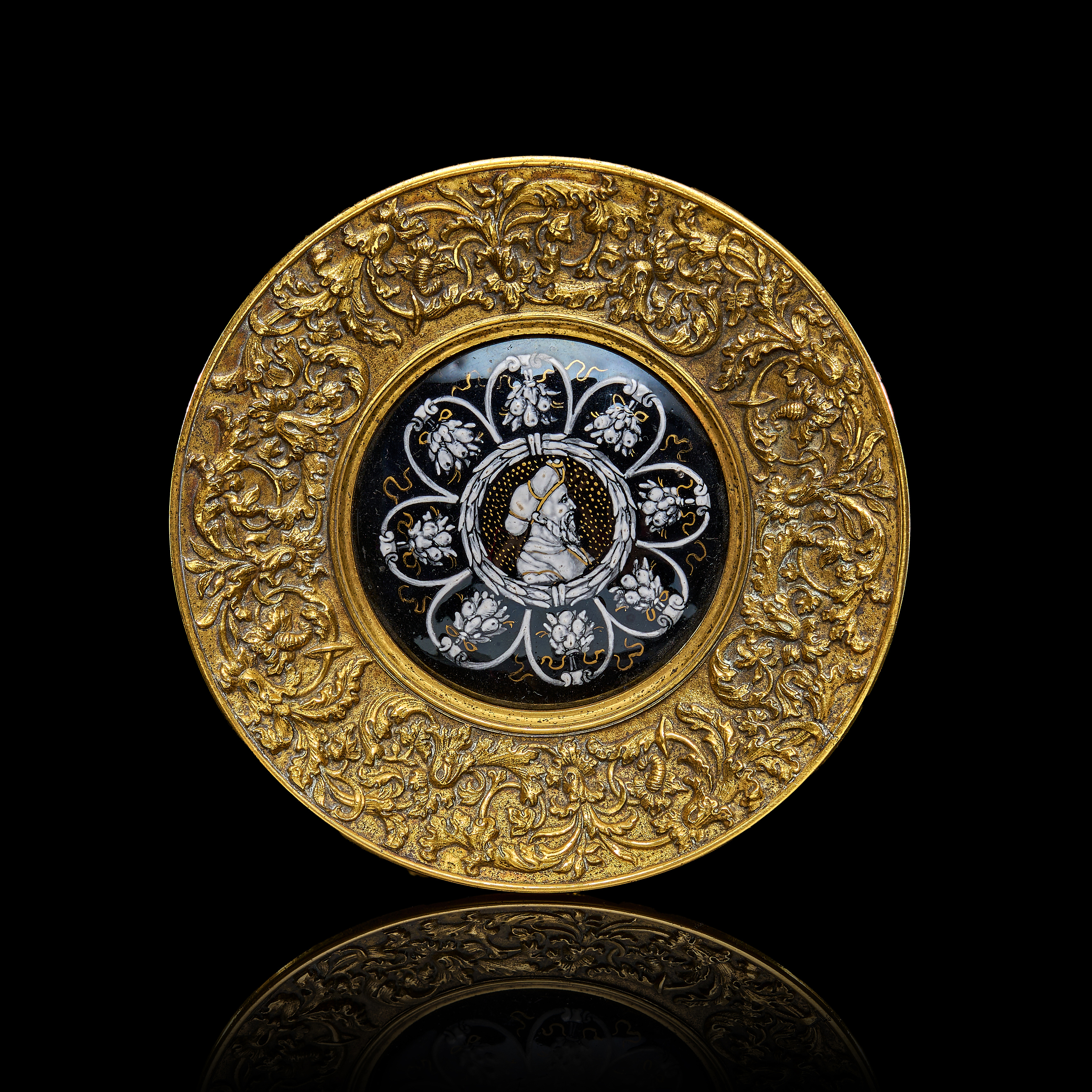 AN ORIENTALIST LIMOGES ENAMEL BRONZE TAZZA DEPICTING A SULTAN, FRANCE, 19TH CENTURY