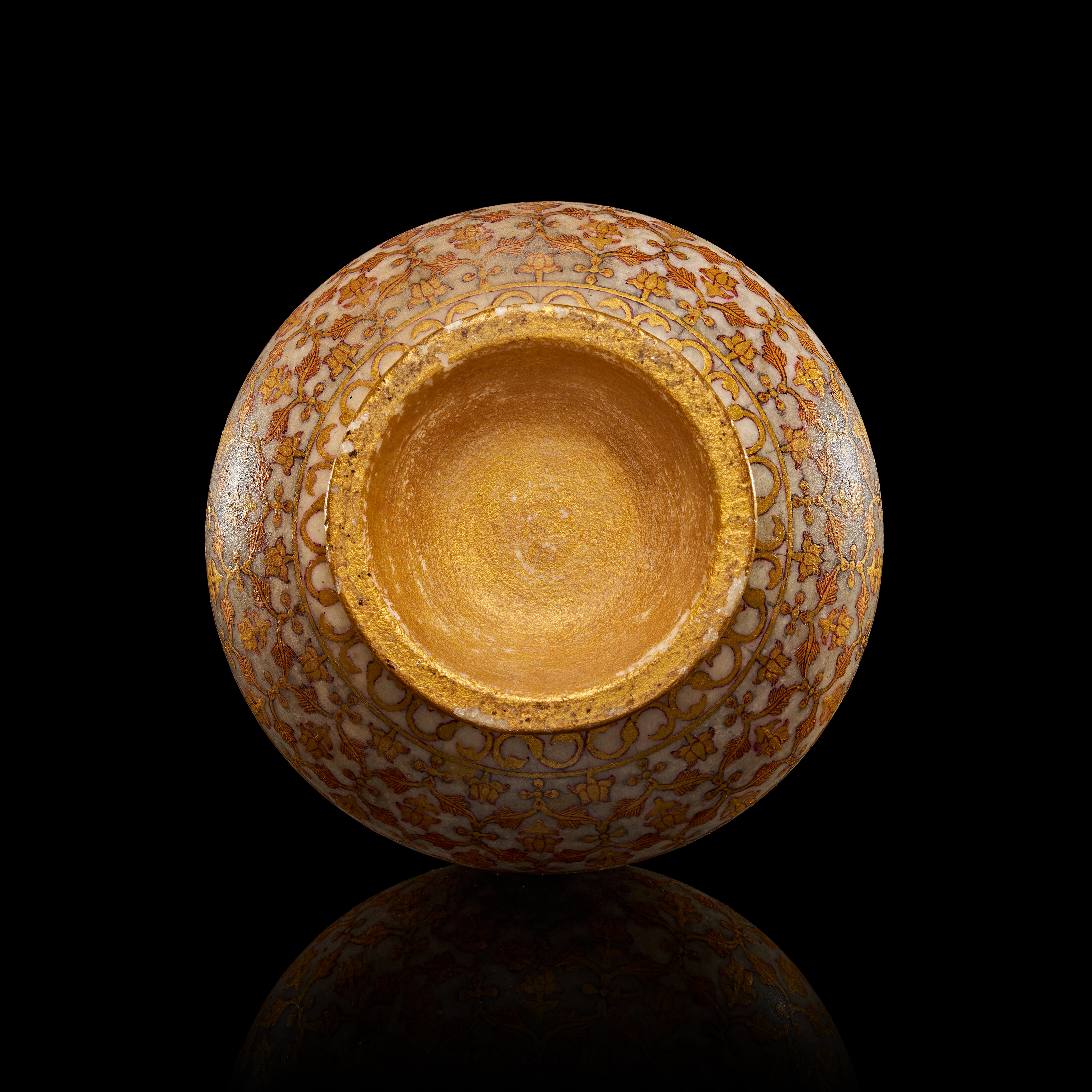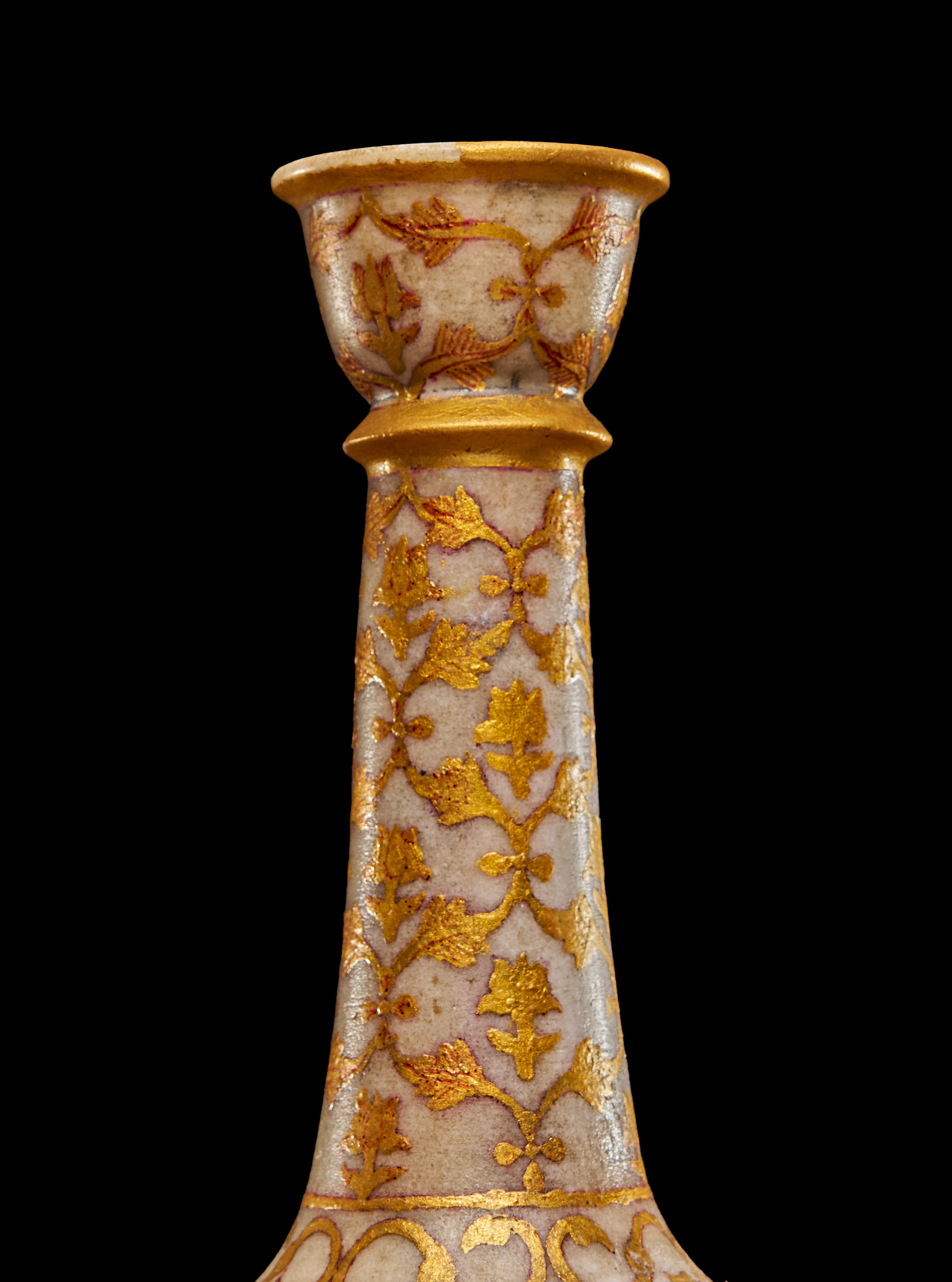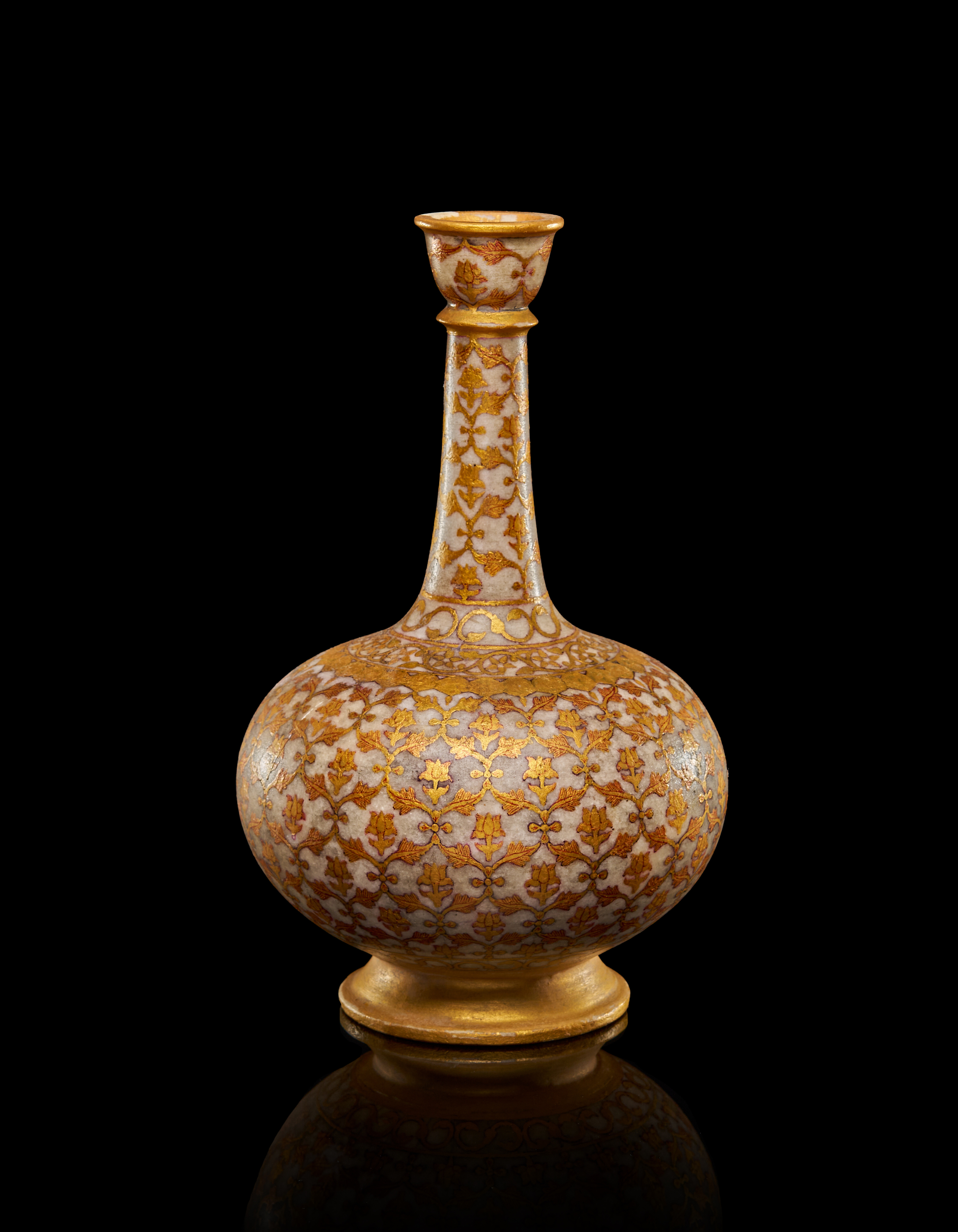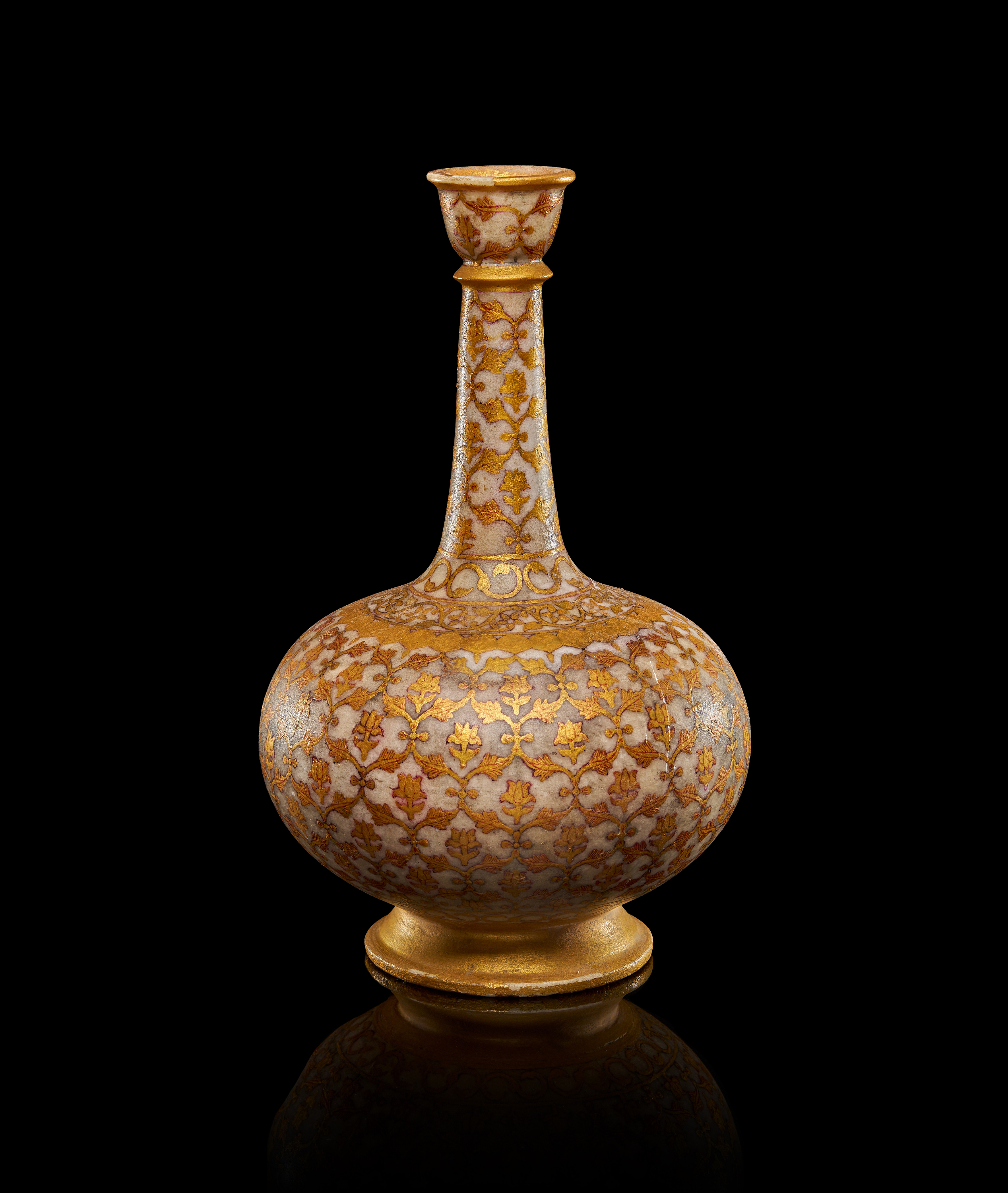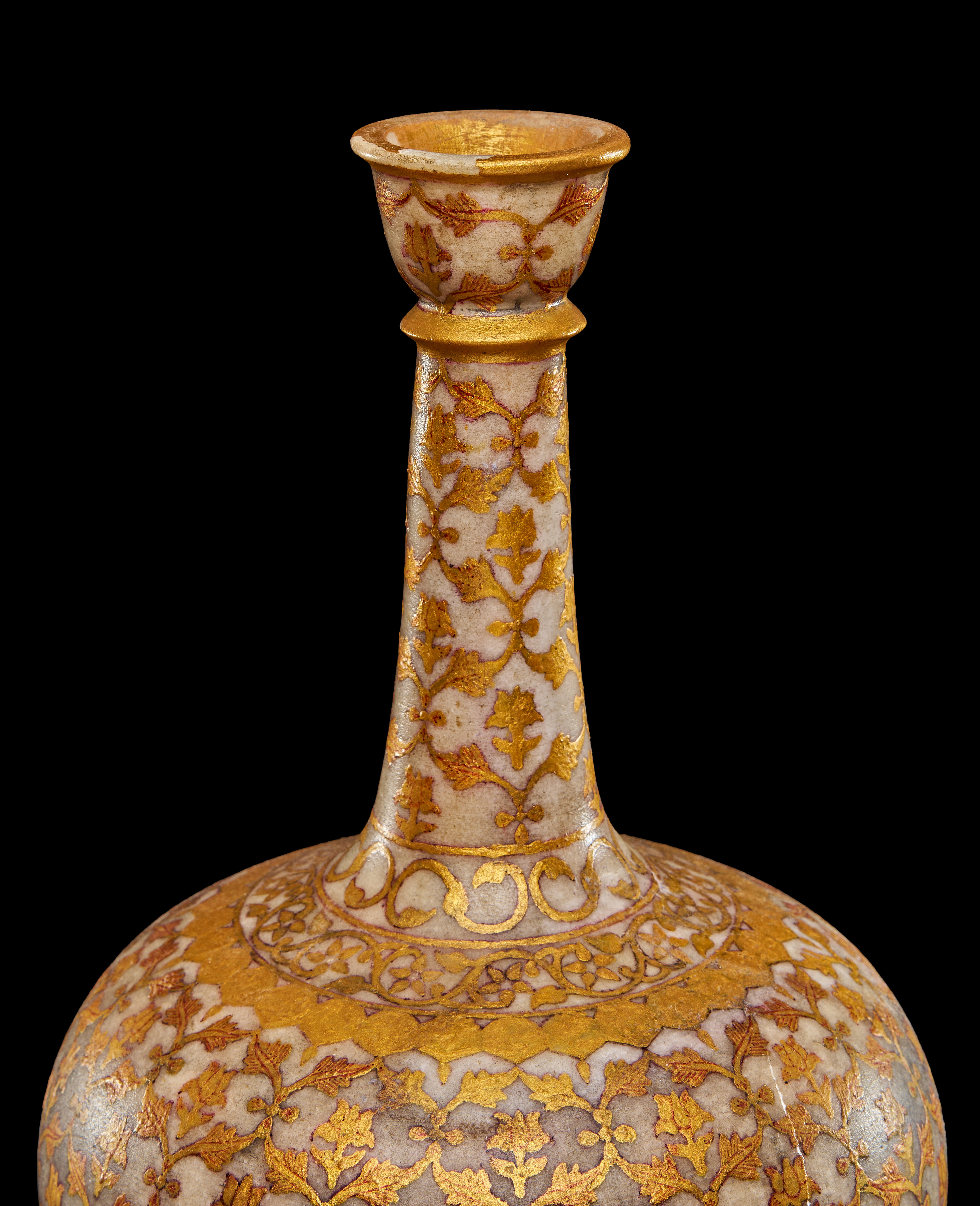 AN INDIAN MARBLE GILDED SURAHI BOTTLE, 19TH CENTURY