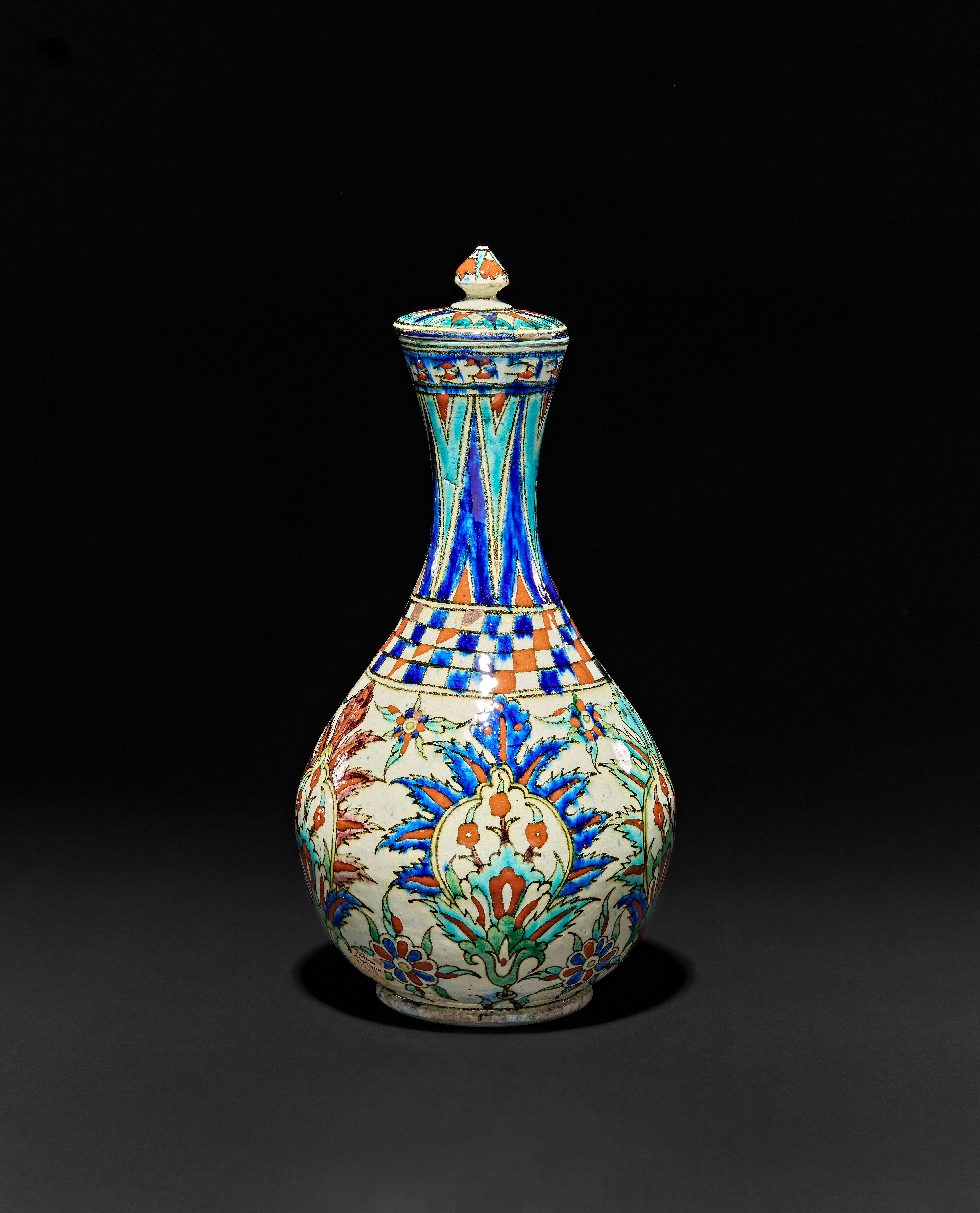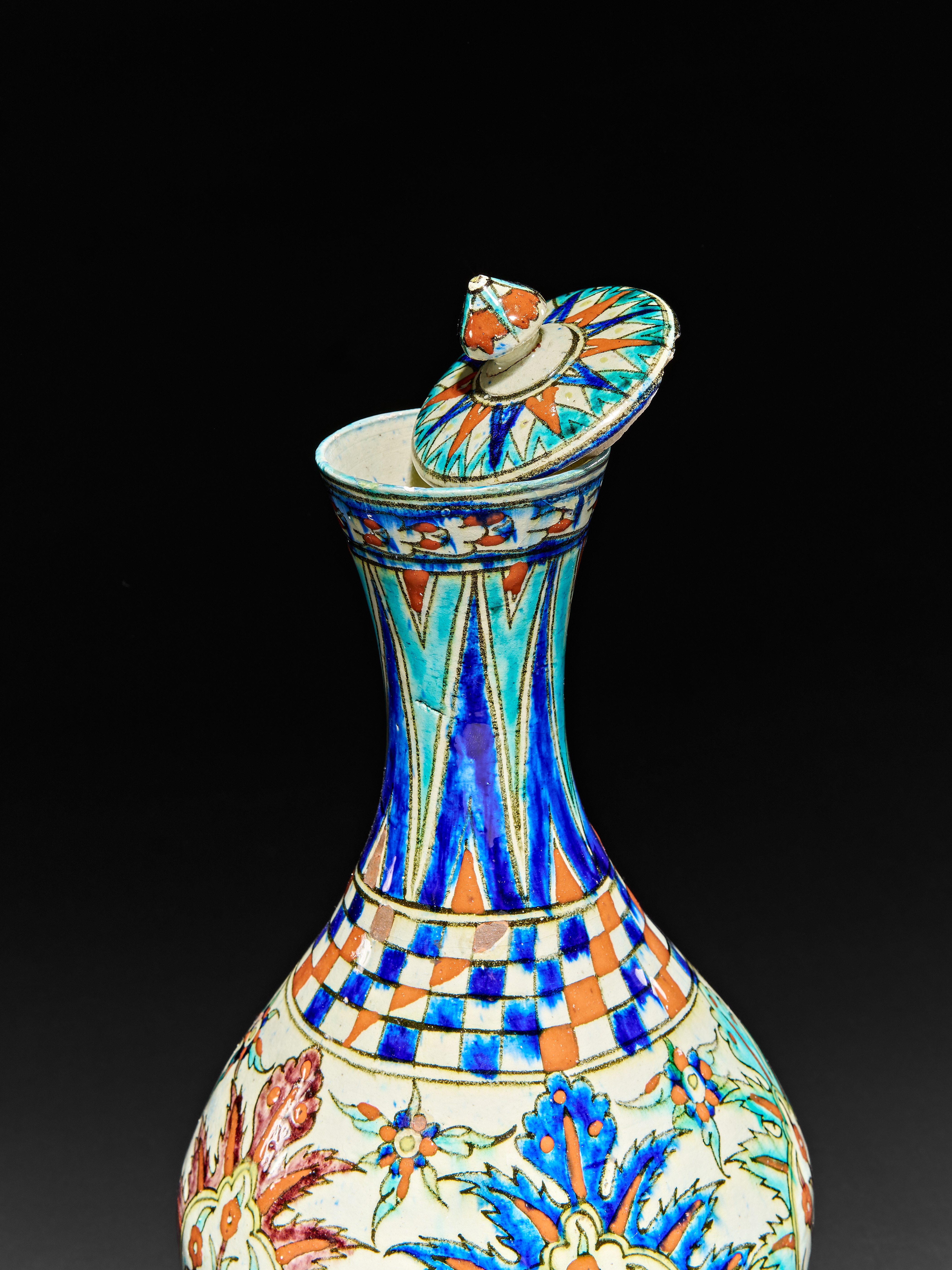 A ULISSE CANTAGALLI IZNIK STYLE POTTERY VASE WITH A LID, ITALY, 19TH CENTURY
