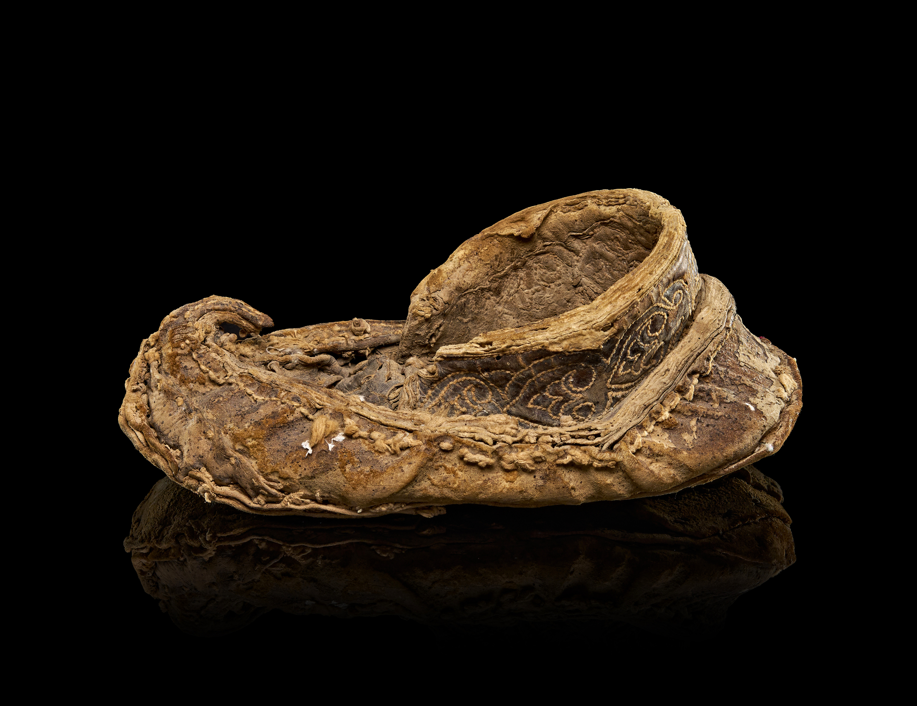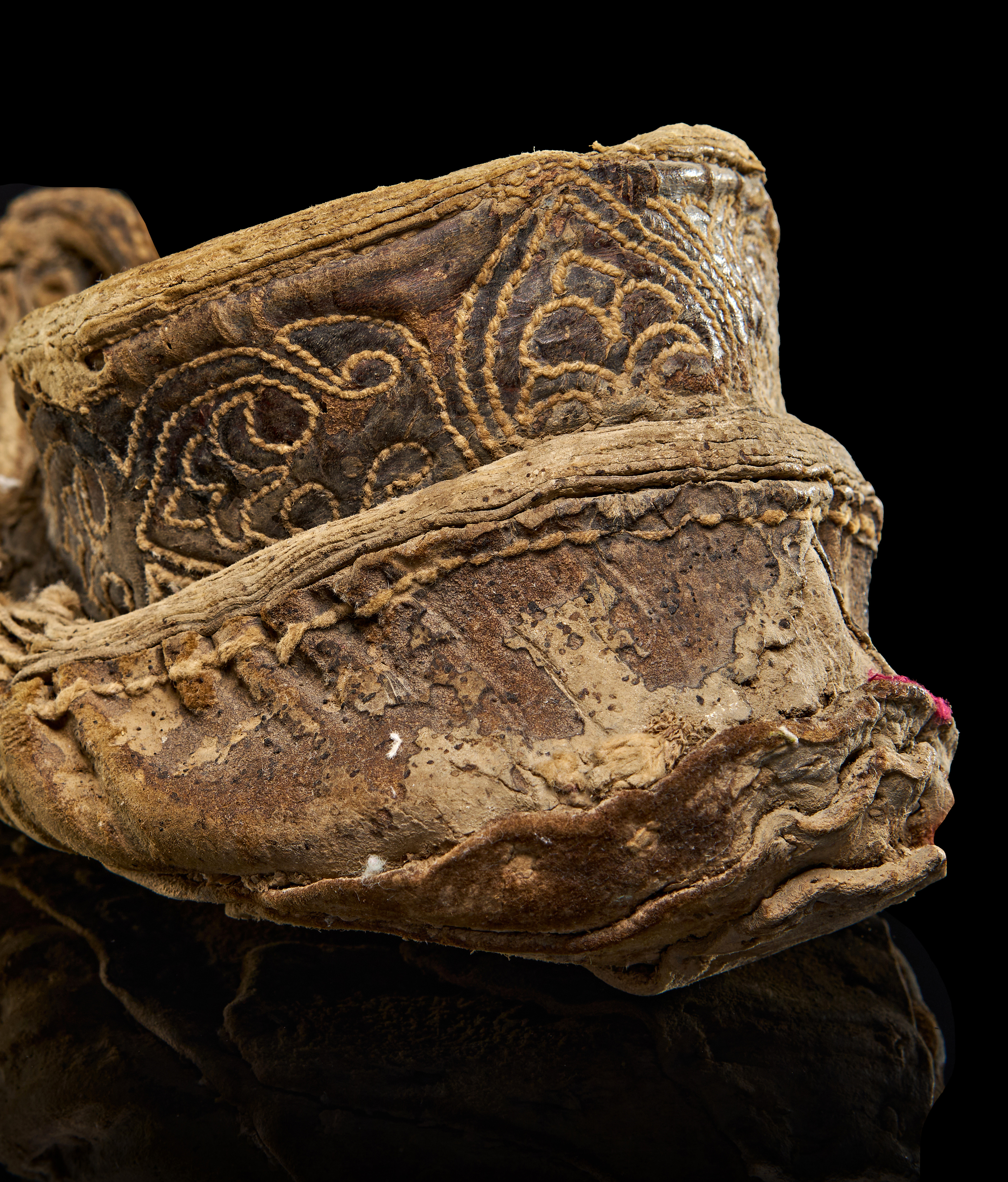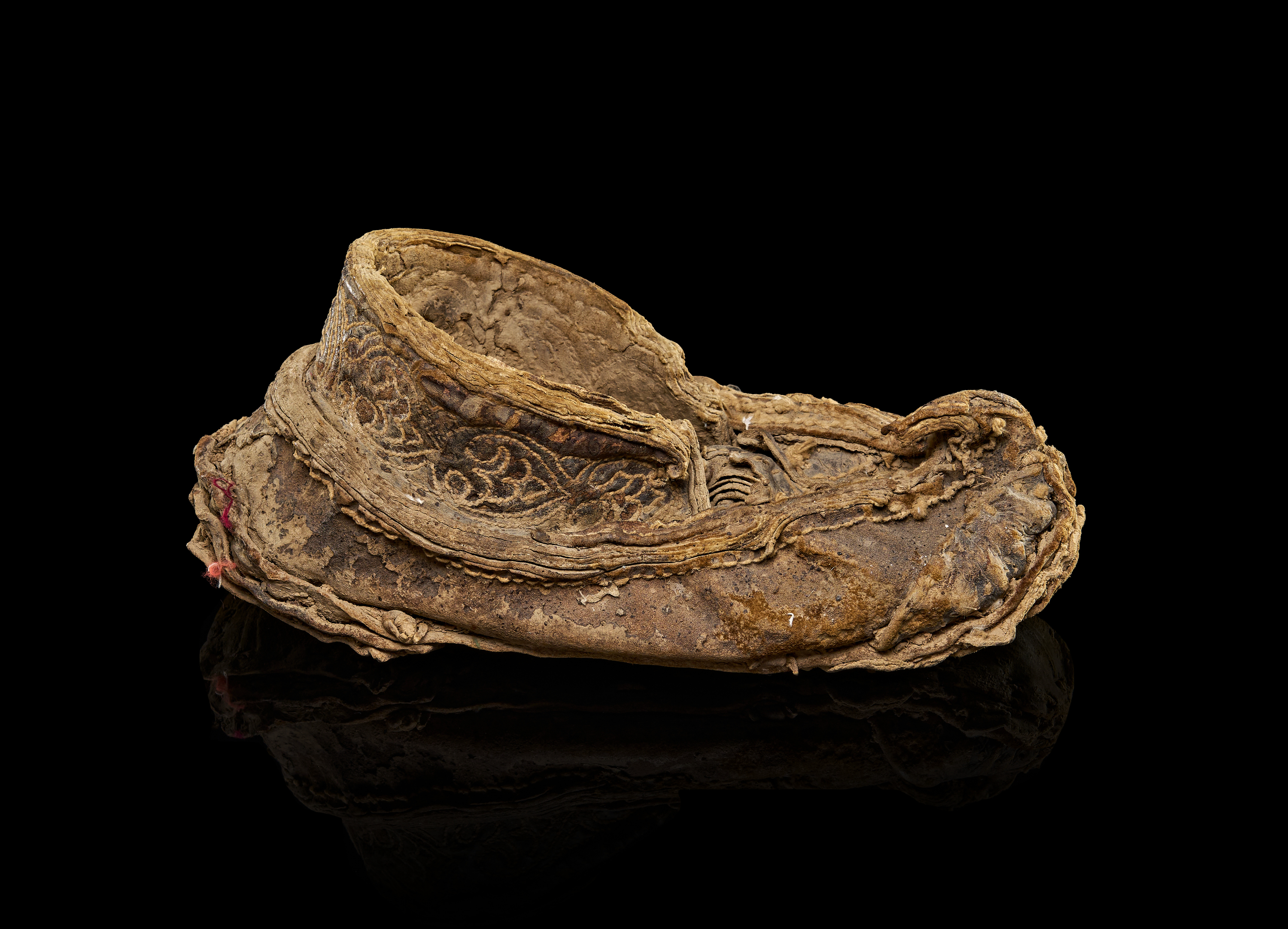 A PERSIAN GHAZNAVID EMBROIDERED LEATHER SHOE, 10TH – 11TH CENTURY