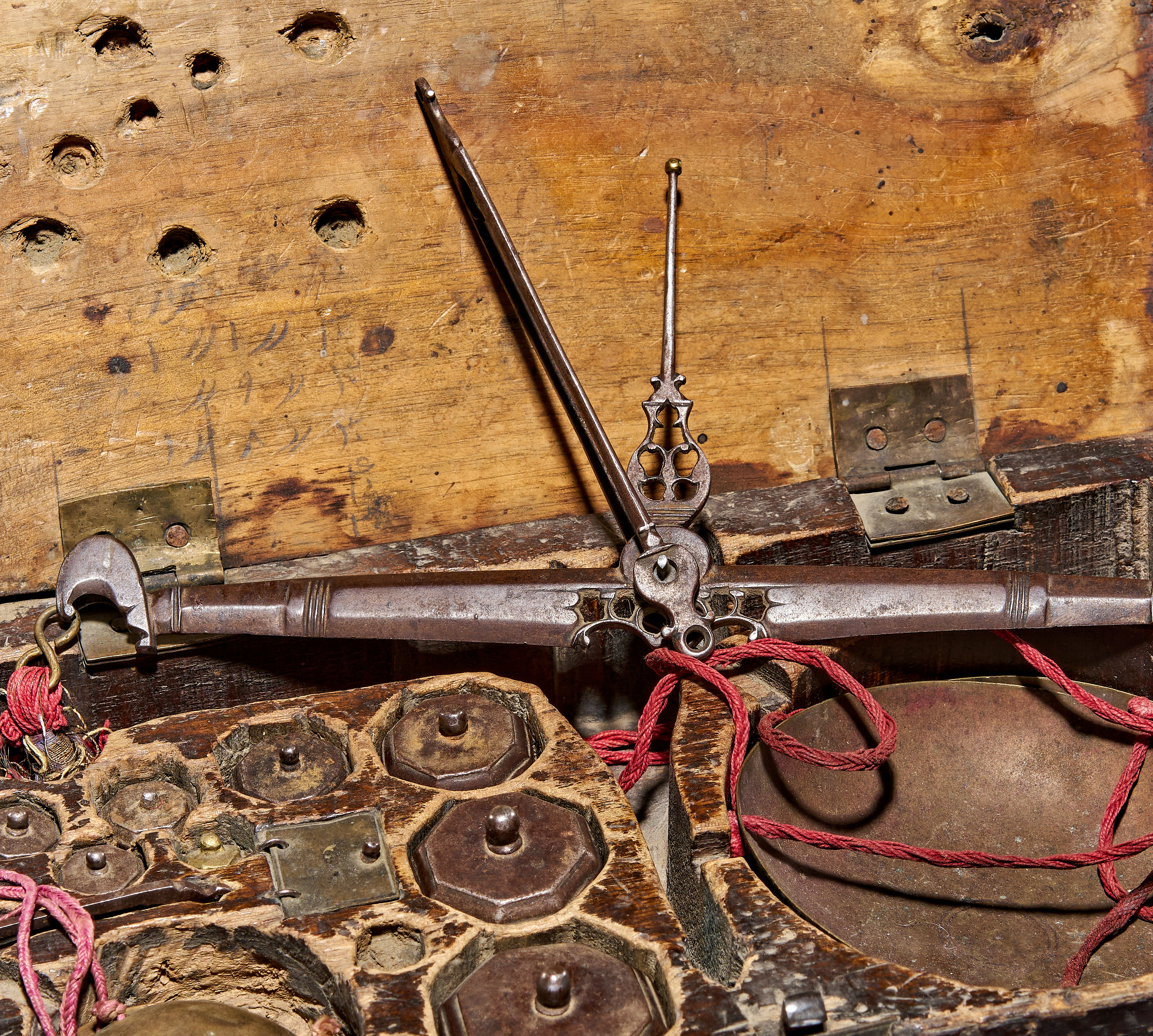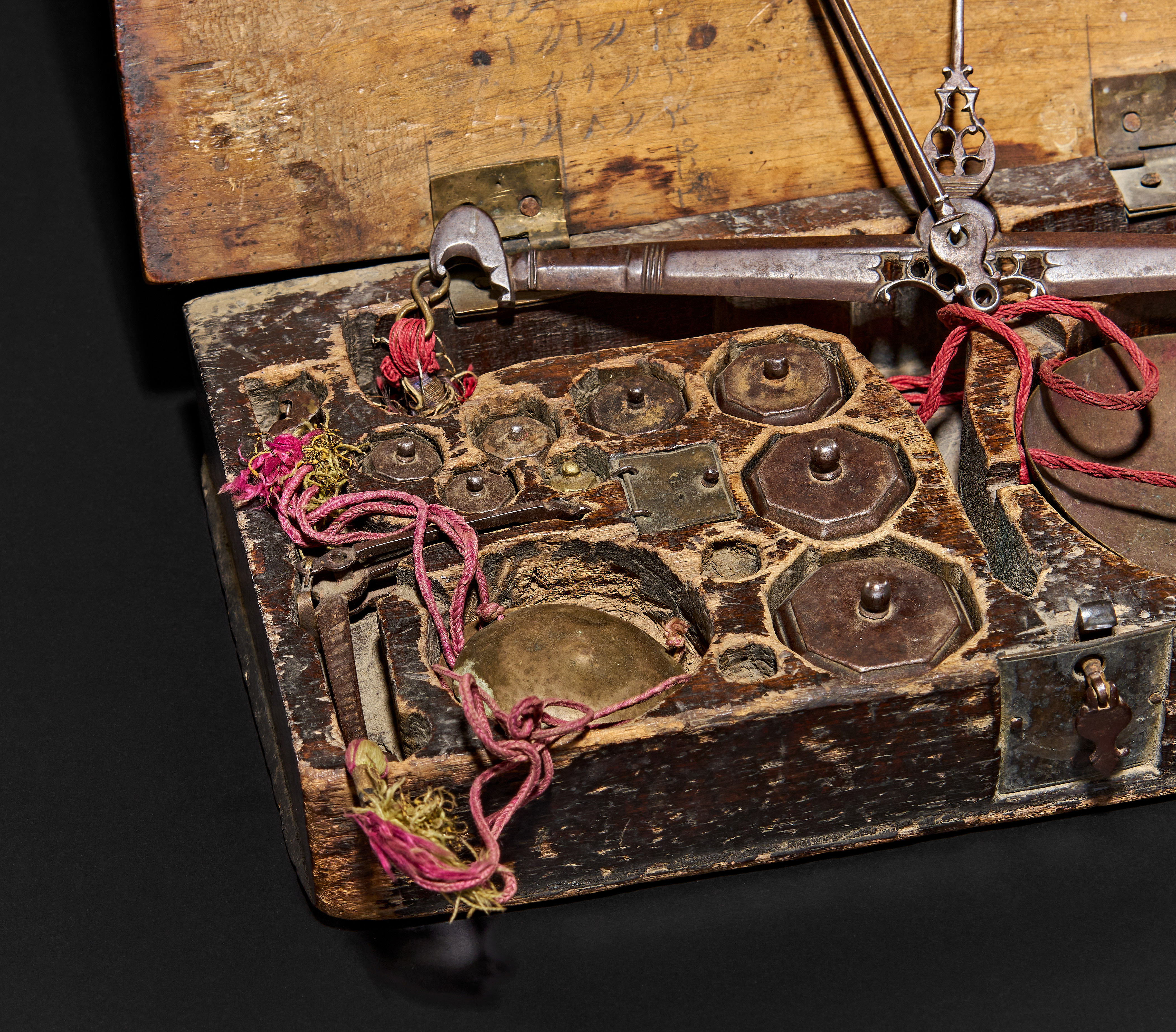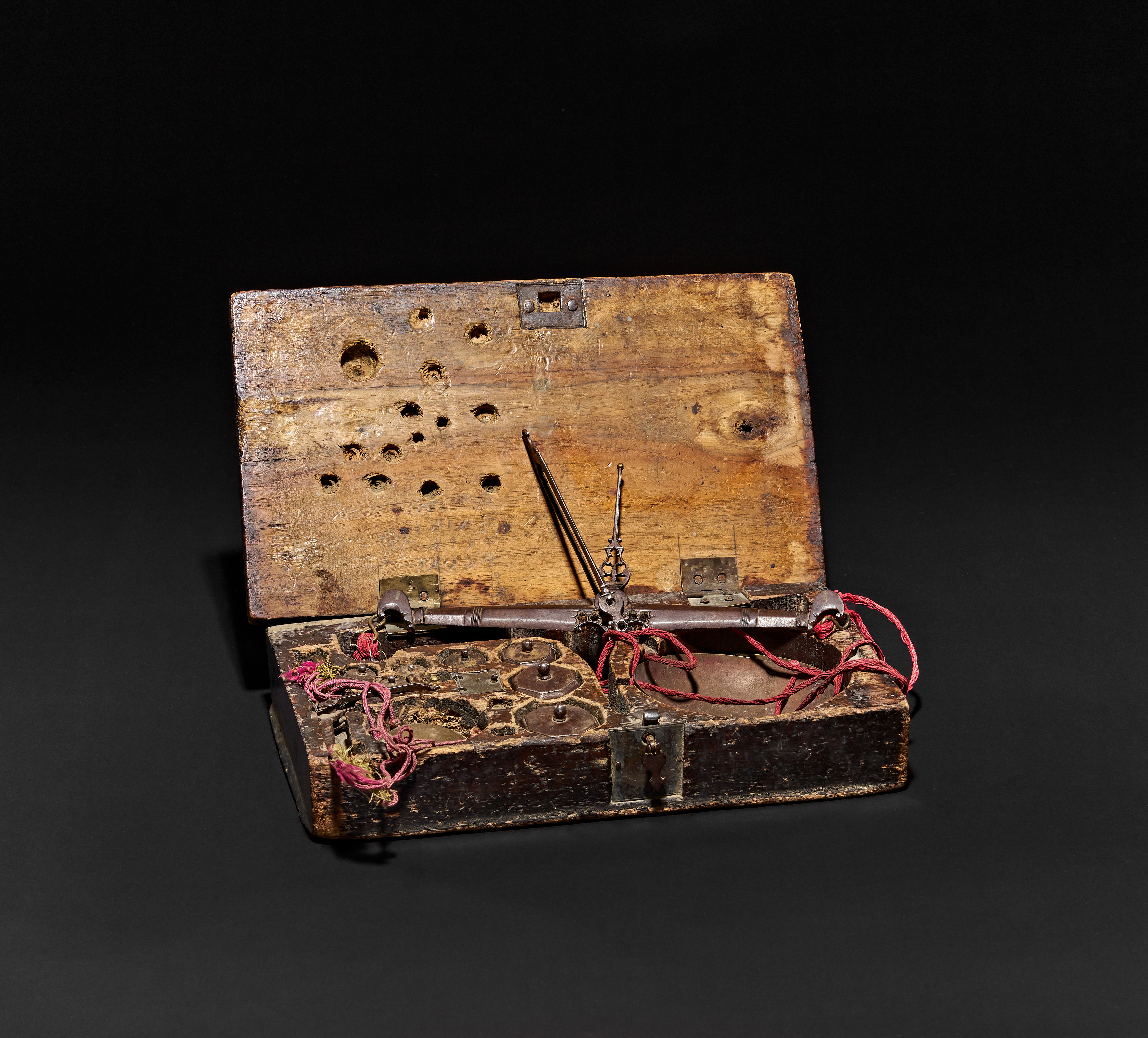 A COMPLETE QAJAR SCALE SET BOX, POSSIBLY BY HASHIM, ISFAHAN, 19TH CENTURY