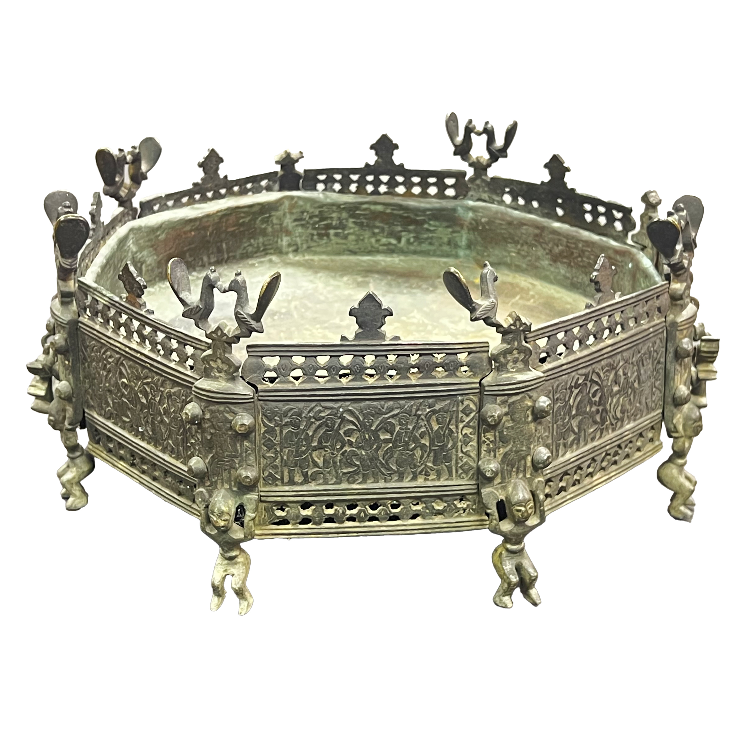 AN ISLAMIC OCTAGONAL BRONZE BRAZIER, ZAND OR QAJAR, 18TH – 19TH CENTURY