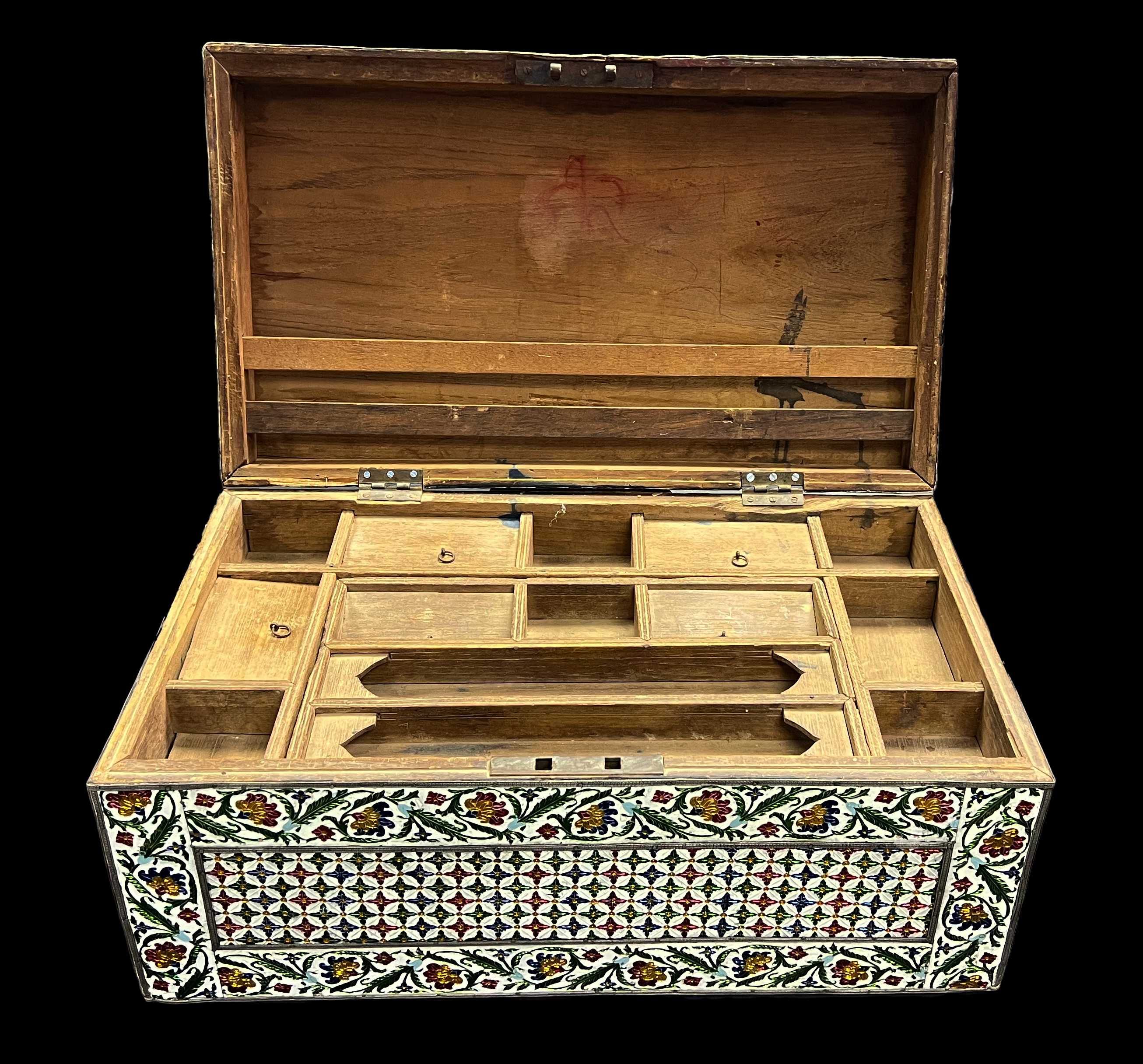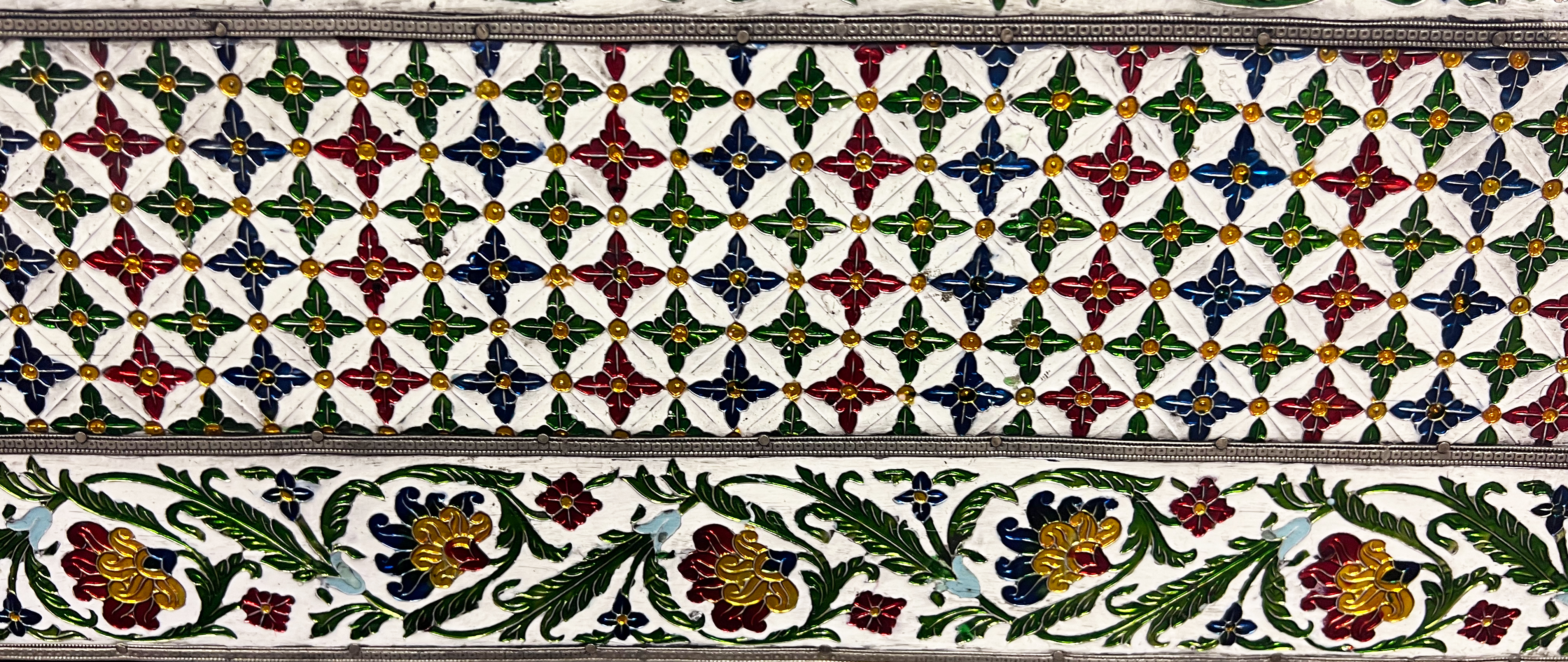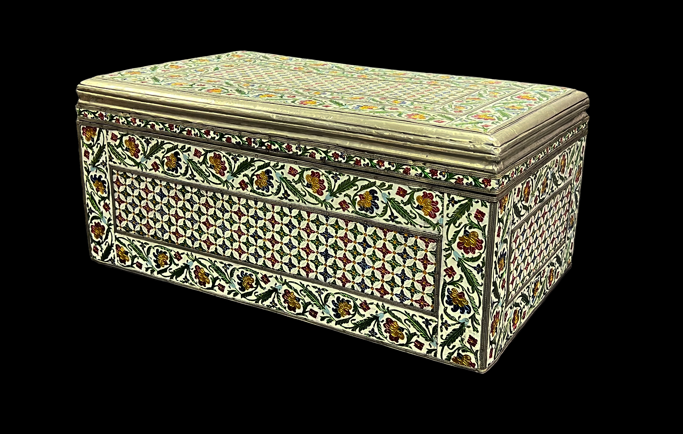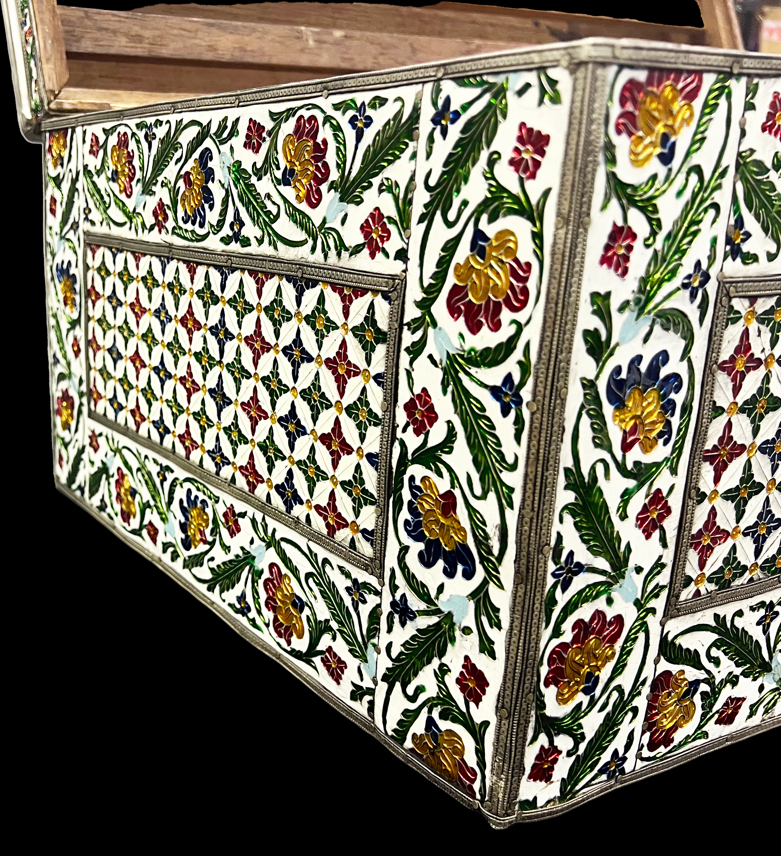 A LARGE INDIAN METAL AND ENAMEL WOODEN BOX, JAIPUR, 19TH – 20TH CENTURY