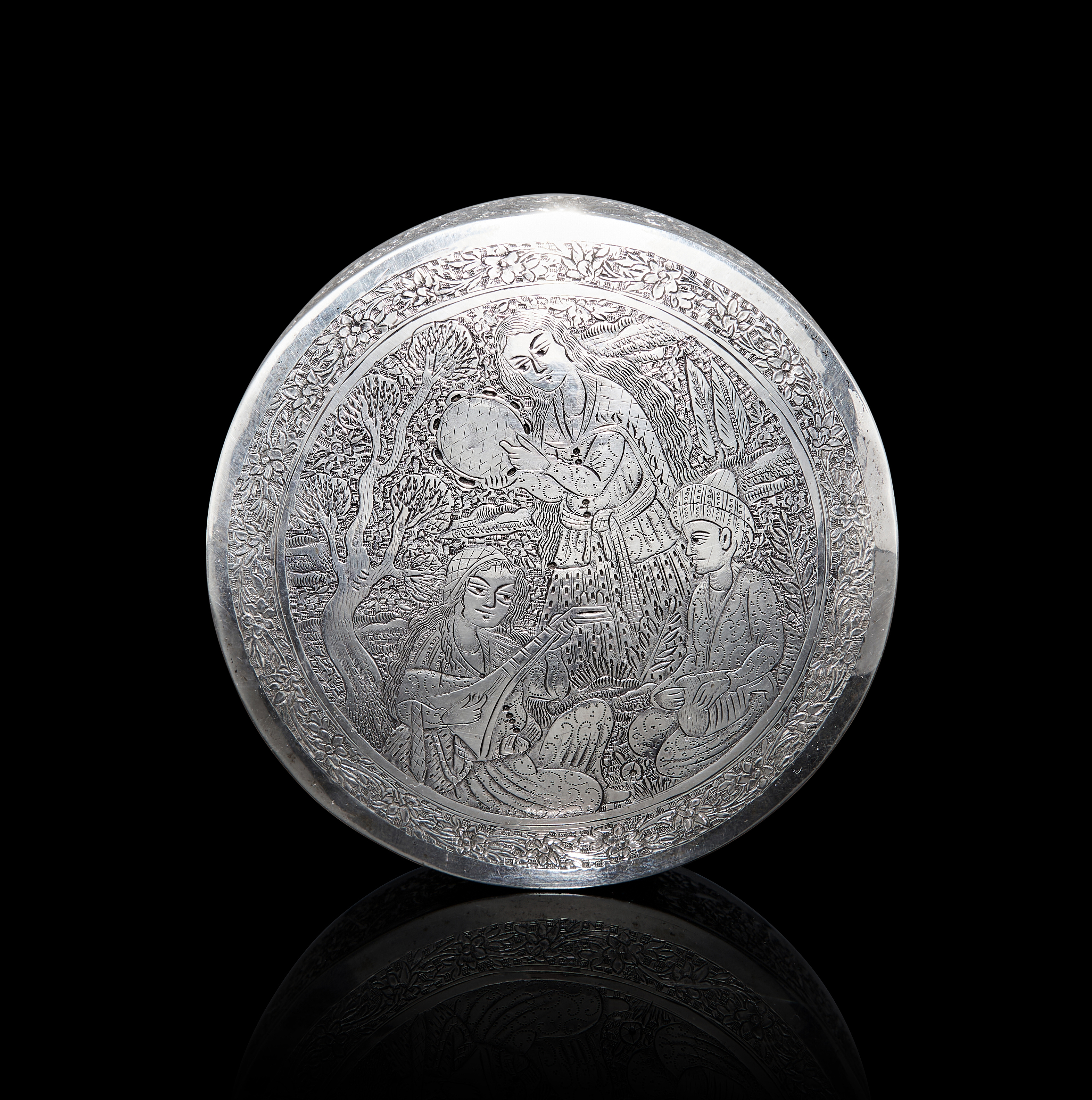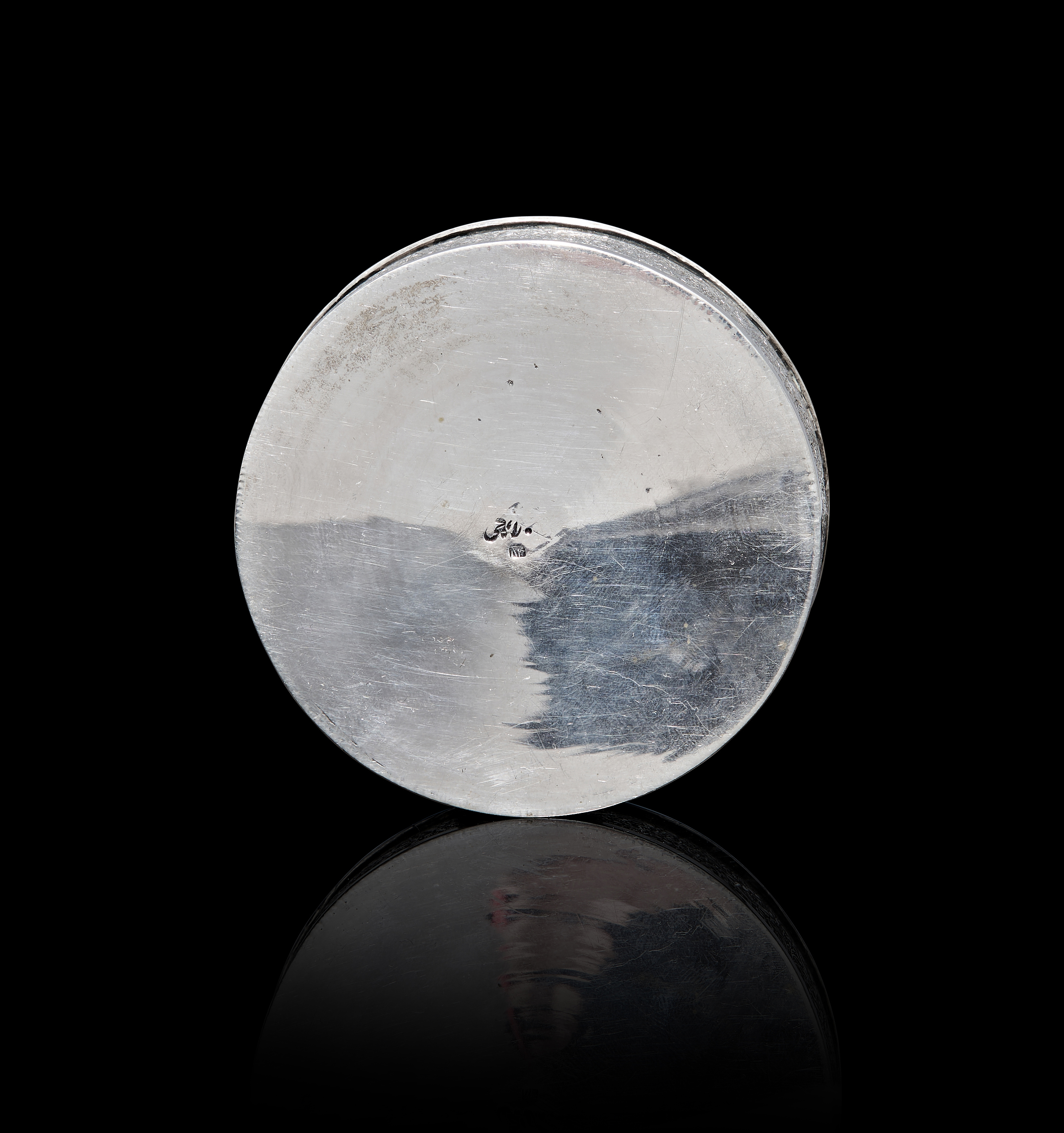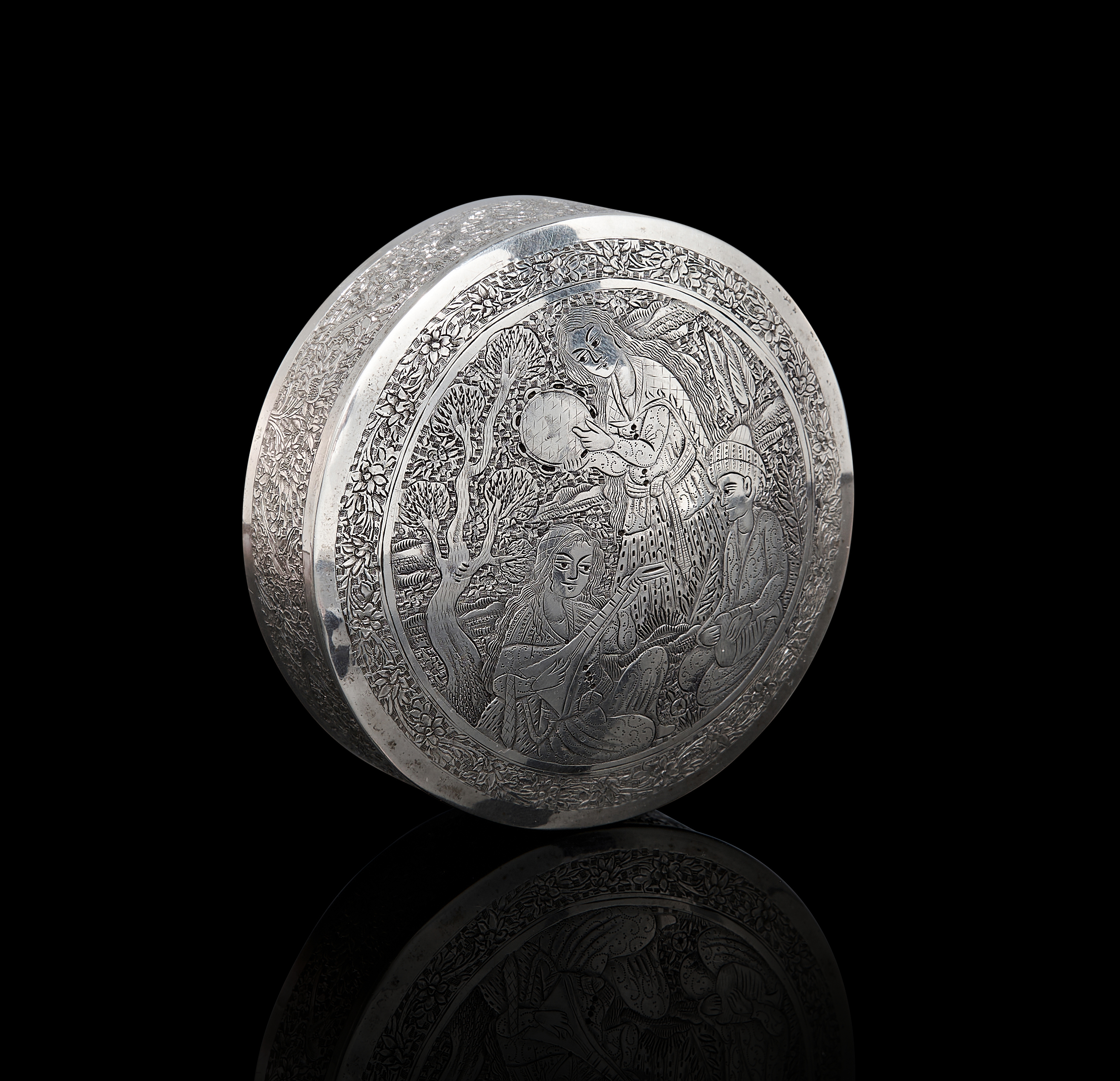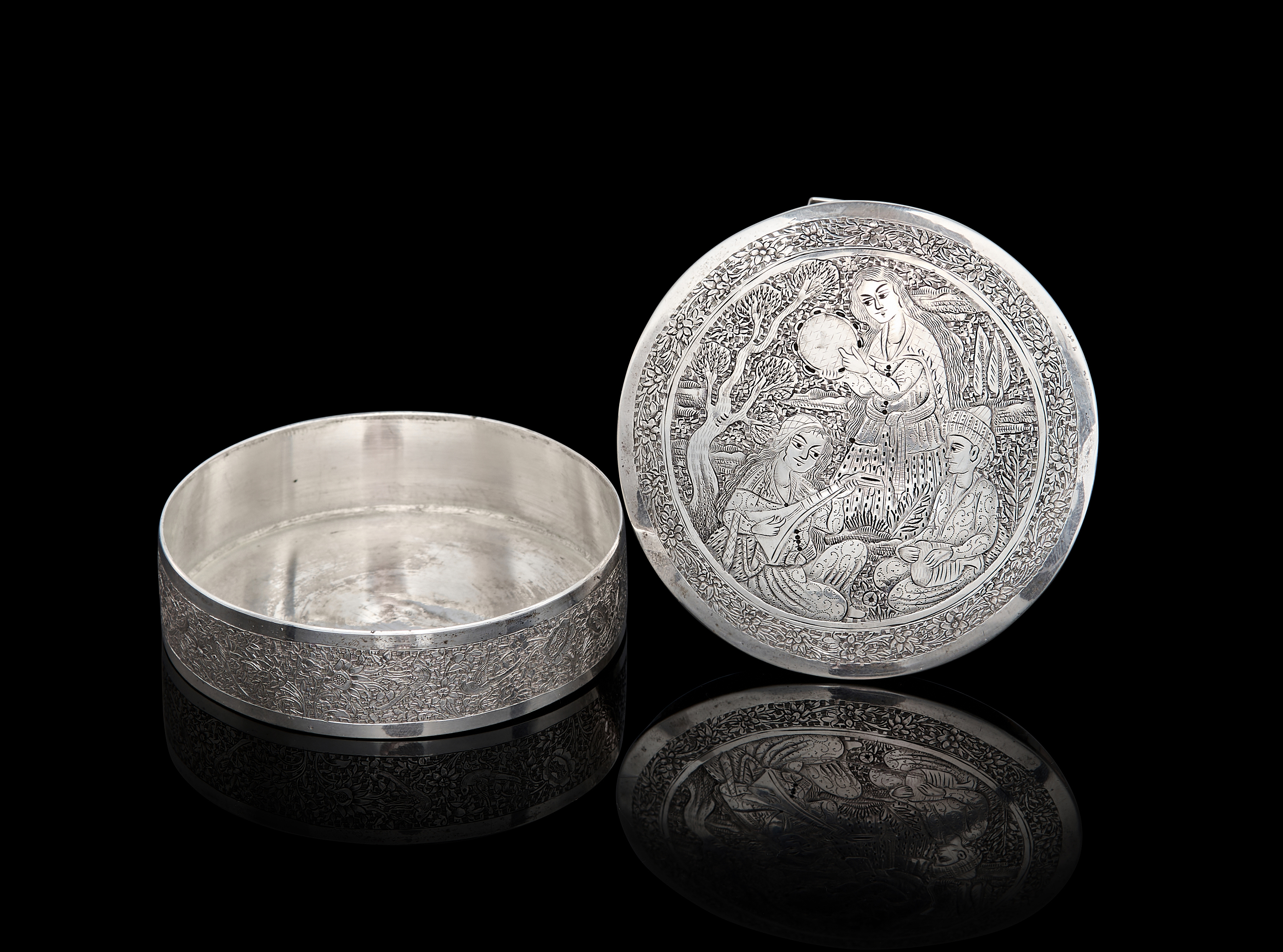 A PERSIAN ENGRAVED SILVER ROUND BOX BY MASTER LAHIJI, ISFAHAN, 20TH CENTURY