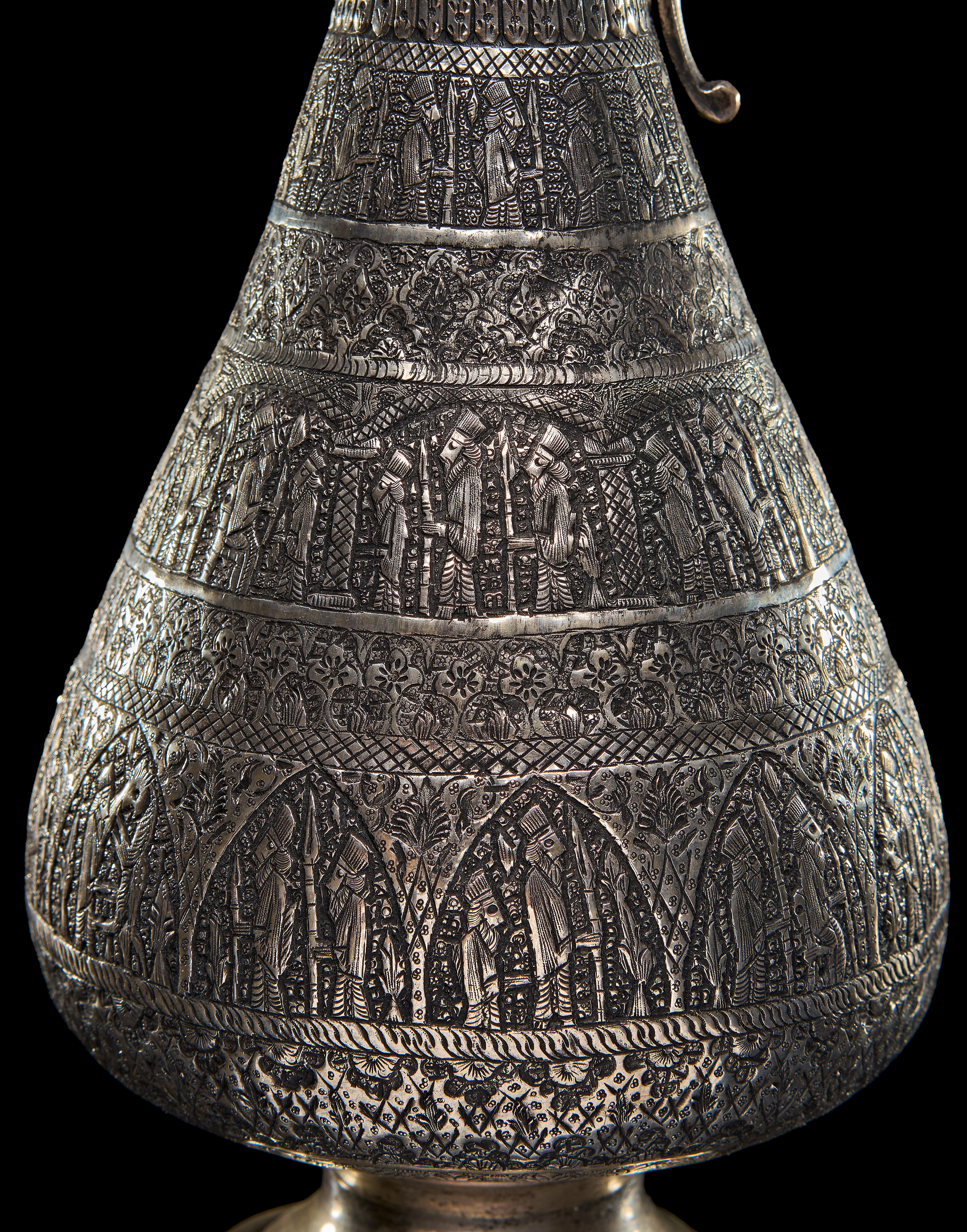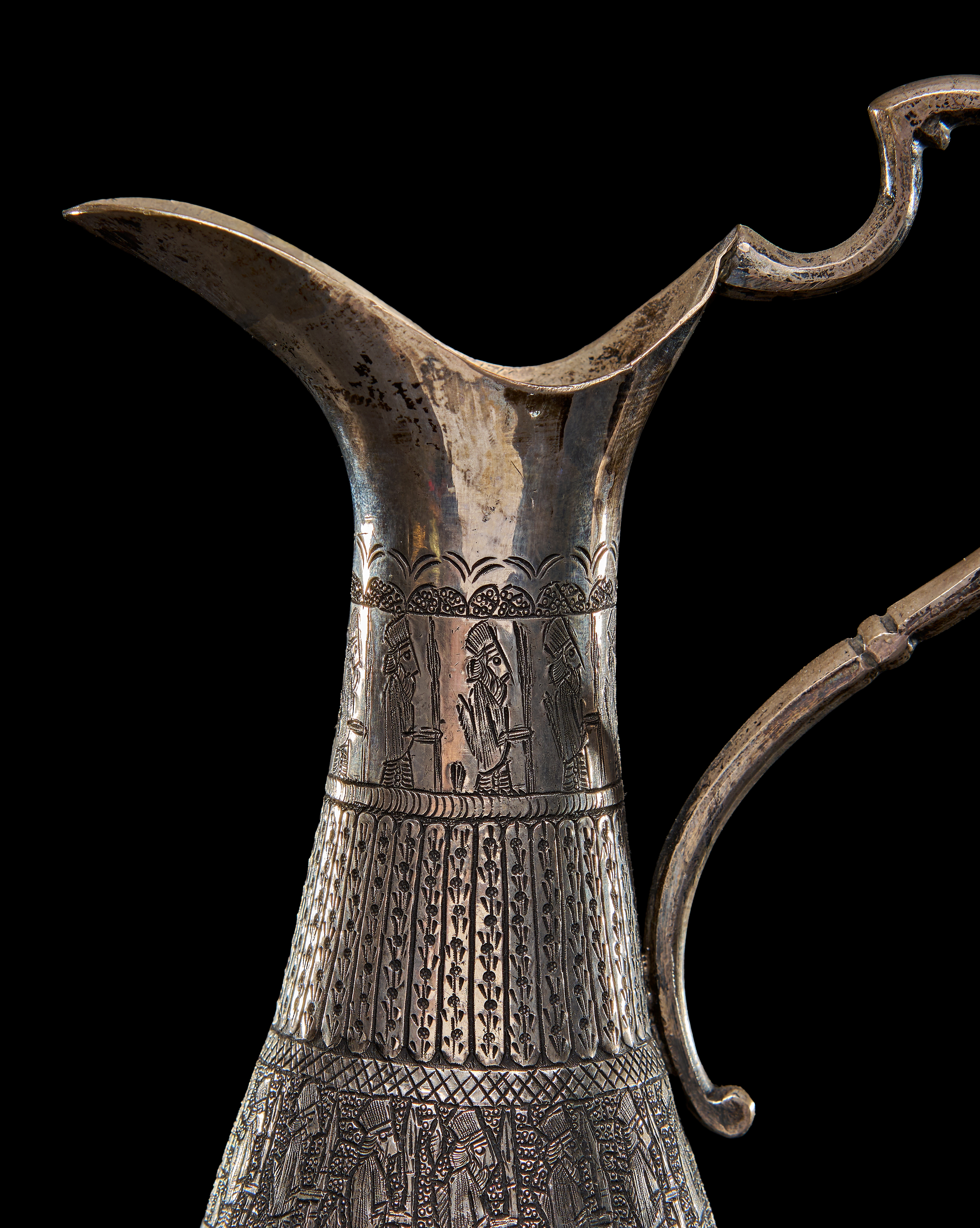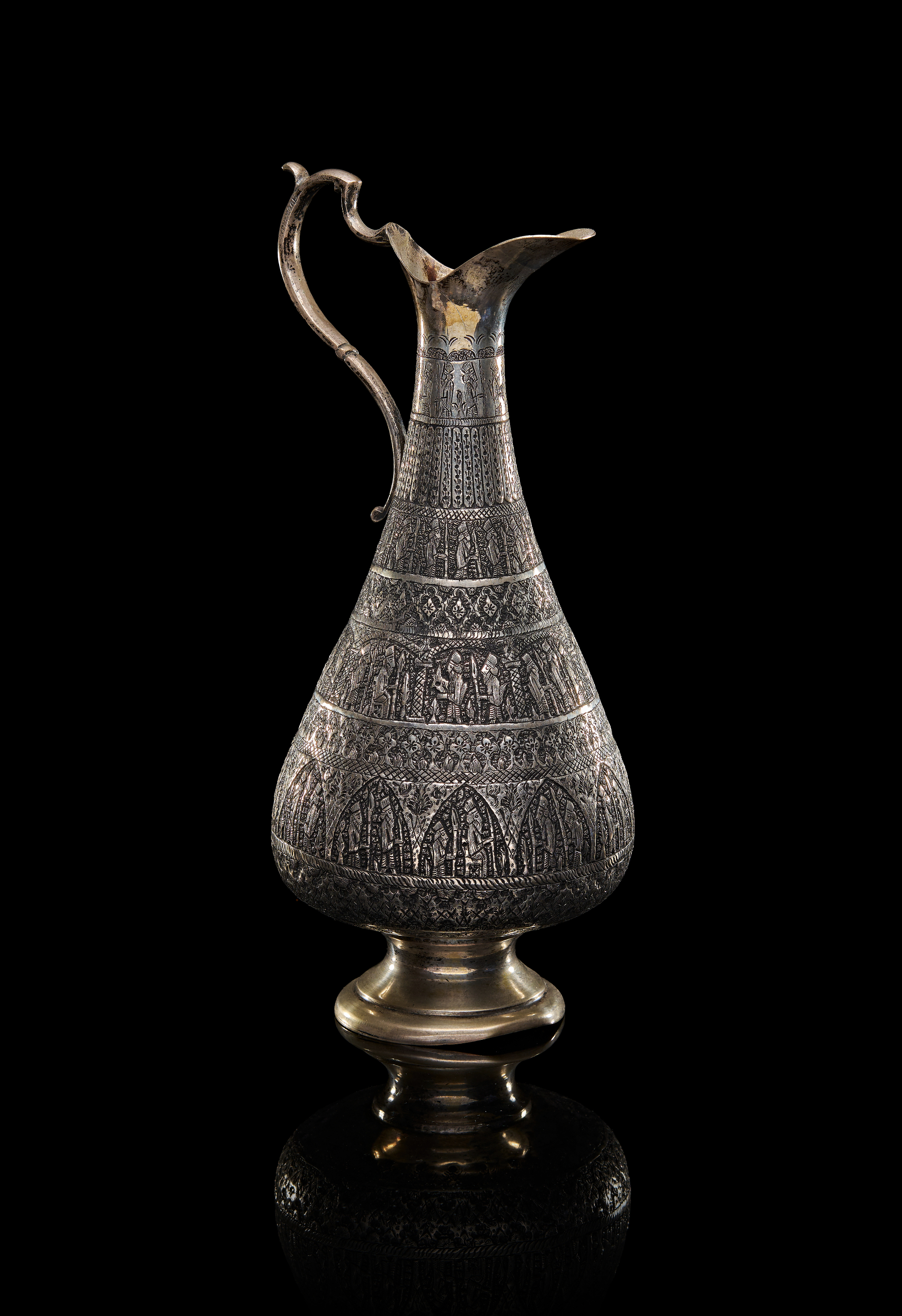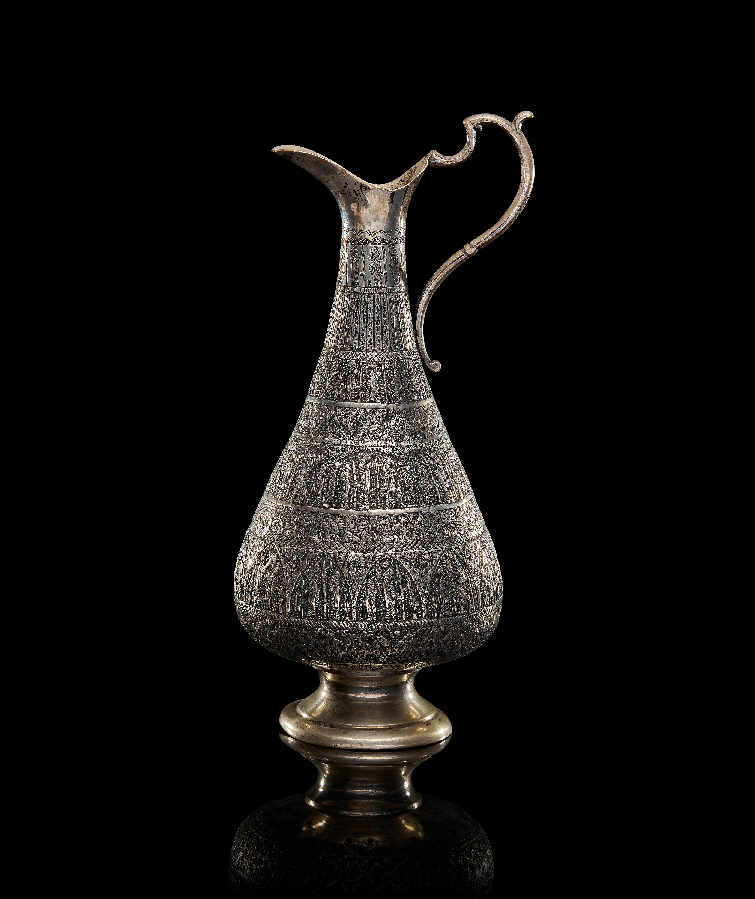 A LARGE ENGRAVED PERSIAN SILVER EWER, 20TH CENTURY