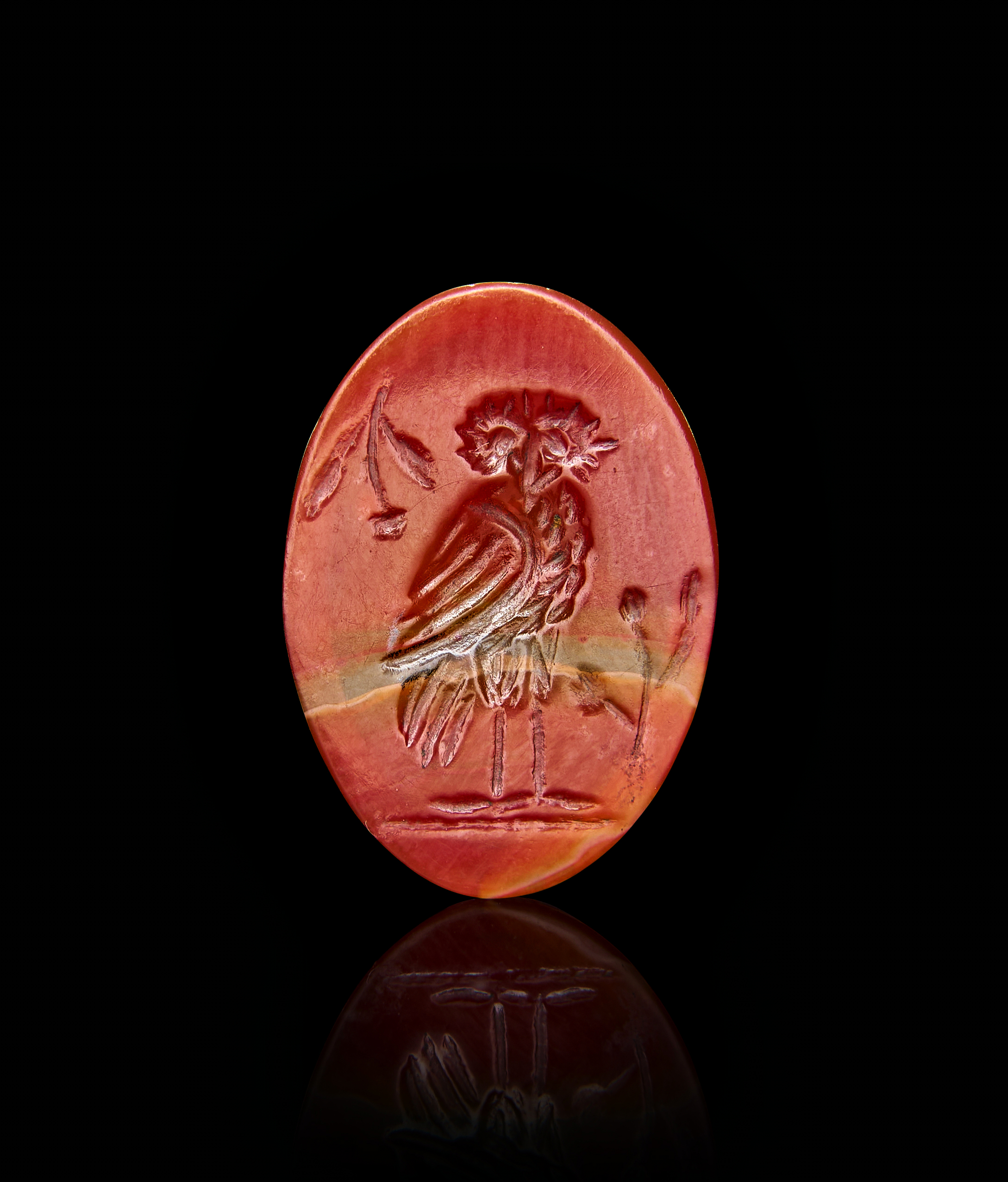 A ROMAN AGATE INTAGLIO OF A SEATED OWL, 1ST – 2ND CENTURY A.D
