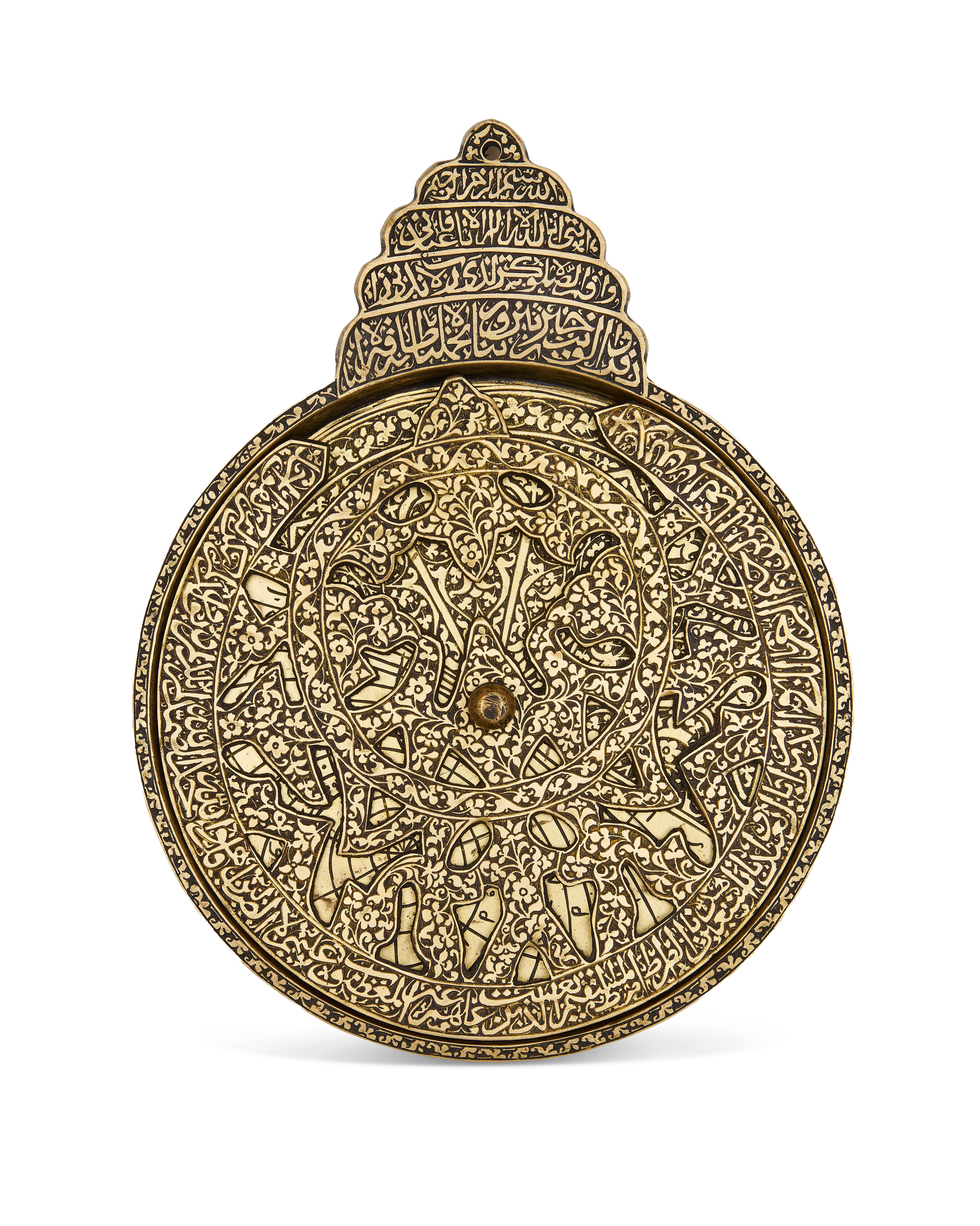AN ENGRAVED BRASS ASTROLABE, POSSIBLY INDIAN
