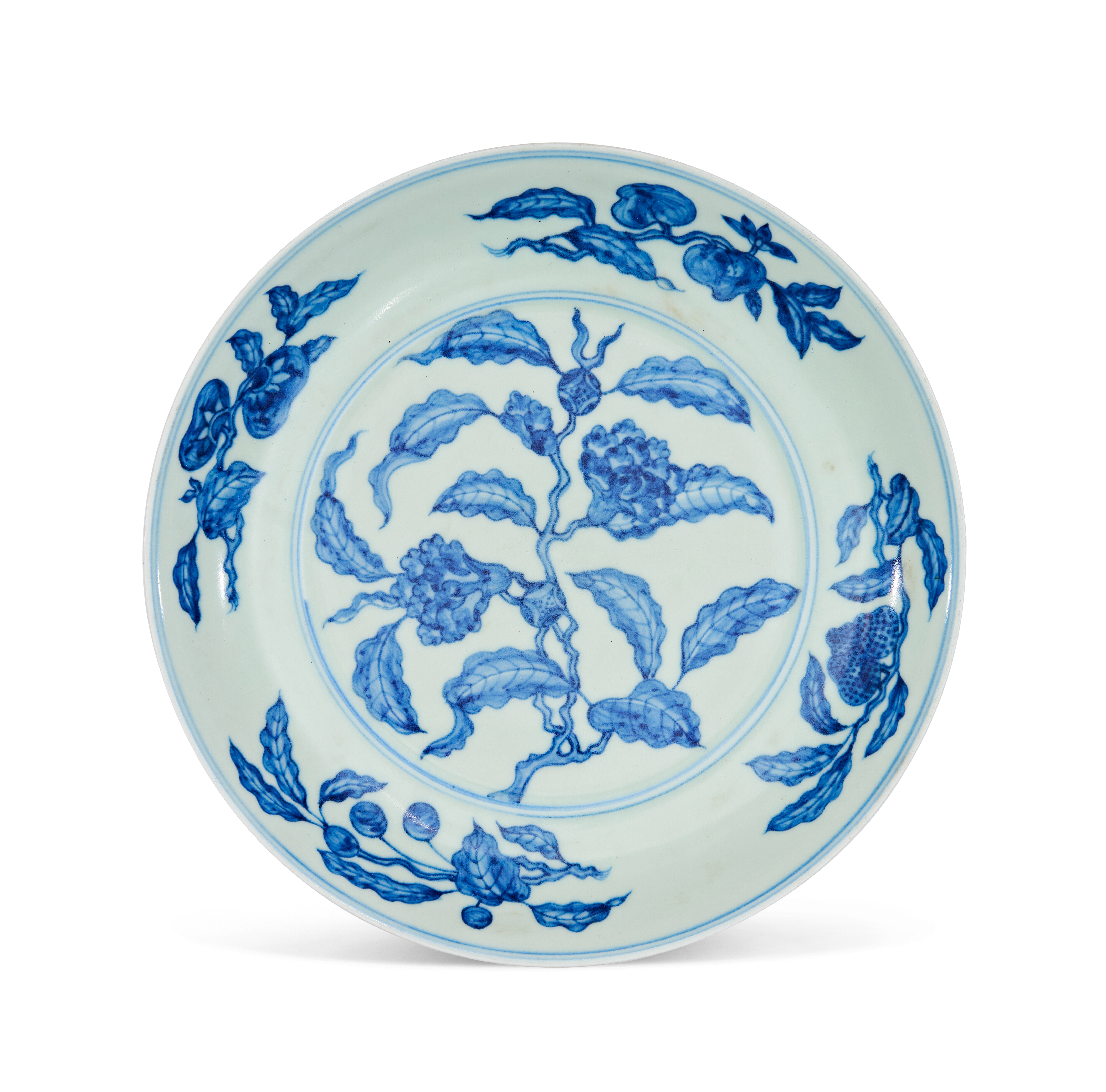 A FLORAL DESIGN BLUE AND WHITE CHINESE DISH, MING DYNASTY