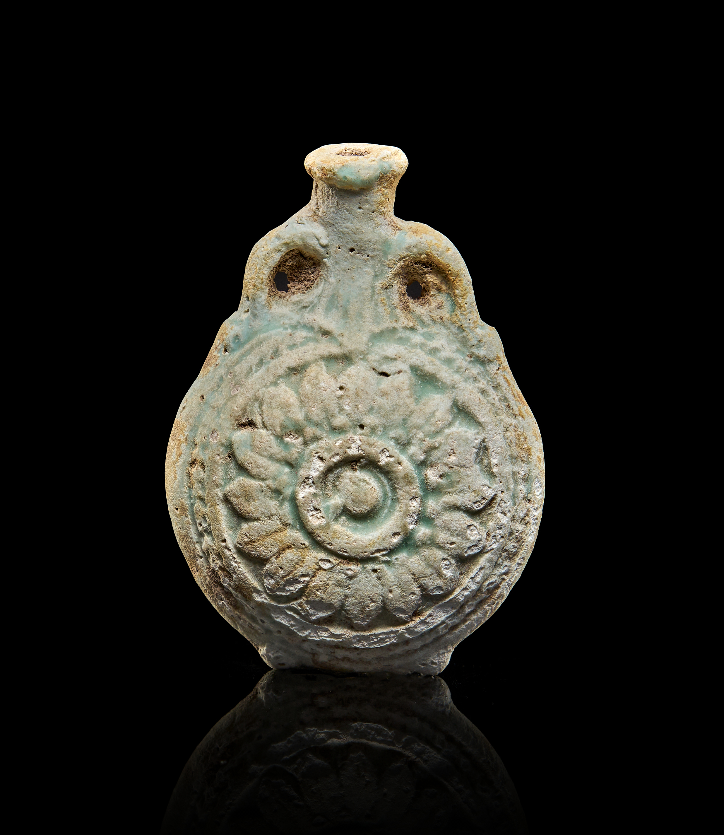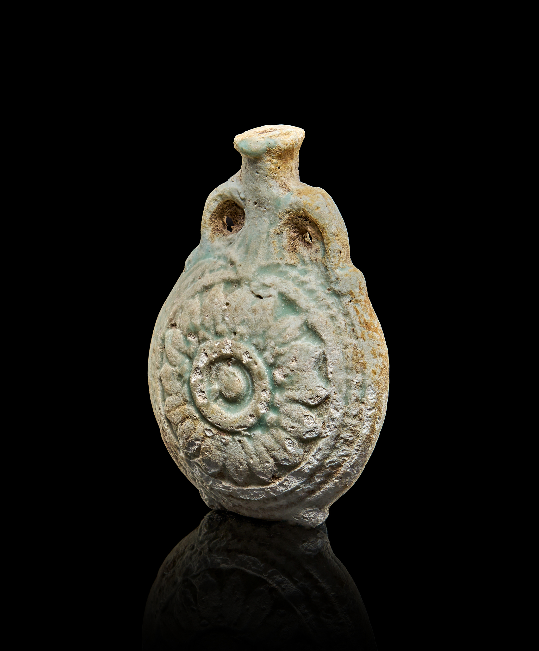 AN EGYPTIAN FAIENCE NEW YEARS FLASK, GRECO ROMAN, CIRCA 200 A.D.