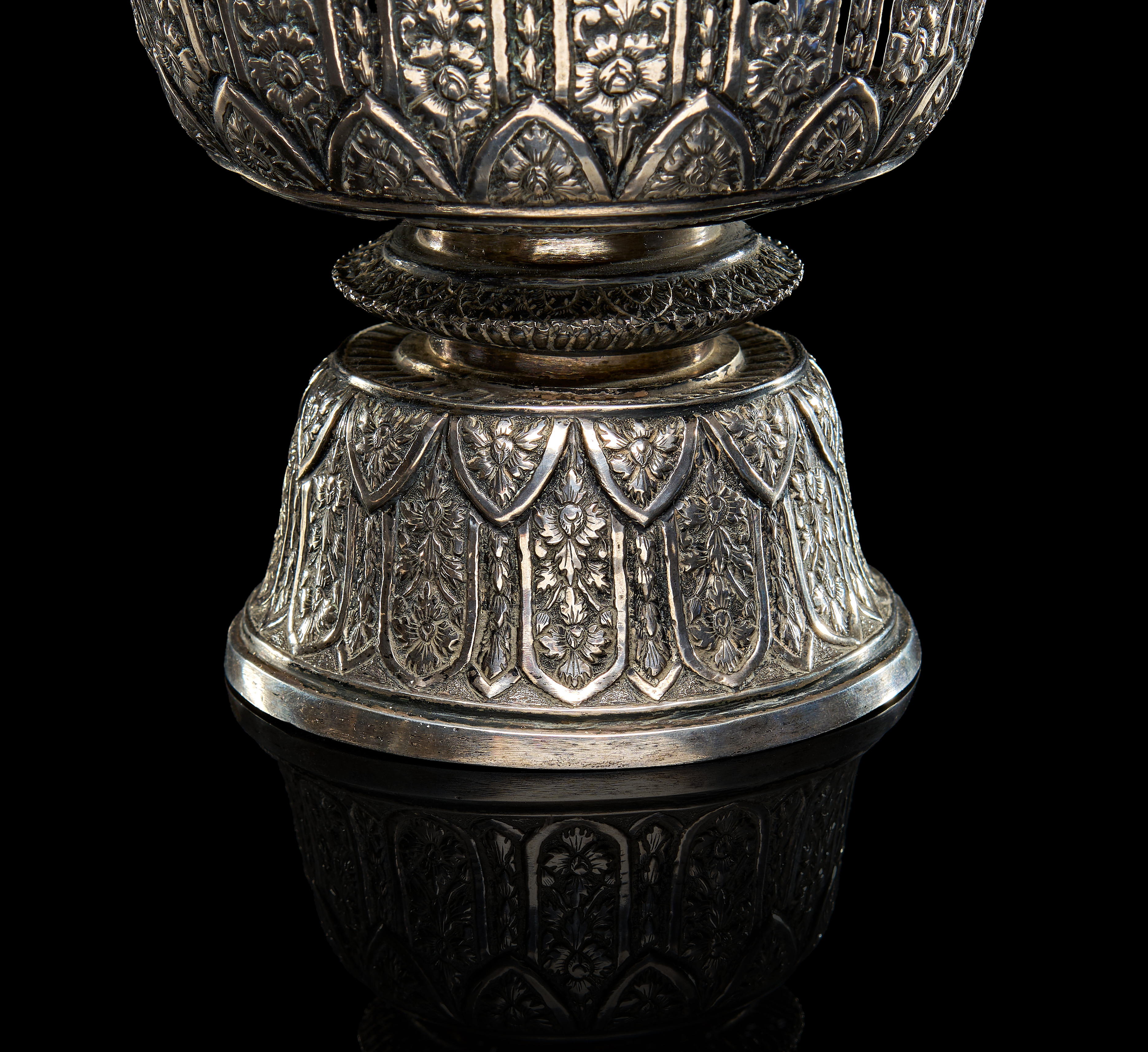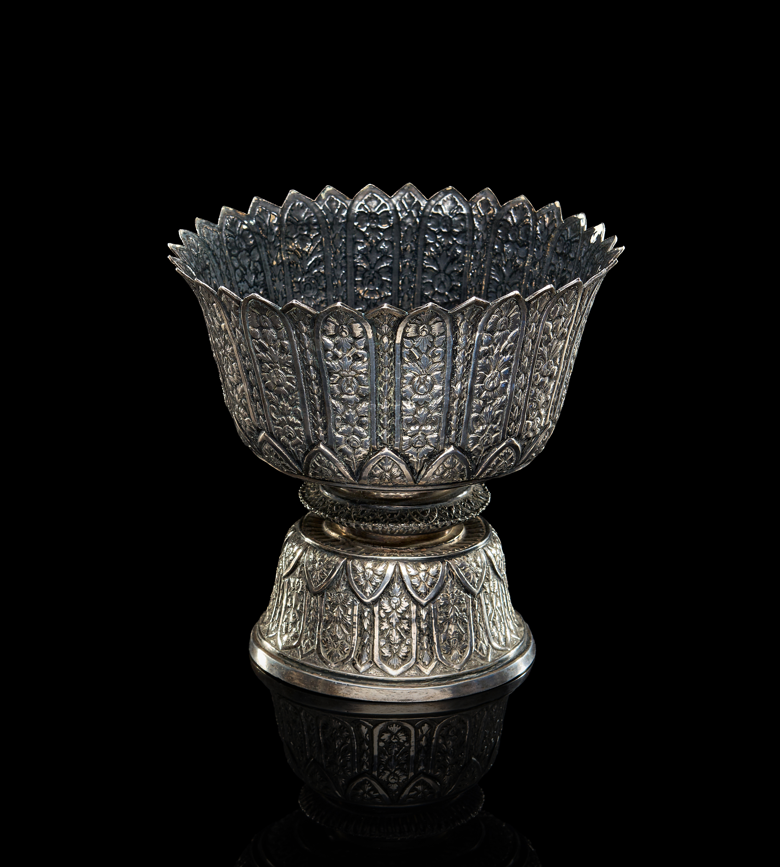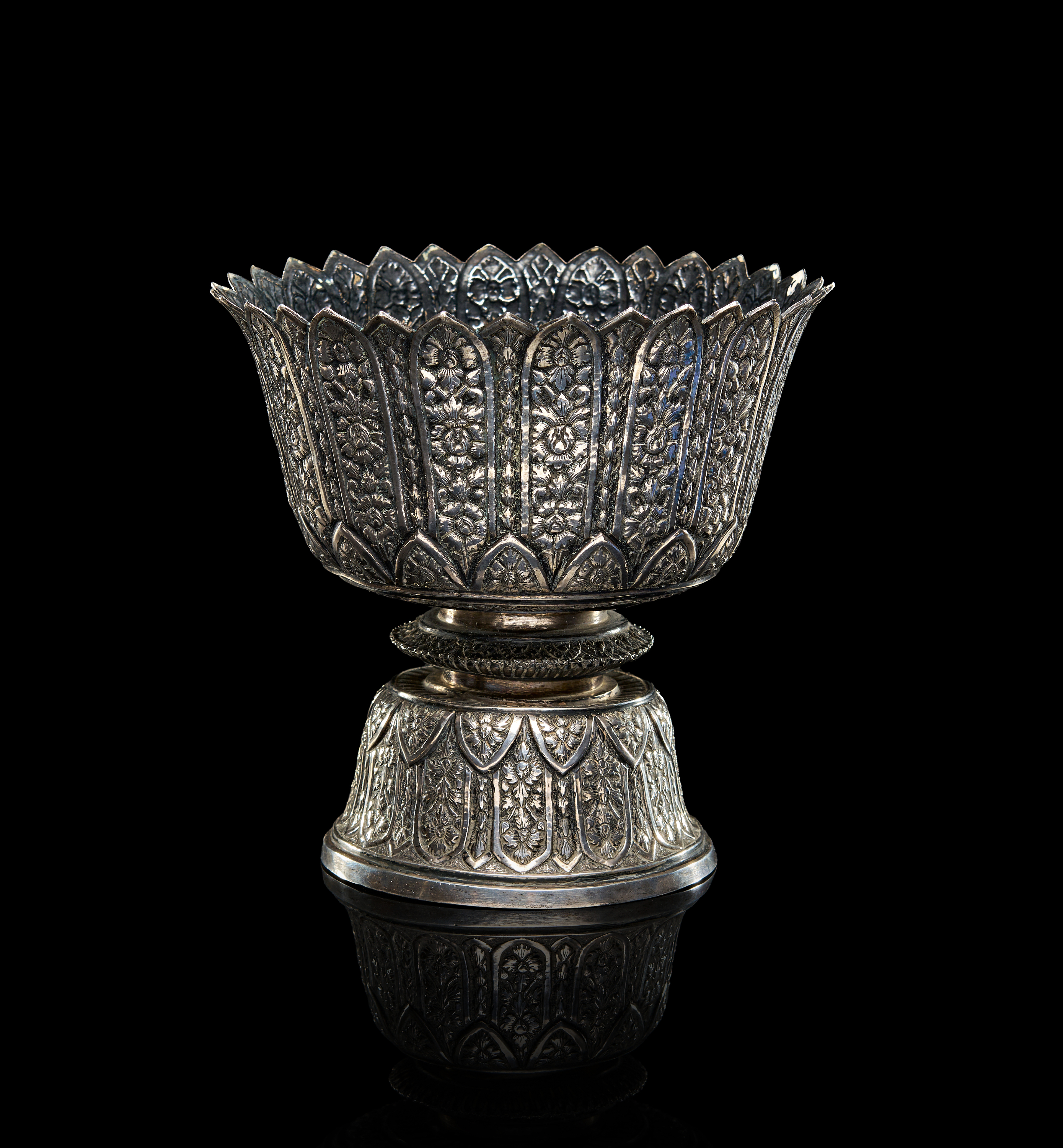 A SILVER CAMBODIAN FOOTED BOWL, MID 20TH CENTURY