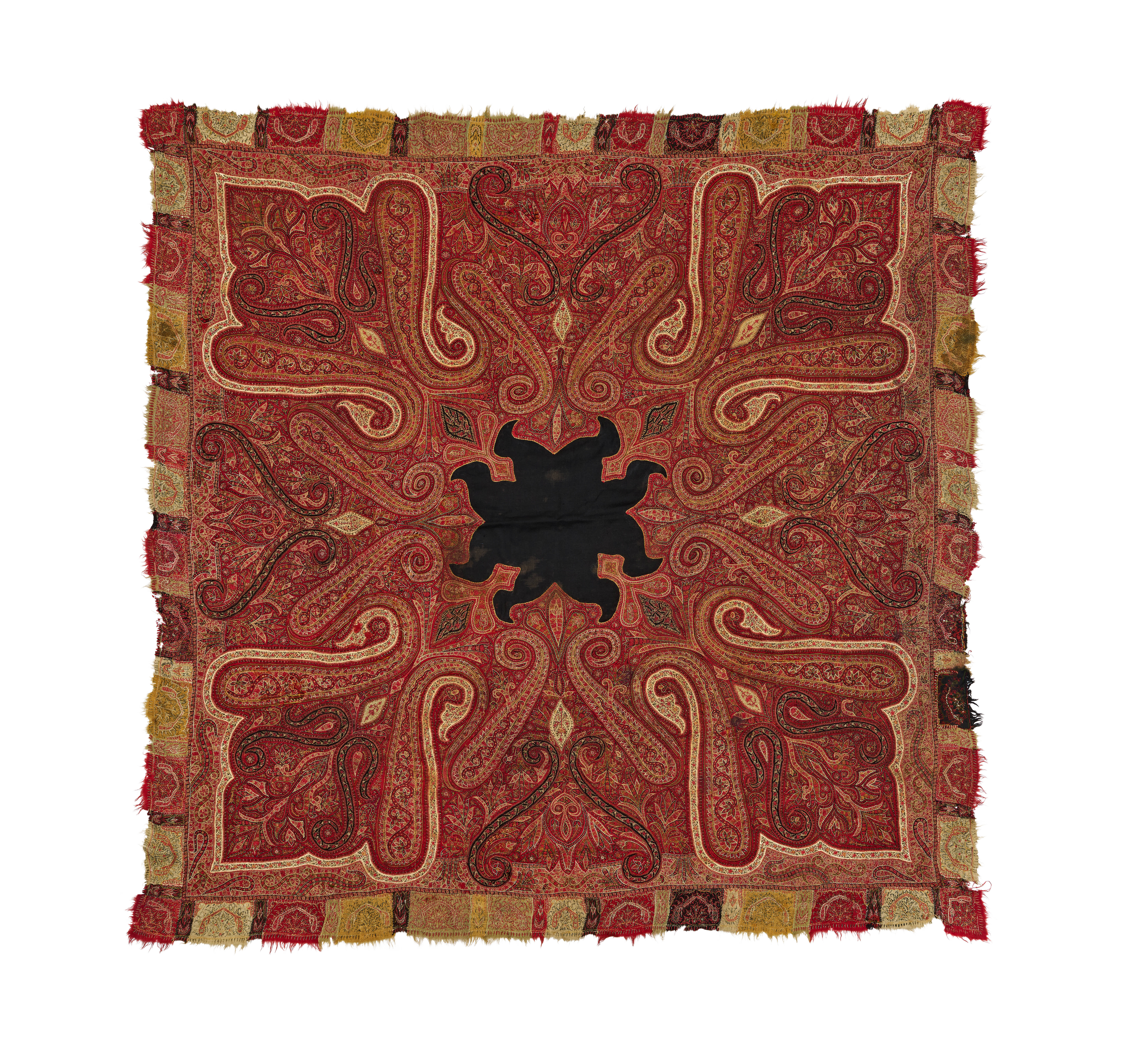 A 19TH CENTURY INDIAN KASHMIRI EMBROIDERED SHAWL TEXTILE