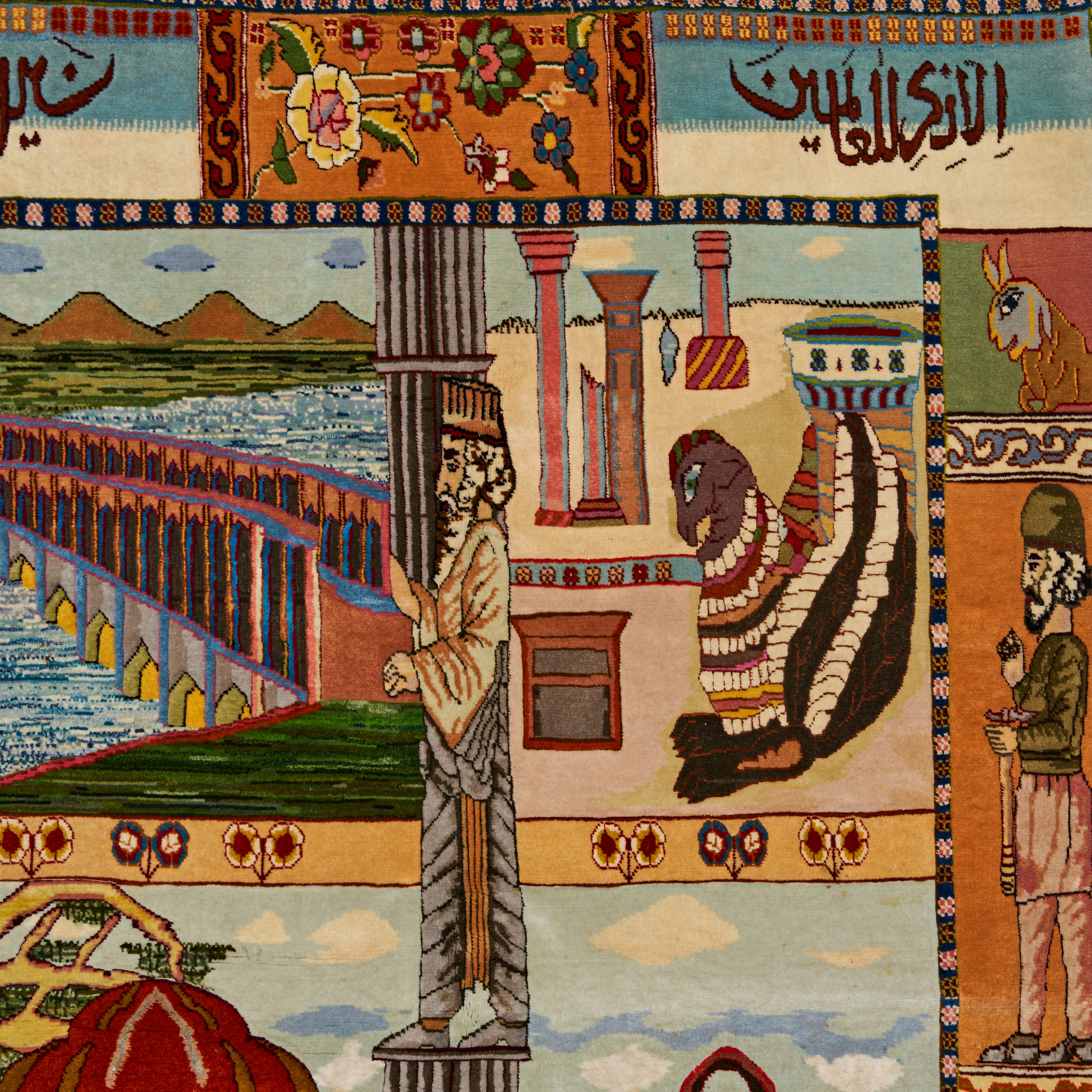 A WOOL PICTORIAL TABRIZ RUG, PERSIA, 20TH CENTURY