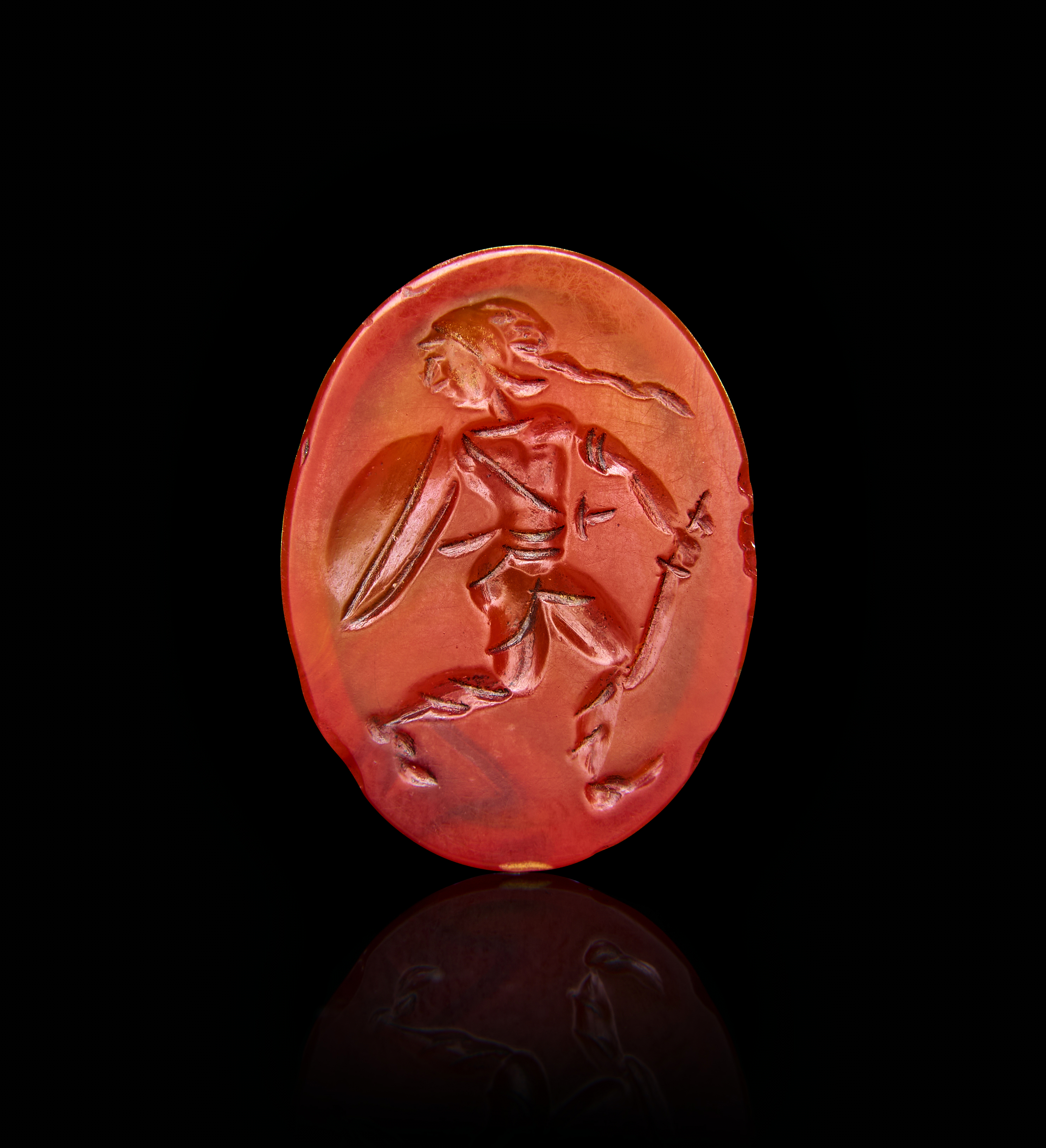 A RED ROMAN AGATE INTAGLIO DEPICTING A WARRIOR, 1ST – 2ND CENTURY A.D