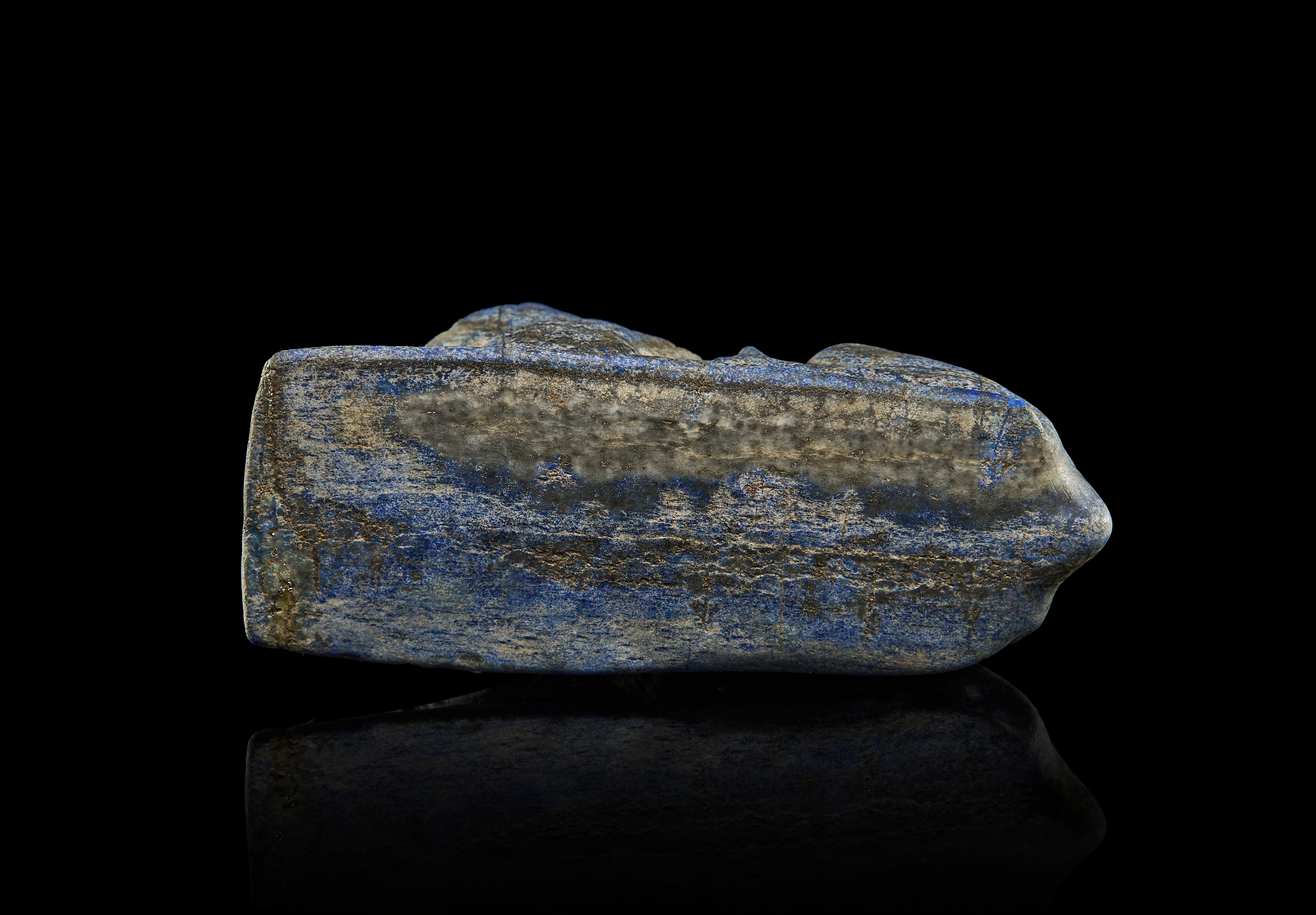 A LAPIS LAZULI SEATED LION INSCRIBED WITH CUNEIFORM, EARLY NEO BABYLONIAN OR EARLY NEO ASSYRIAN PERIOD, 800-600 B.C