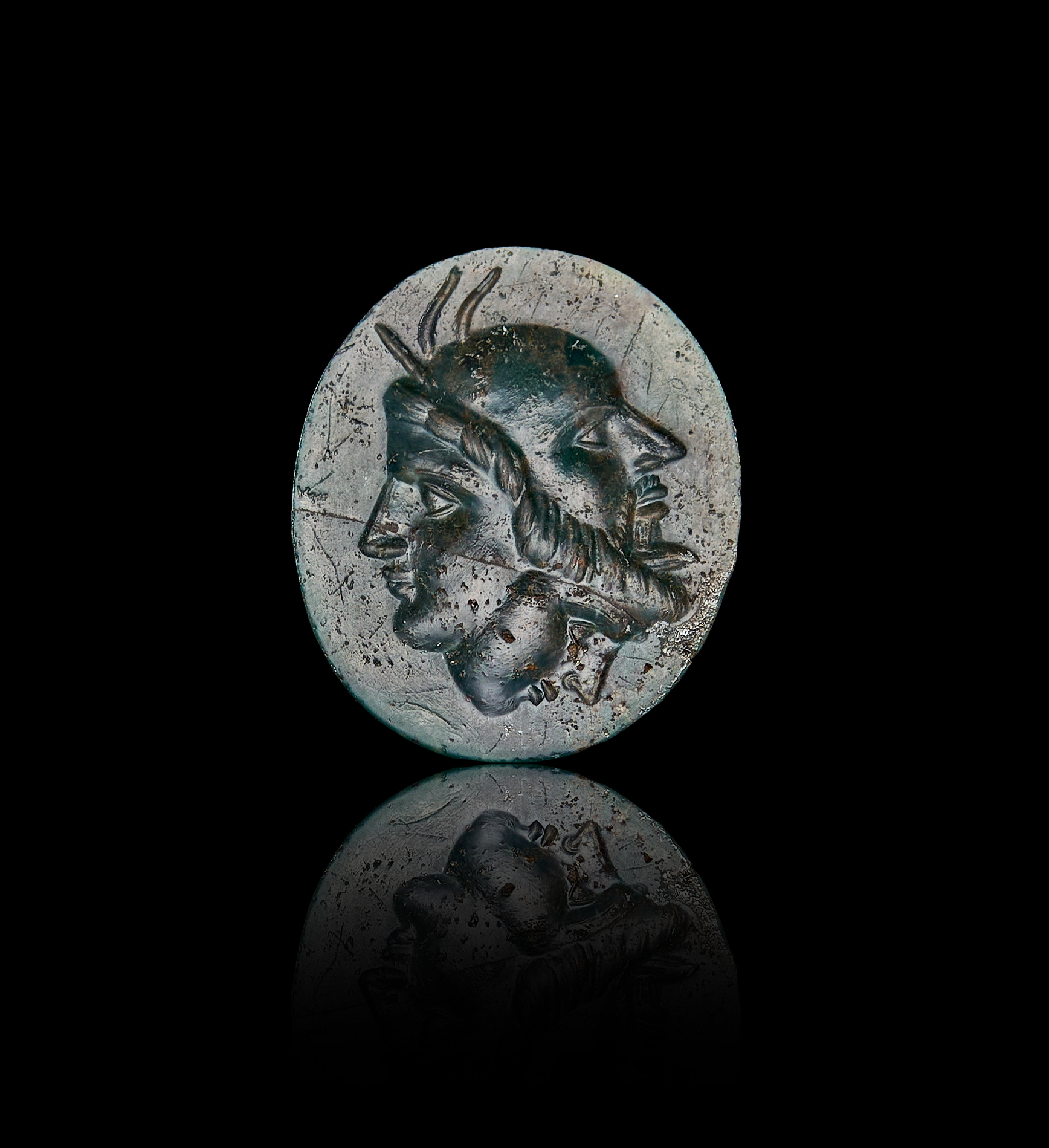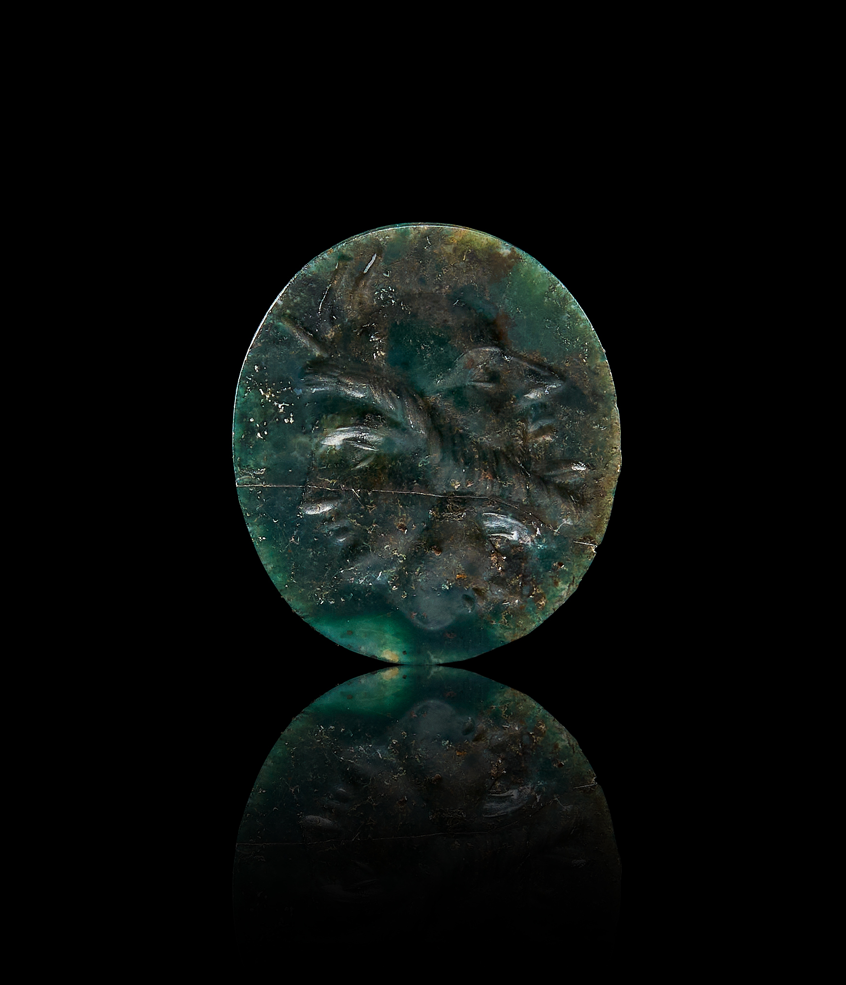 A RARE DOUBLE FACED ROMAN GREEN AGATE INTAGLIO, 1ST – 2ND CENTURY A.D.