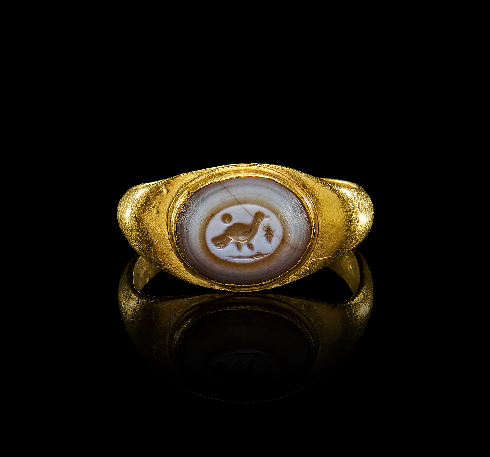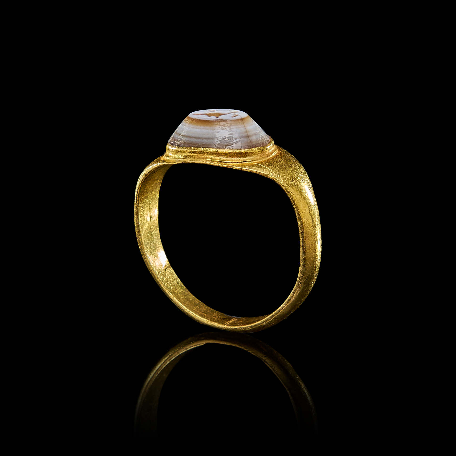 A ROMAN GOLD AND AGATE INTAGLIO RING, 2ND – 3RD CENTURY A.D.