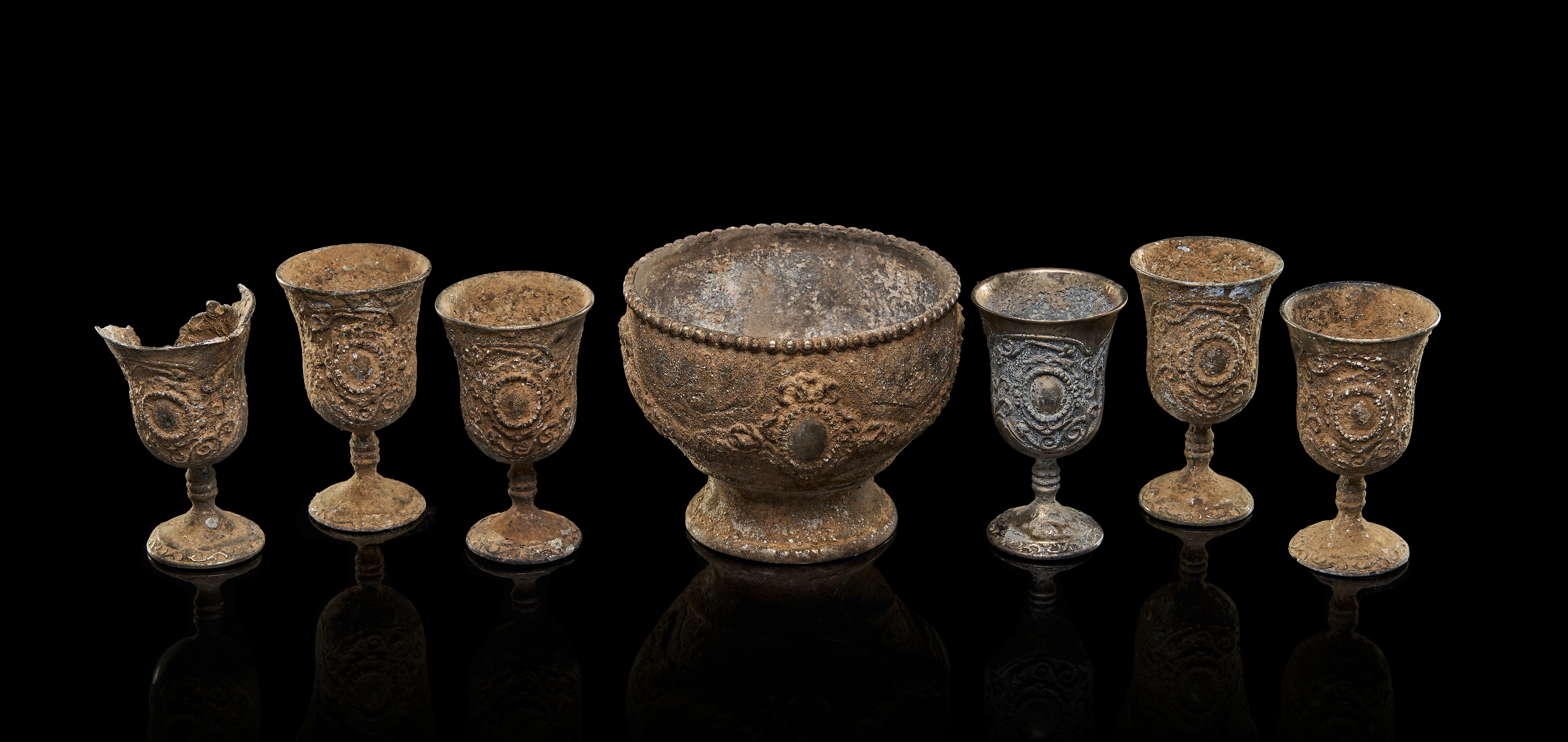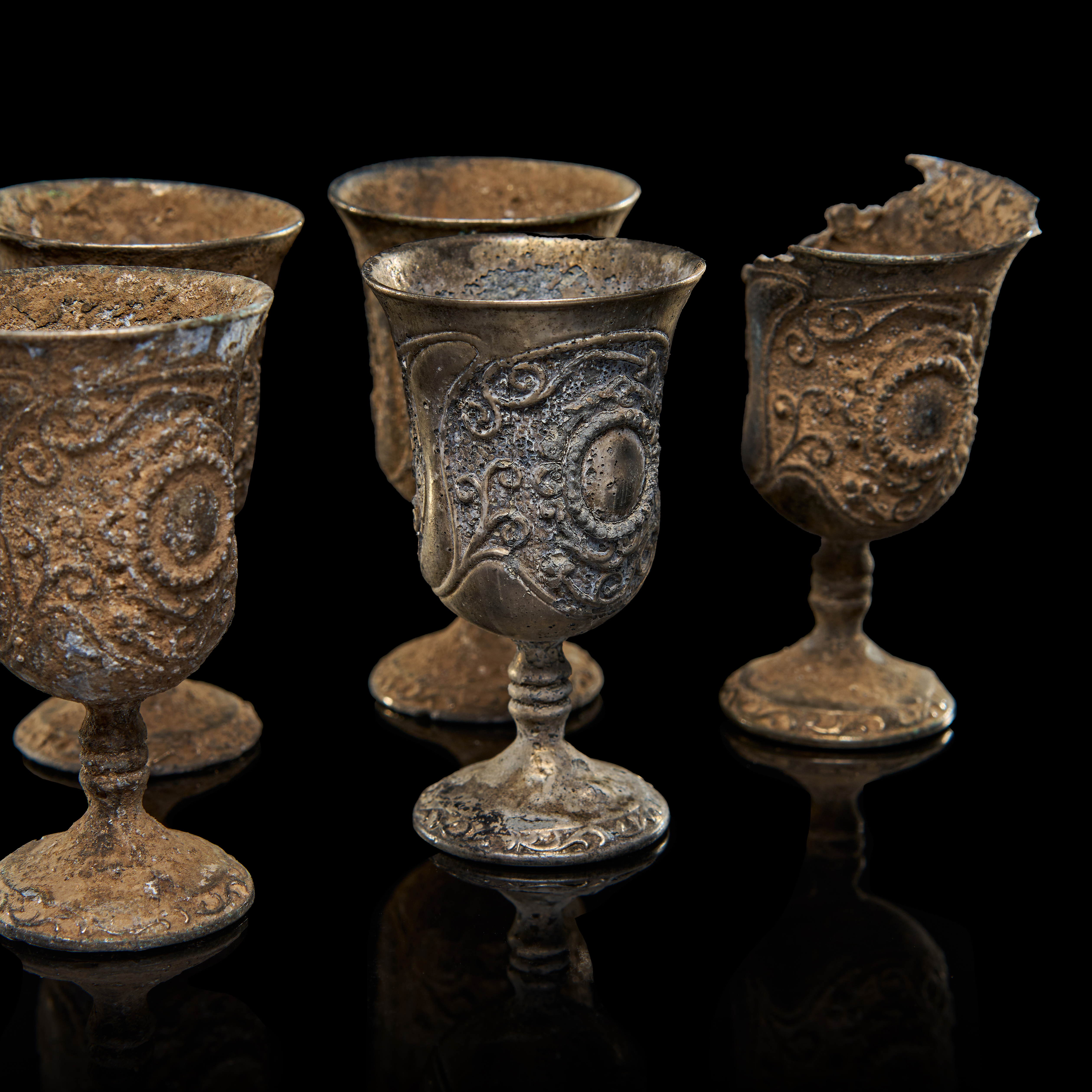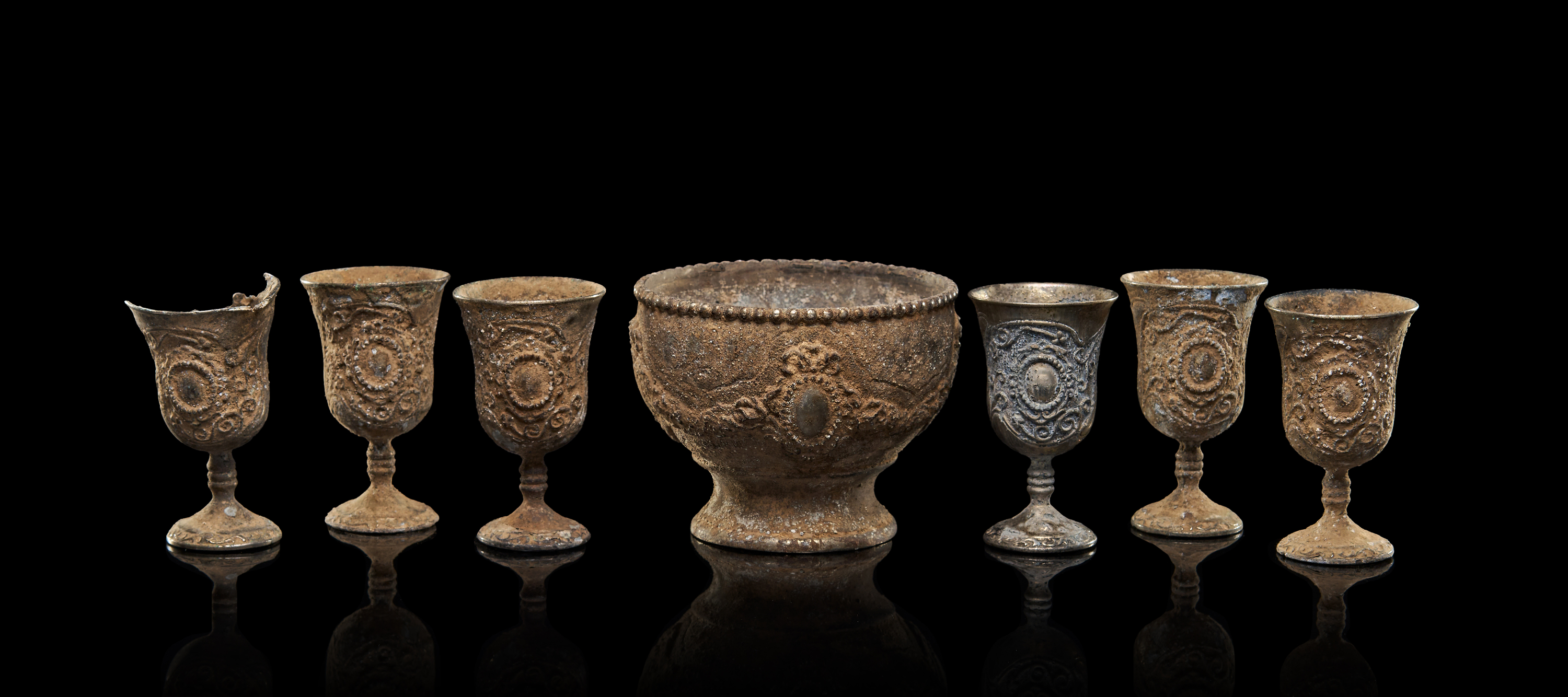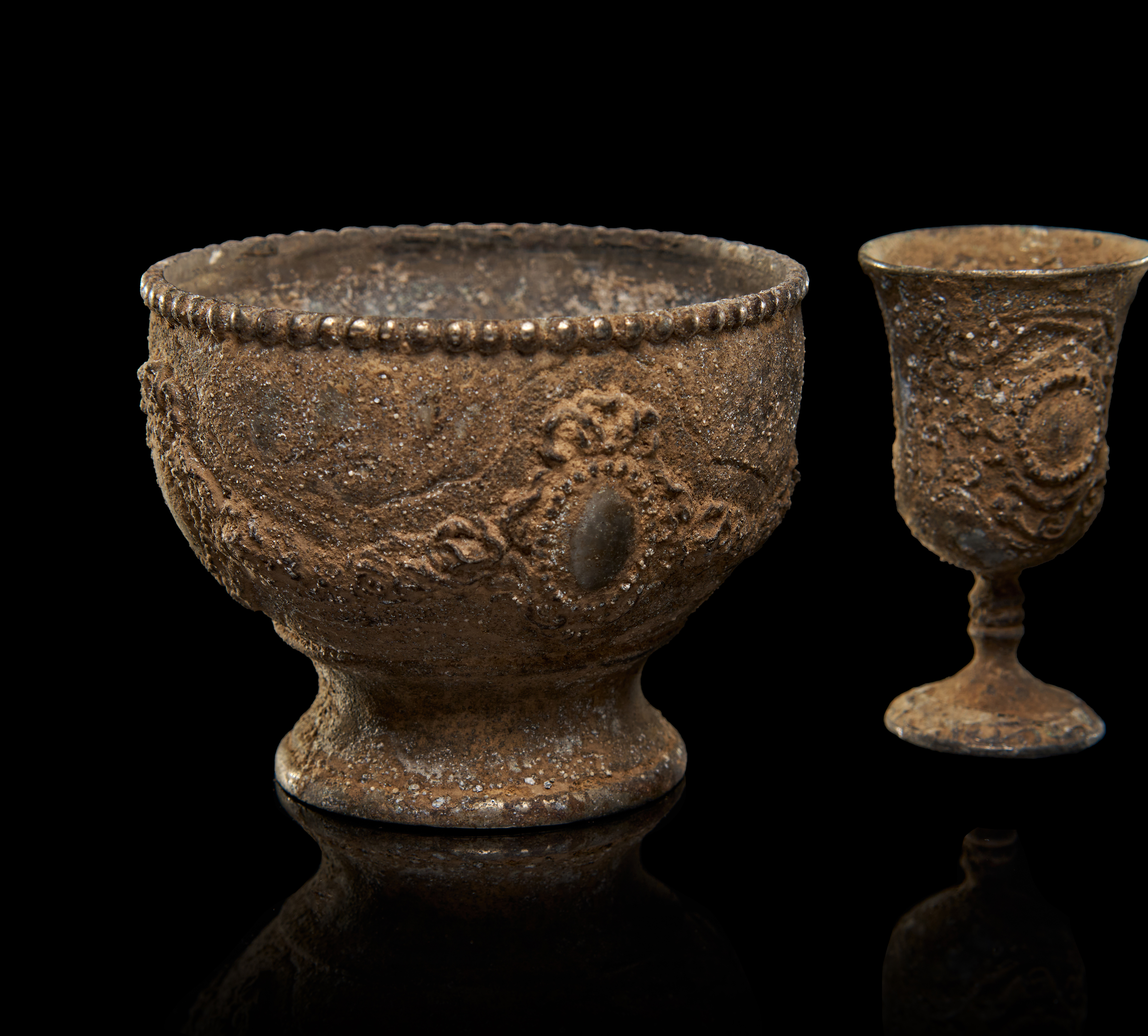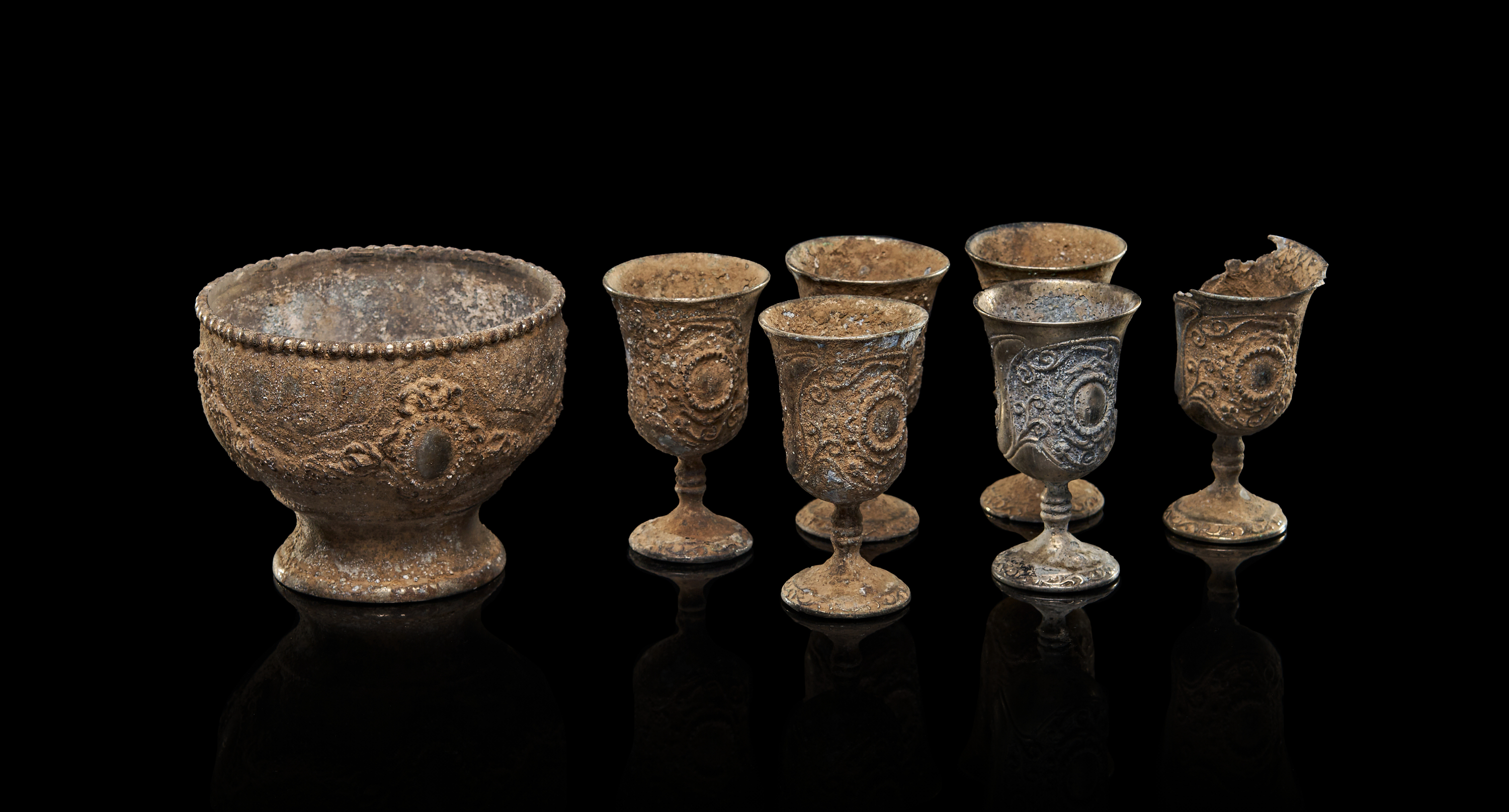 A GROUP OF BRONZE BYZANTINE CUPS AND BOWL, 8TH CENTURY A.D. OR LATER