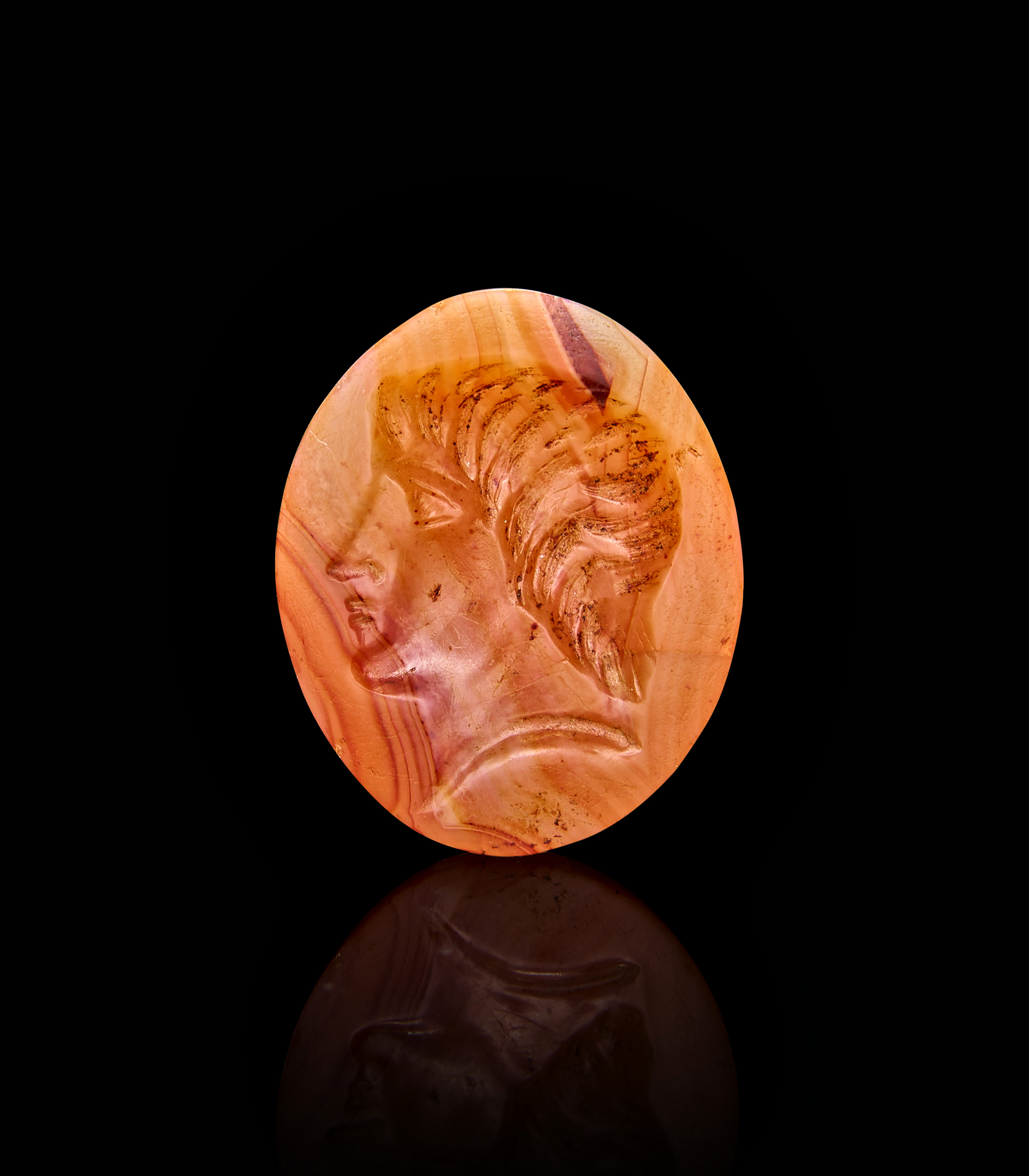 A ROMAN AGATE INTAGLIO DEPICTING A HEAD OF A FEMALE, 1ST – 2ND CENTURY A.D