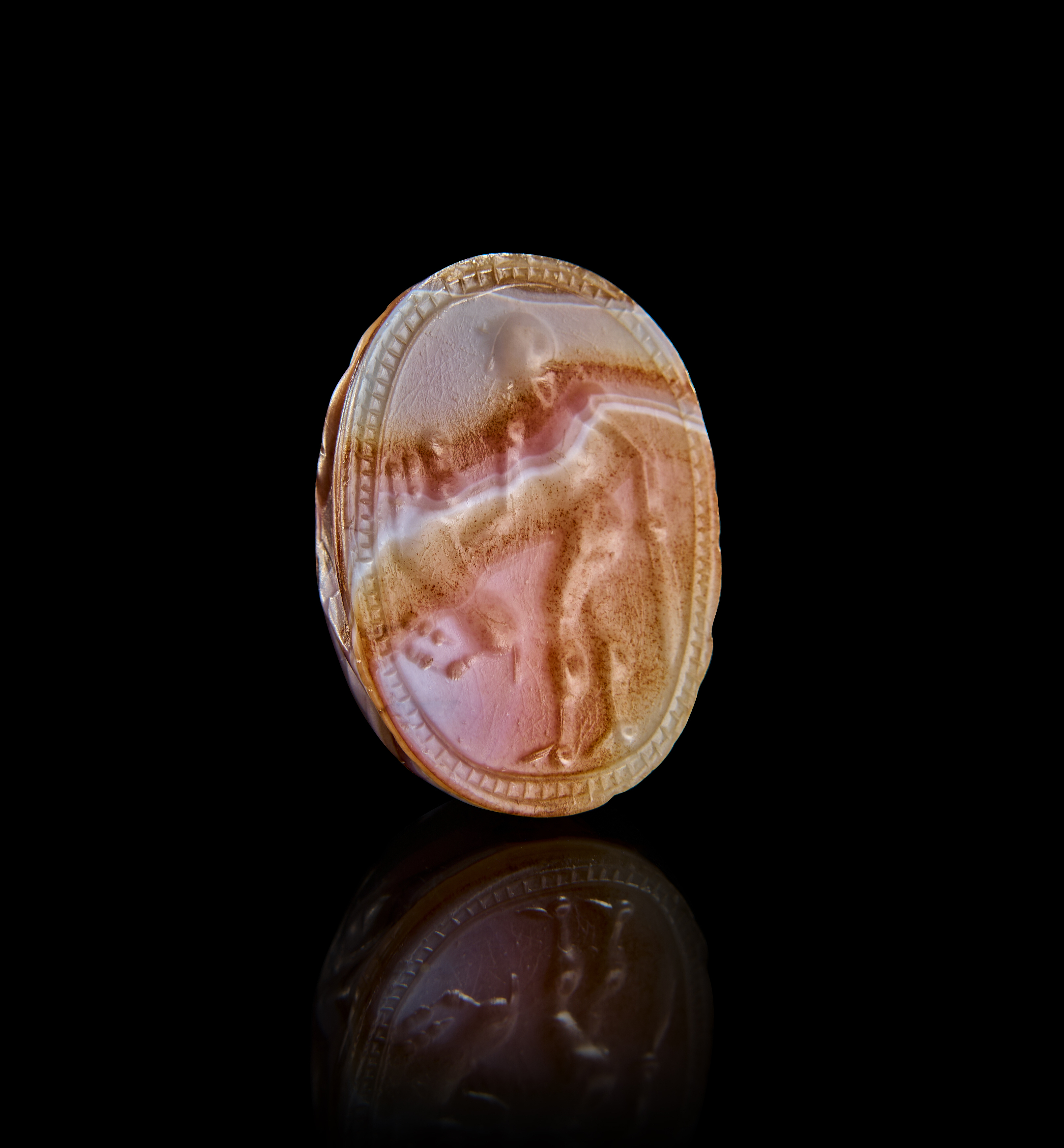 A BANDED AGATE ARCHAIC GREEK SCARABIOD, 600-500 B.C.