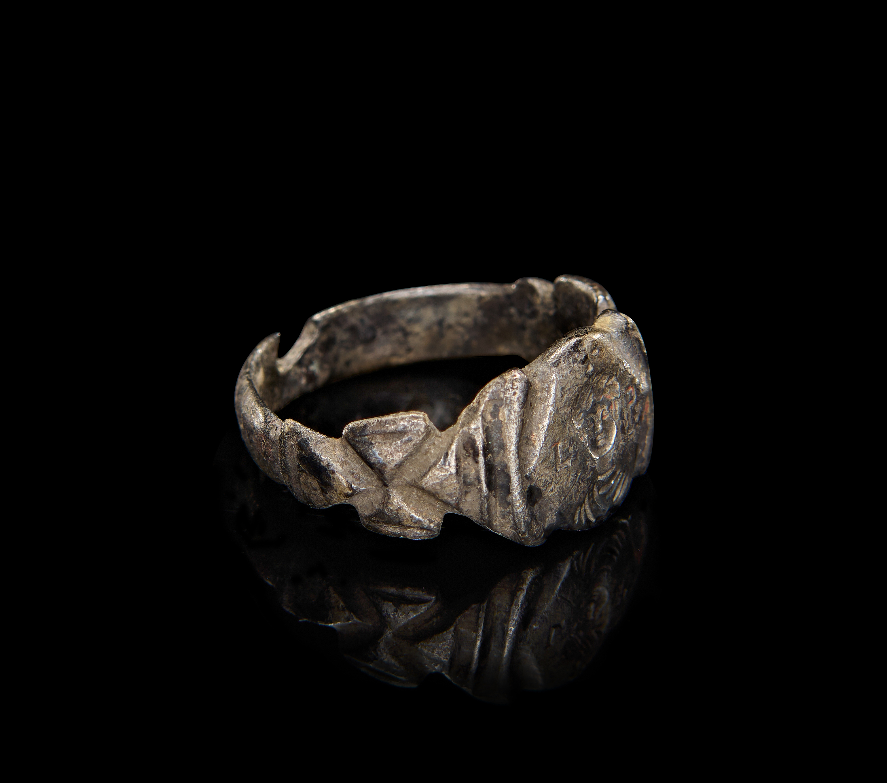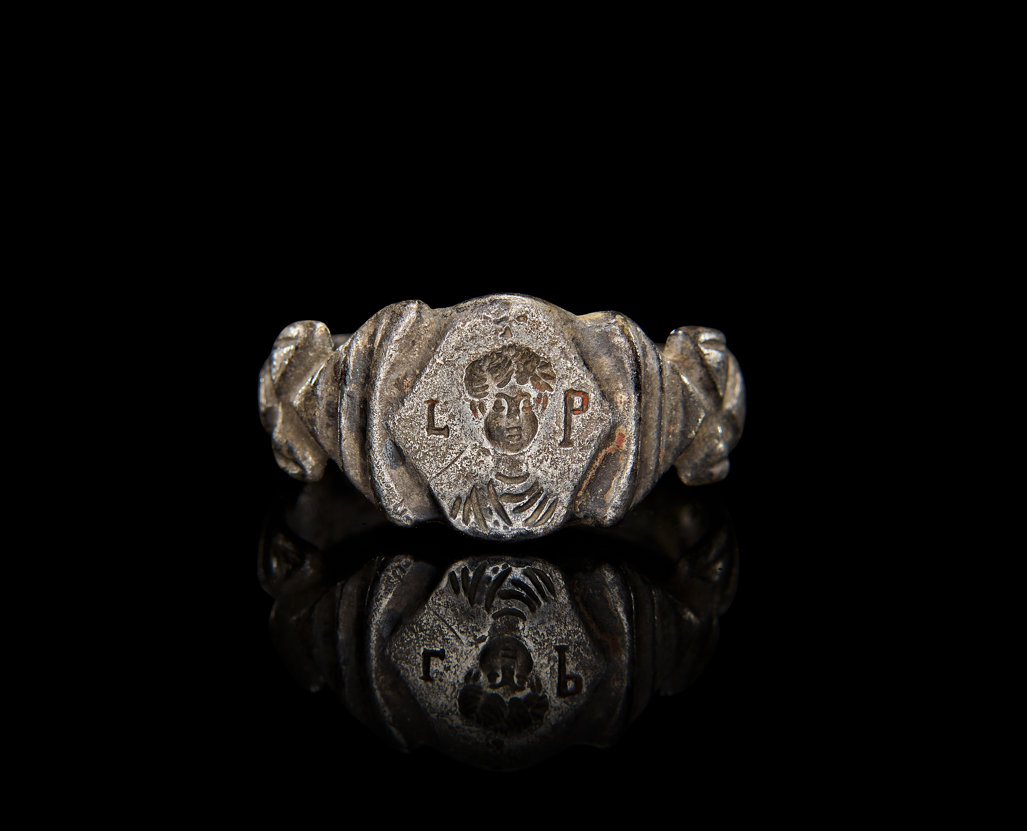 A SILVER RING WITH OWNER INITIALS, LATE ROMAN – EARLY BYZANTINE
