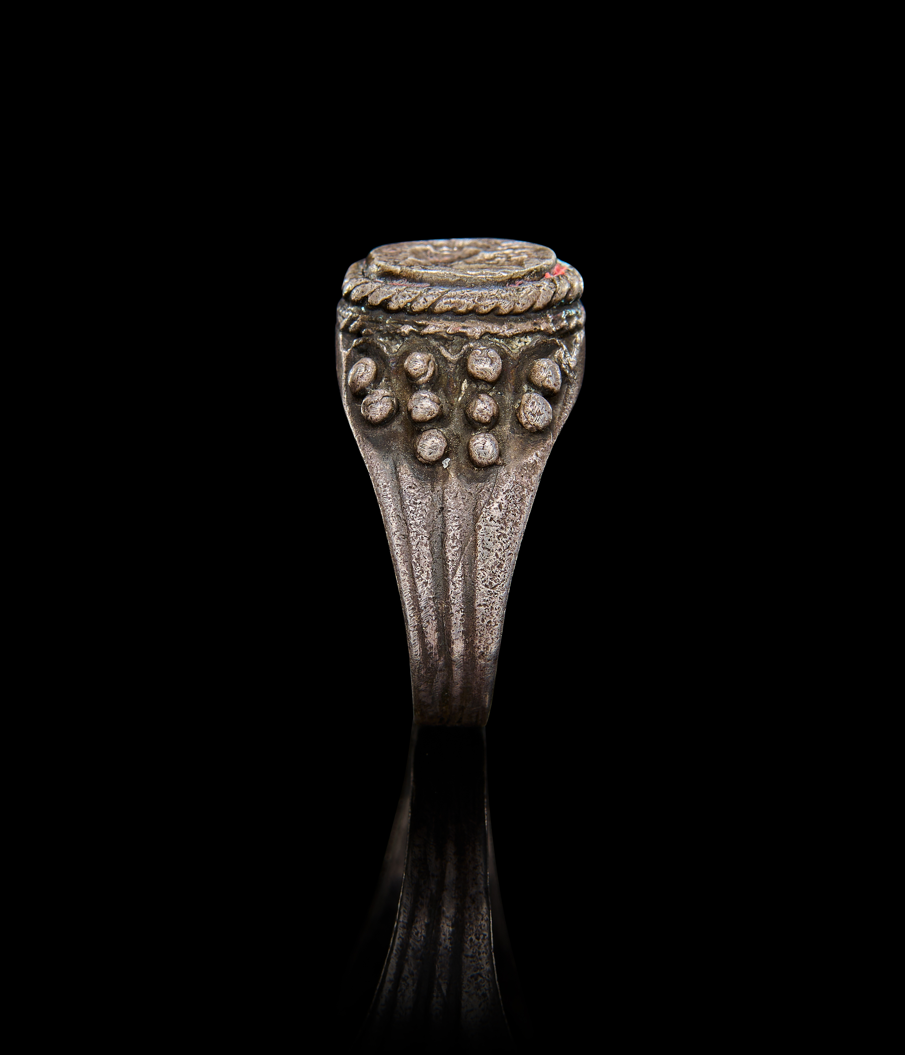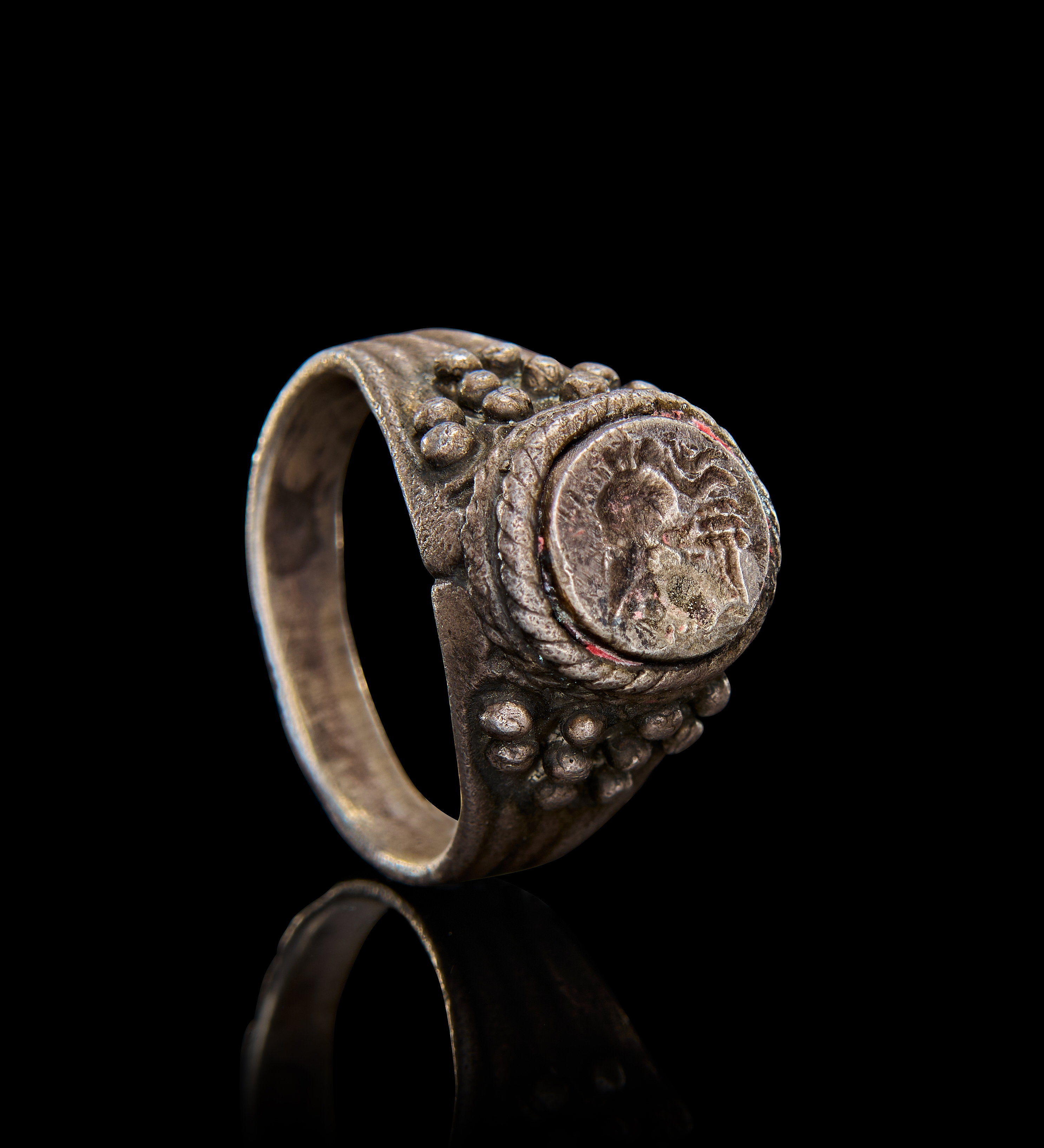 A ROMAN SILVER RING WITH SILVER INTAGLIO