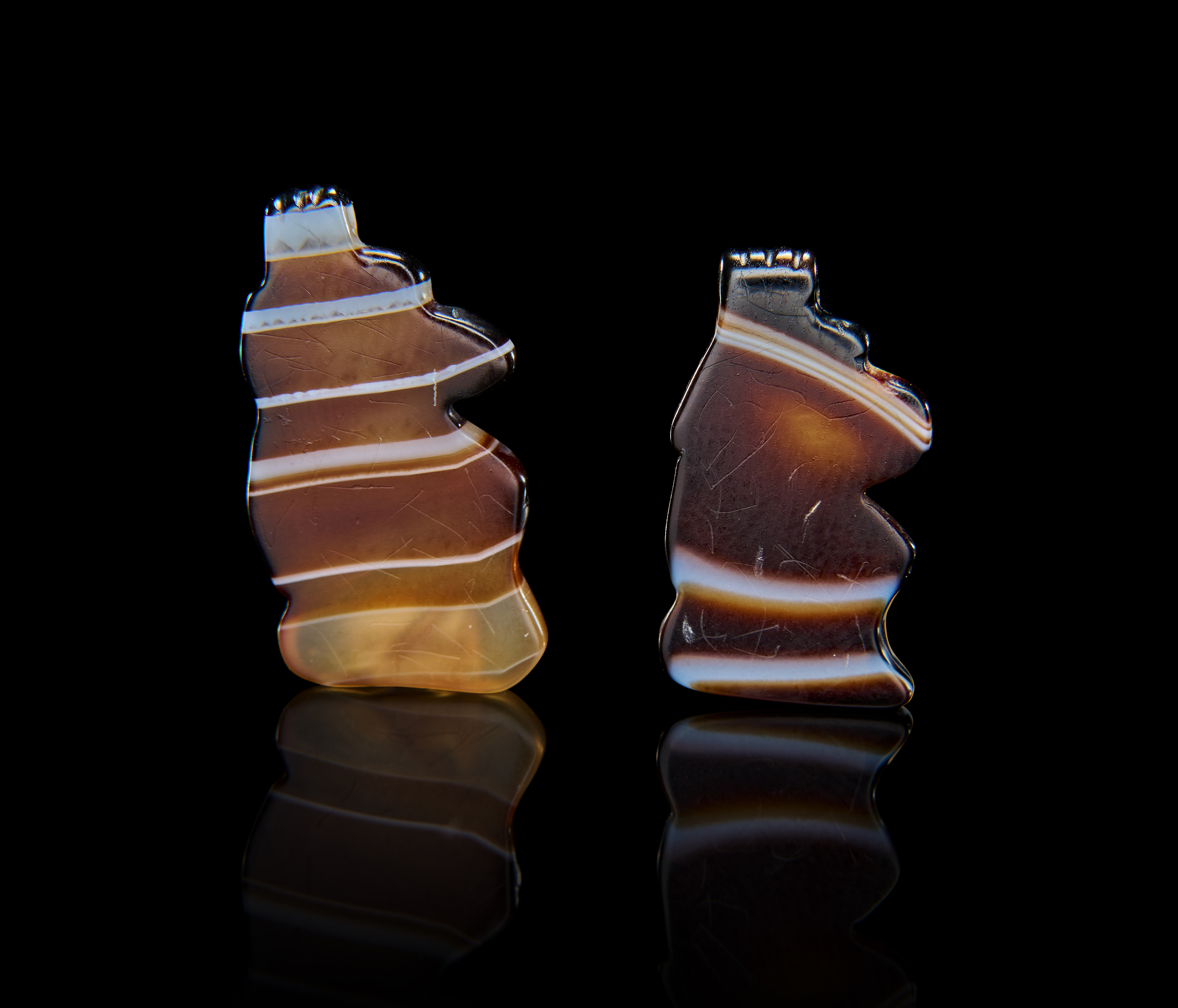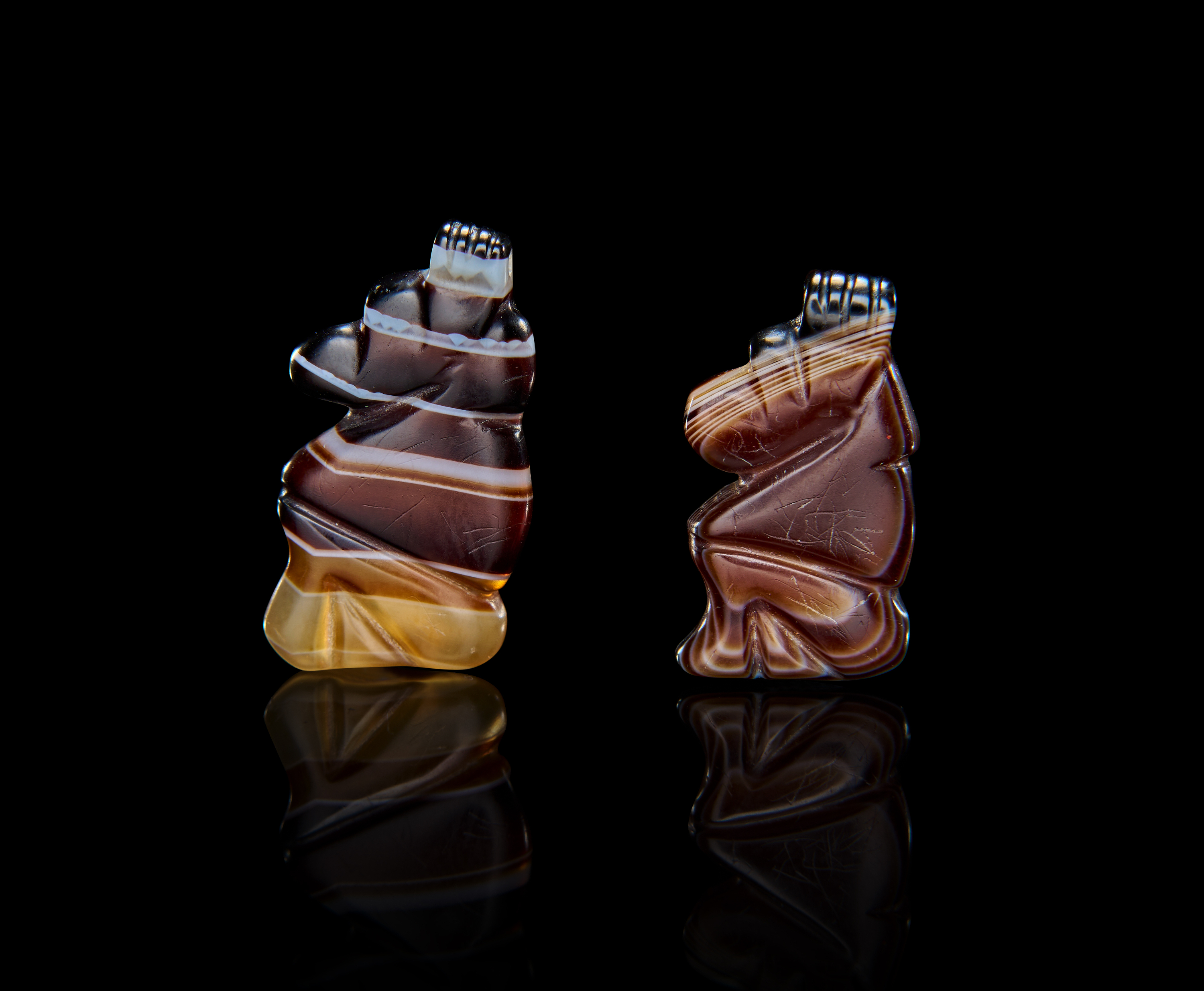 A TWO SARDONYX AGATE OF A SEATED BABOONS, LATE PERIOD OF EGYPT, 500 – 300 B.C.