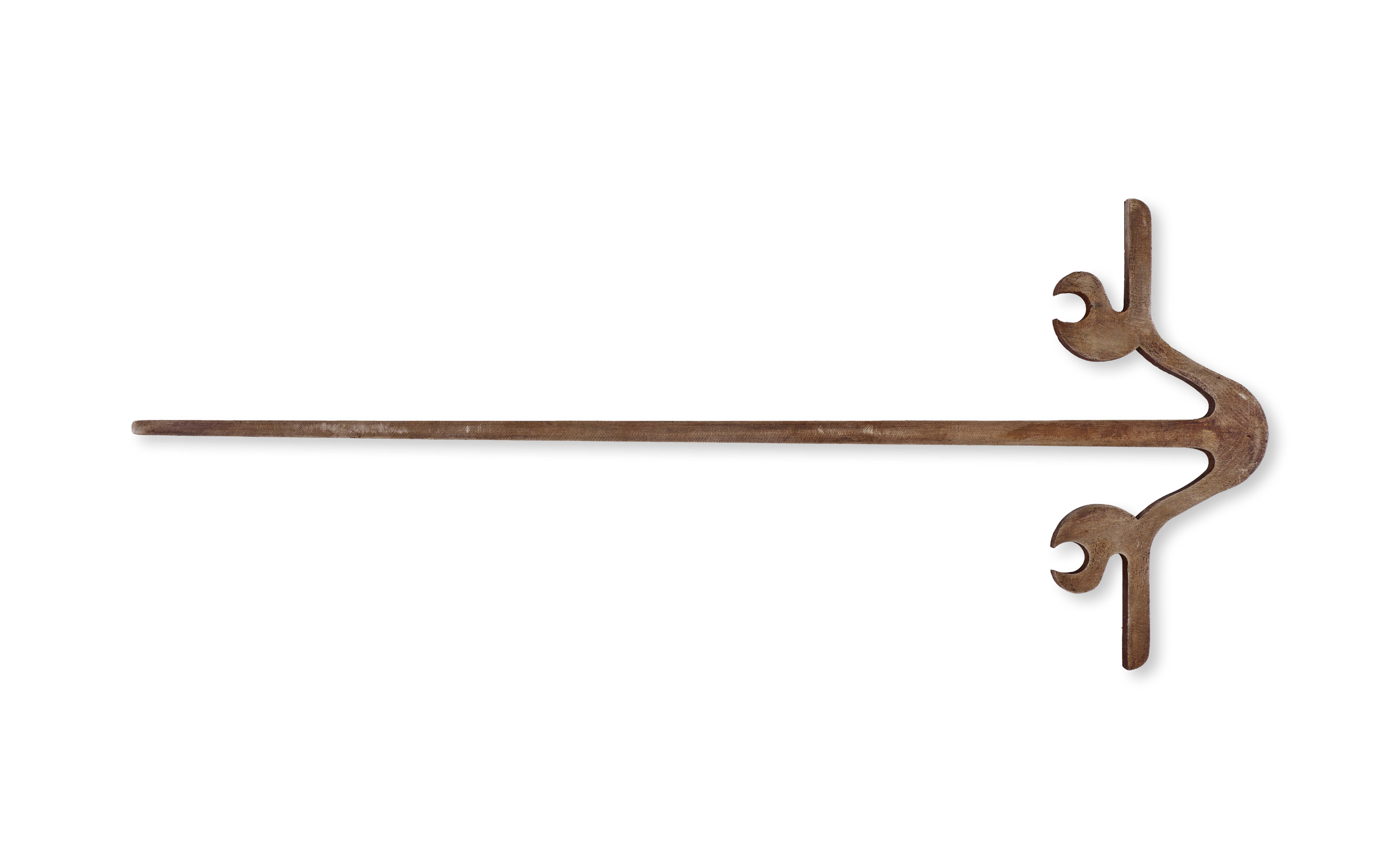 A STEEL DERVISH ARMREST ORNAMENT, PERSIA, 19TH – 20TH CENTURY
