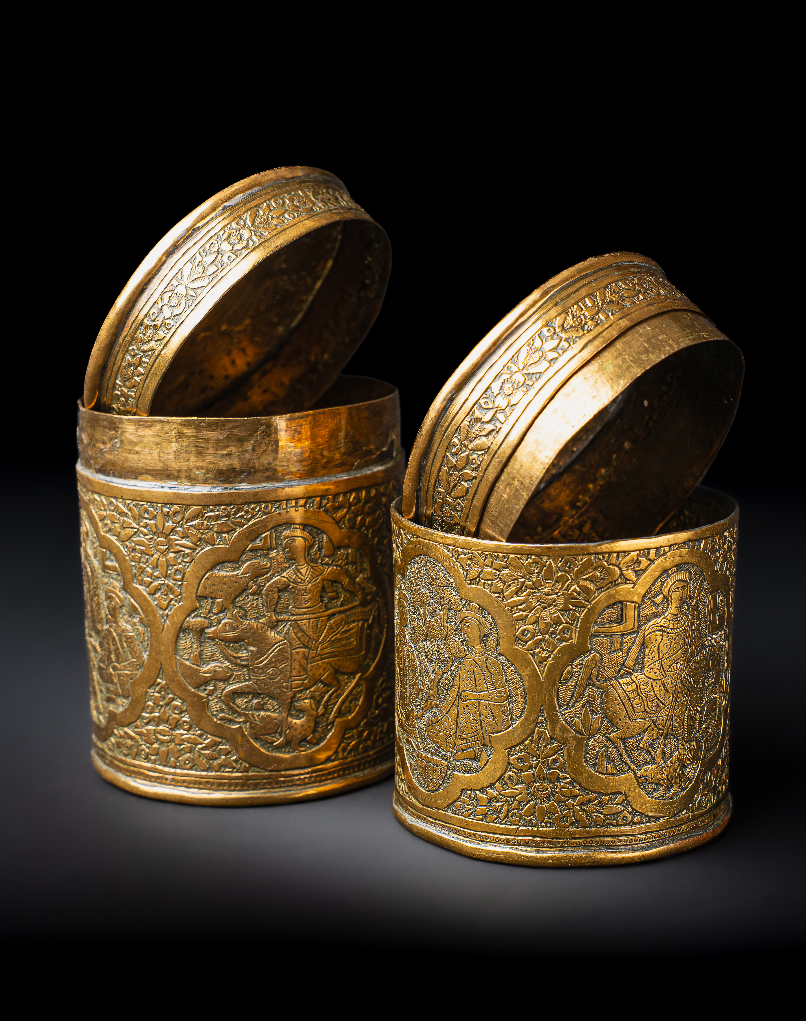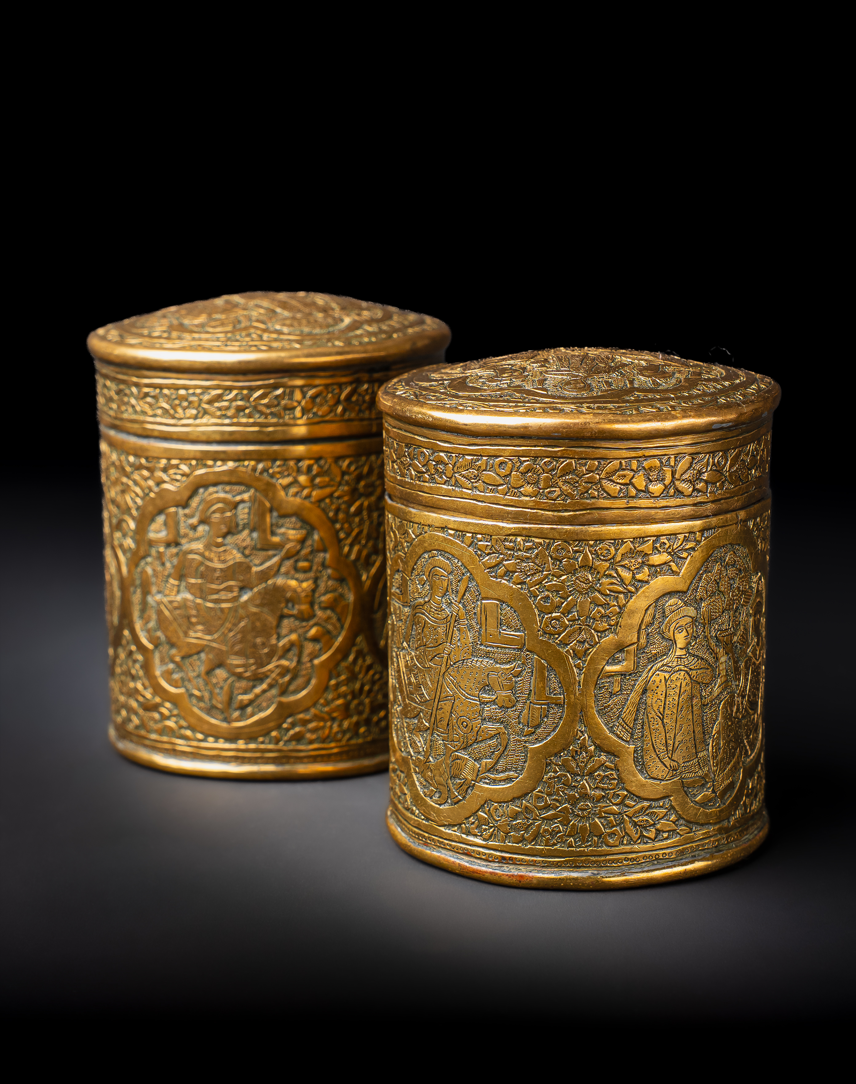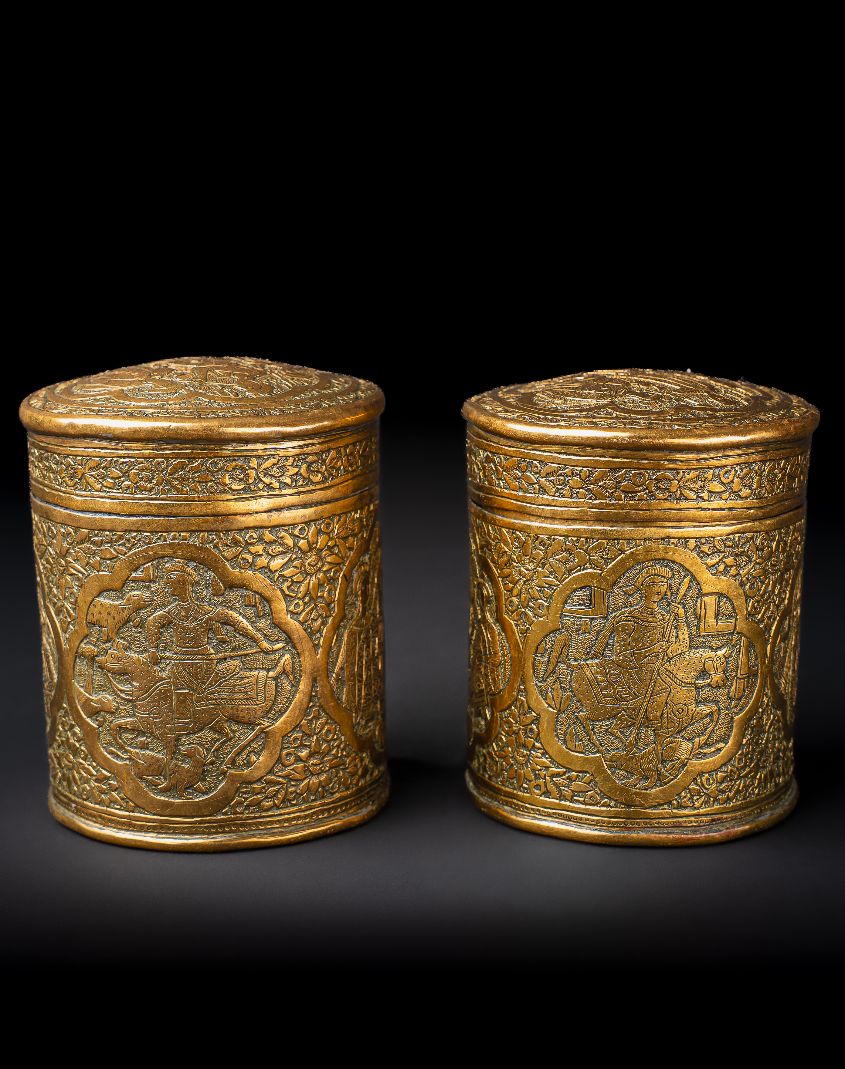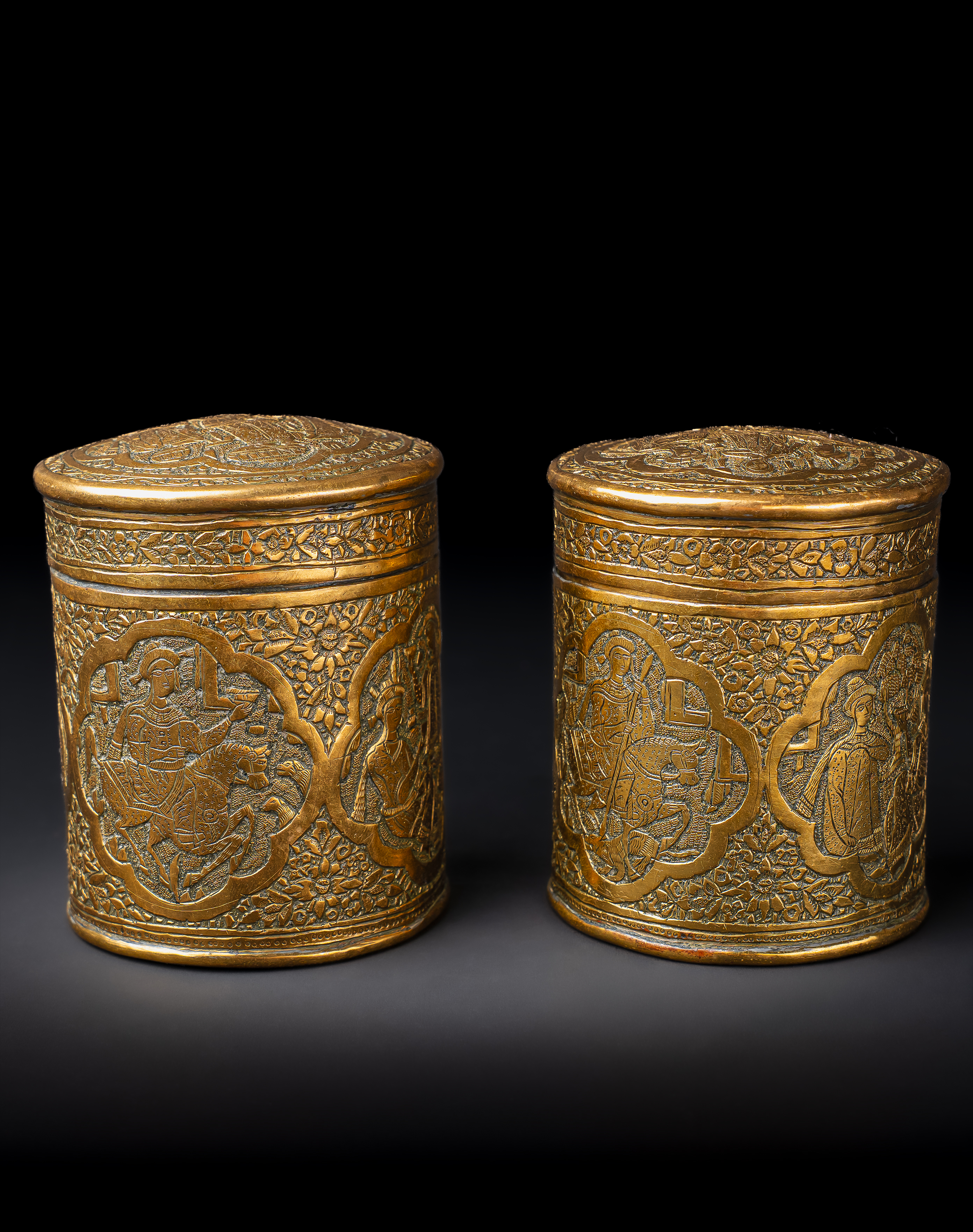 A PAIR OF ENGRAVED BRASS QAJAR JARS, PERSIA, 19TH CENTURY