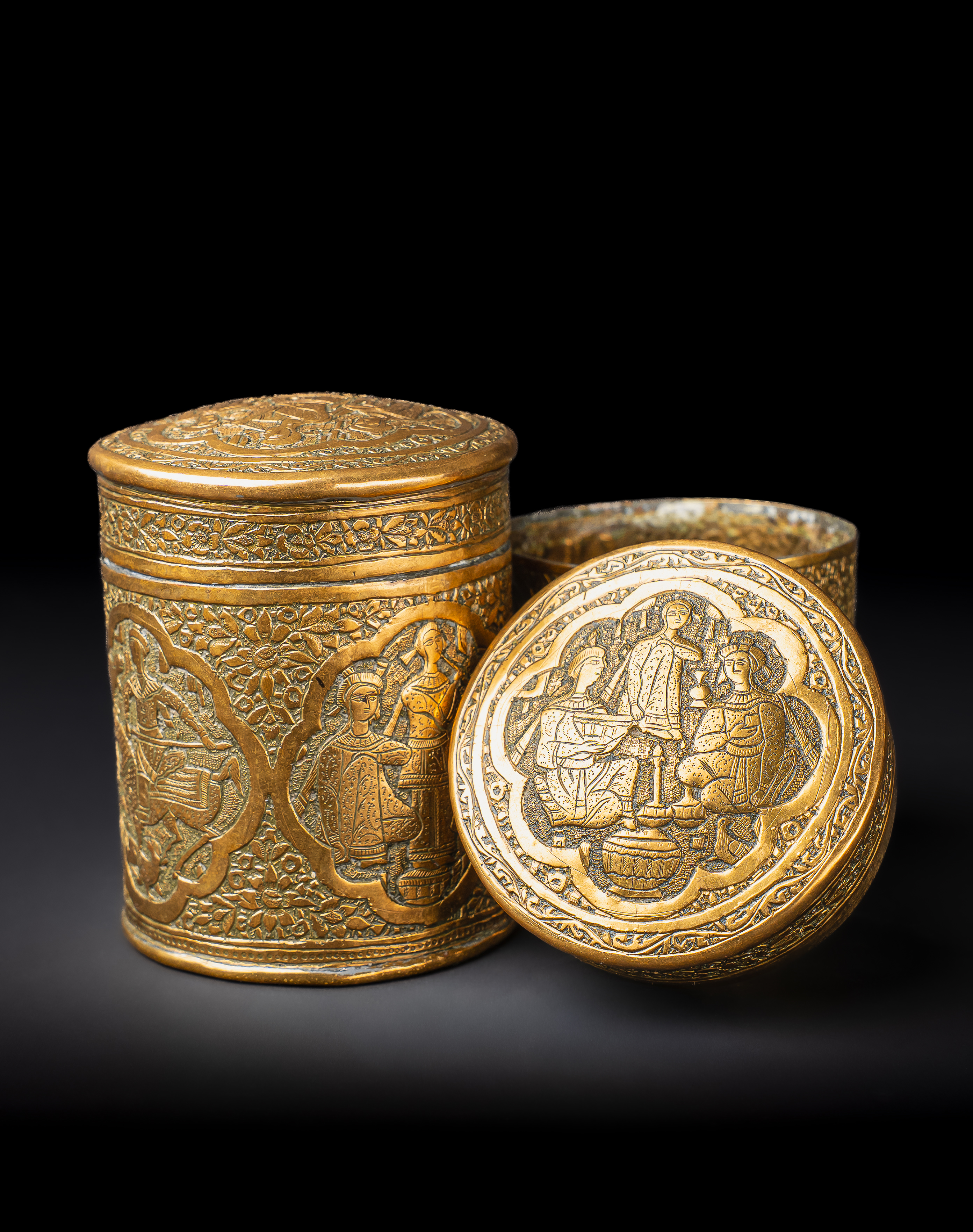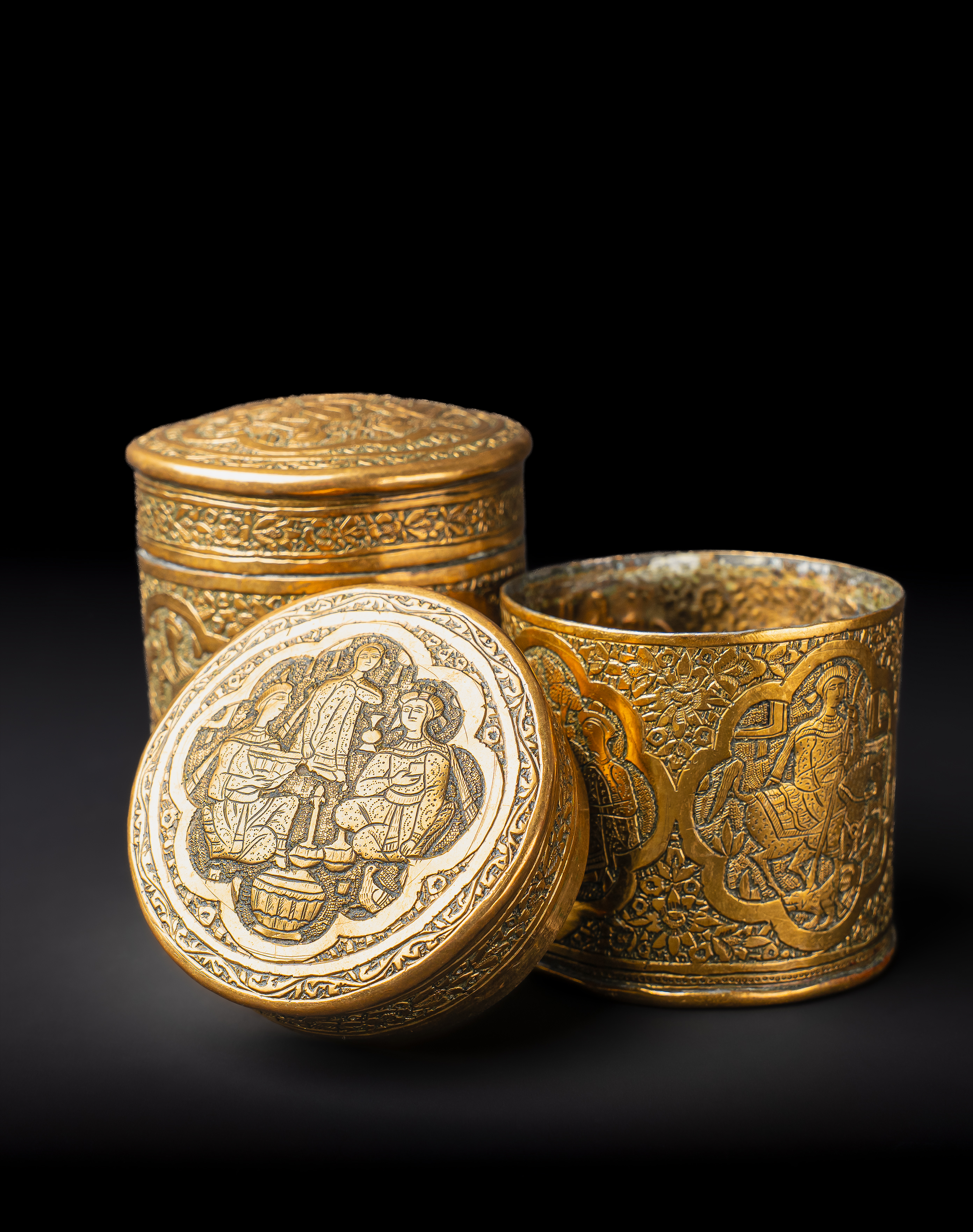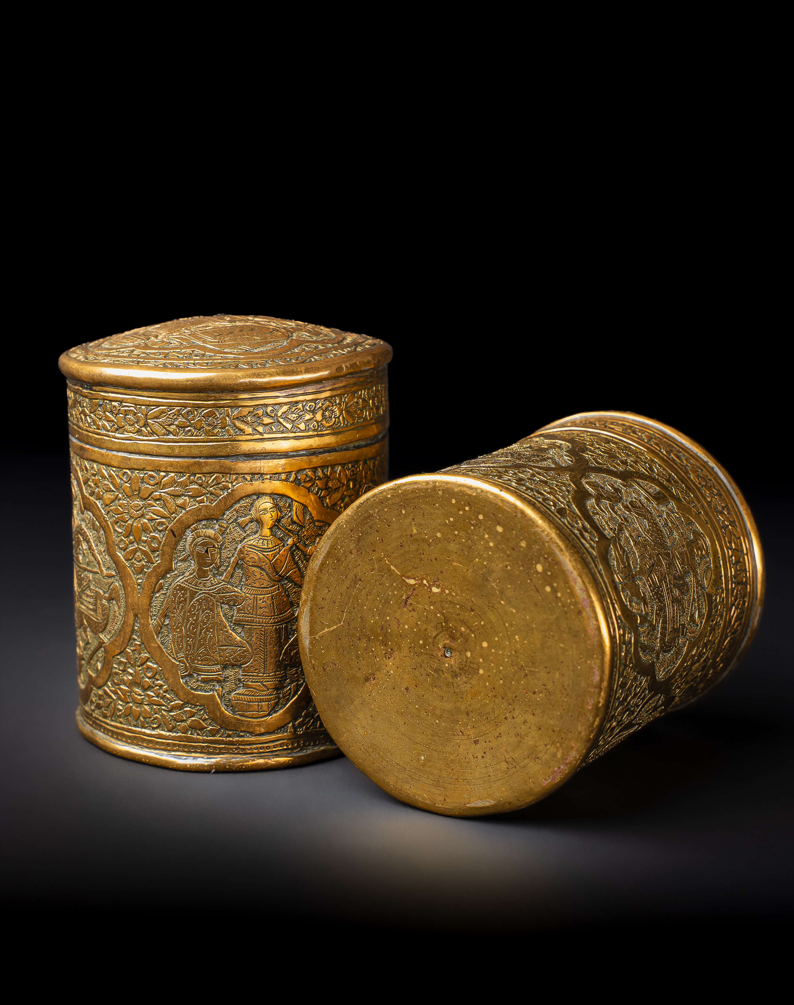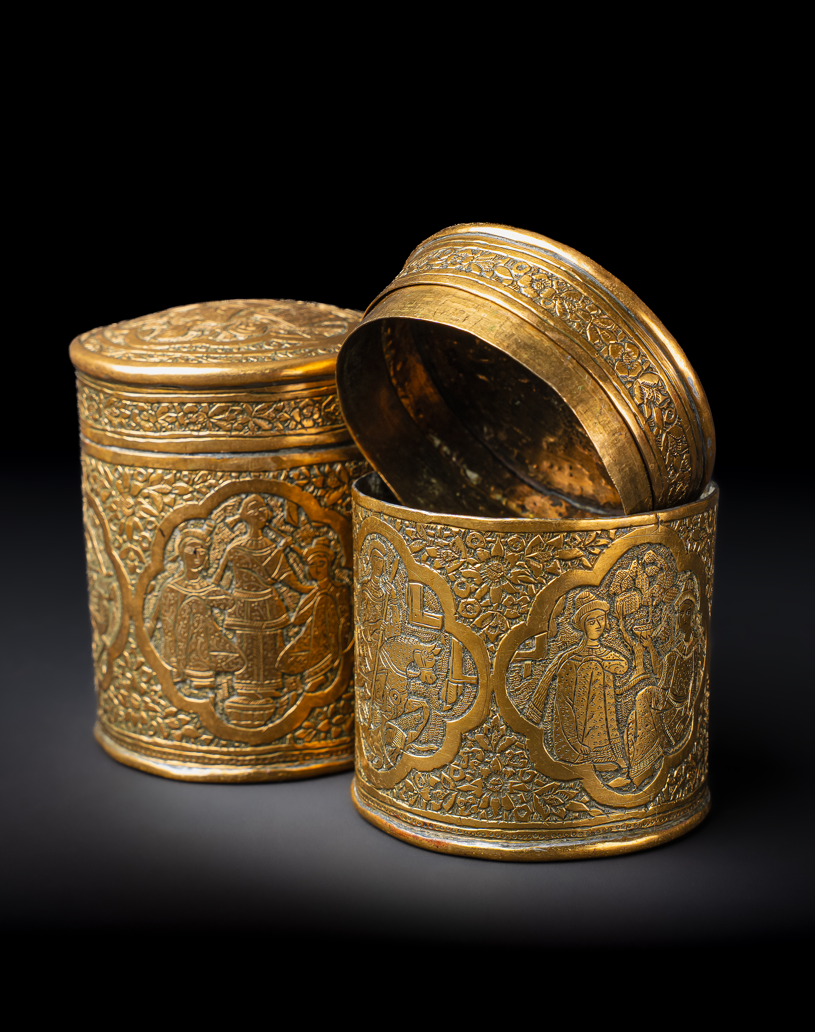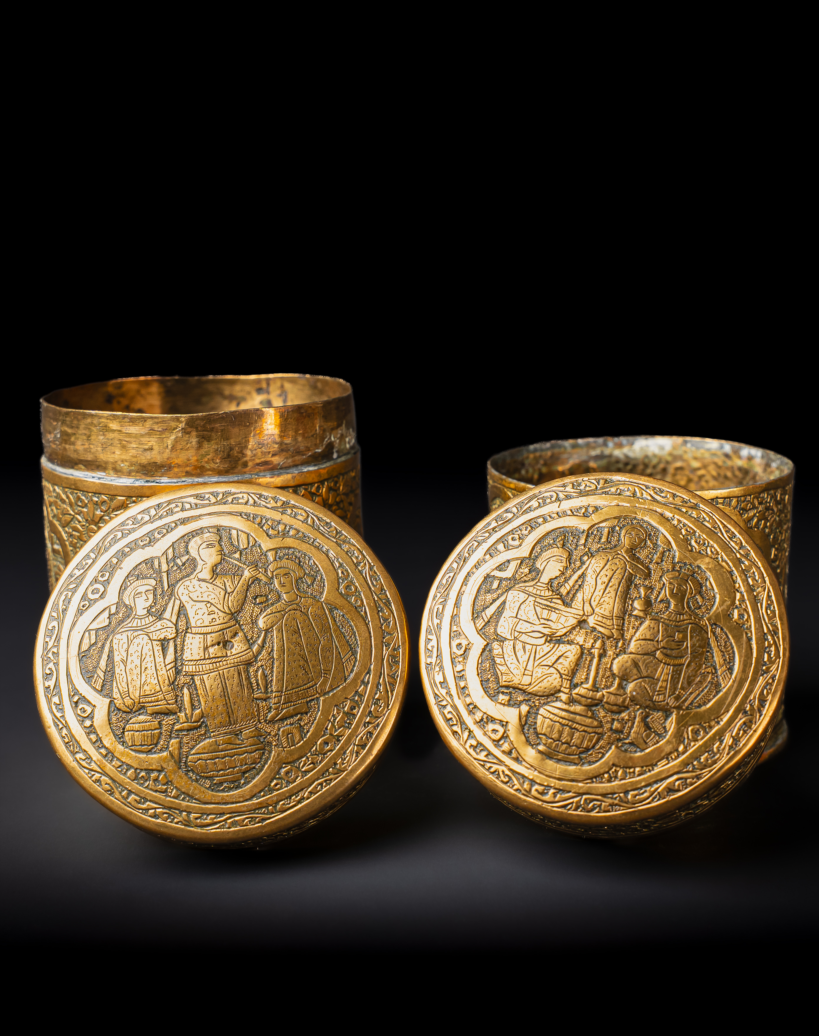 A PAIR OF ENGRAVED BRASS QAJAR JARS, PERSIA, 19TH CENTURY