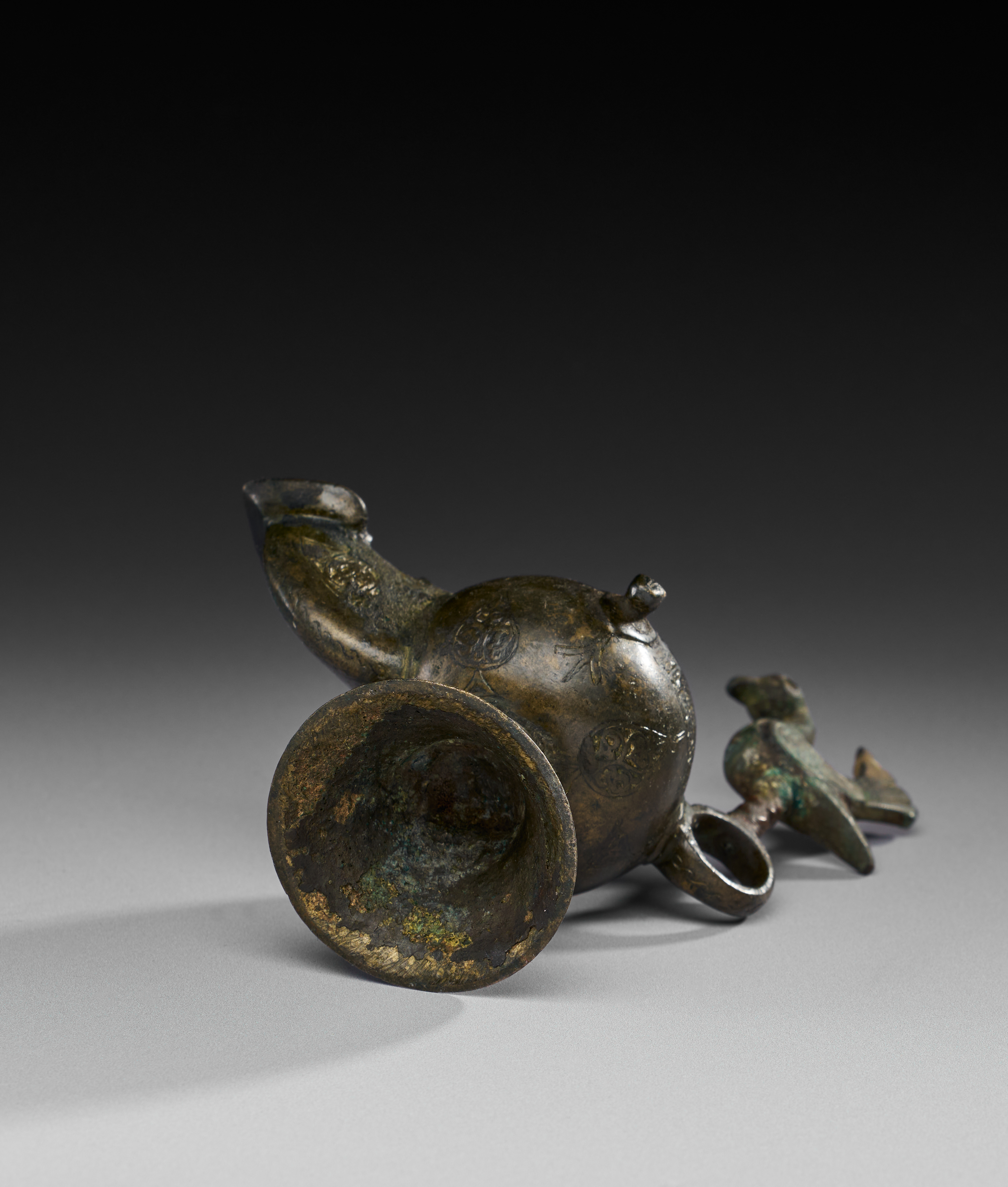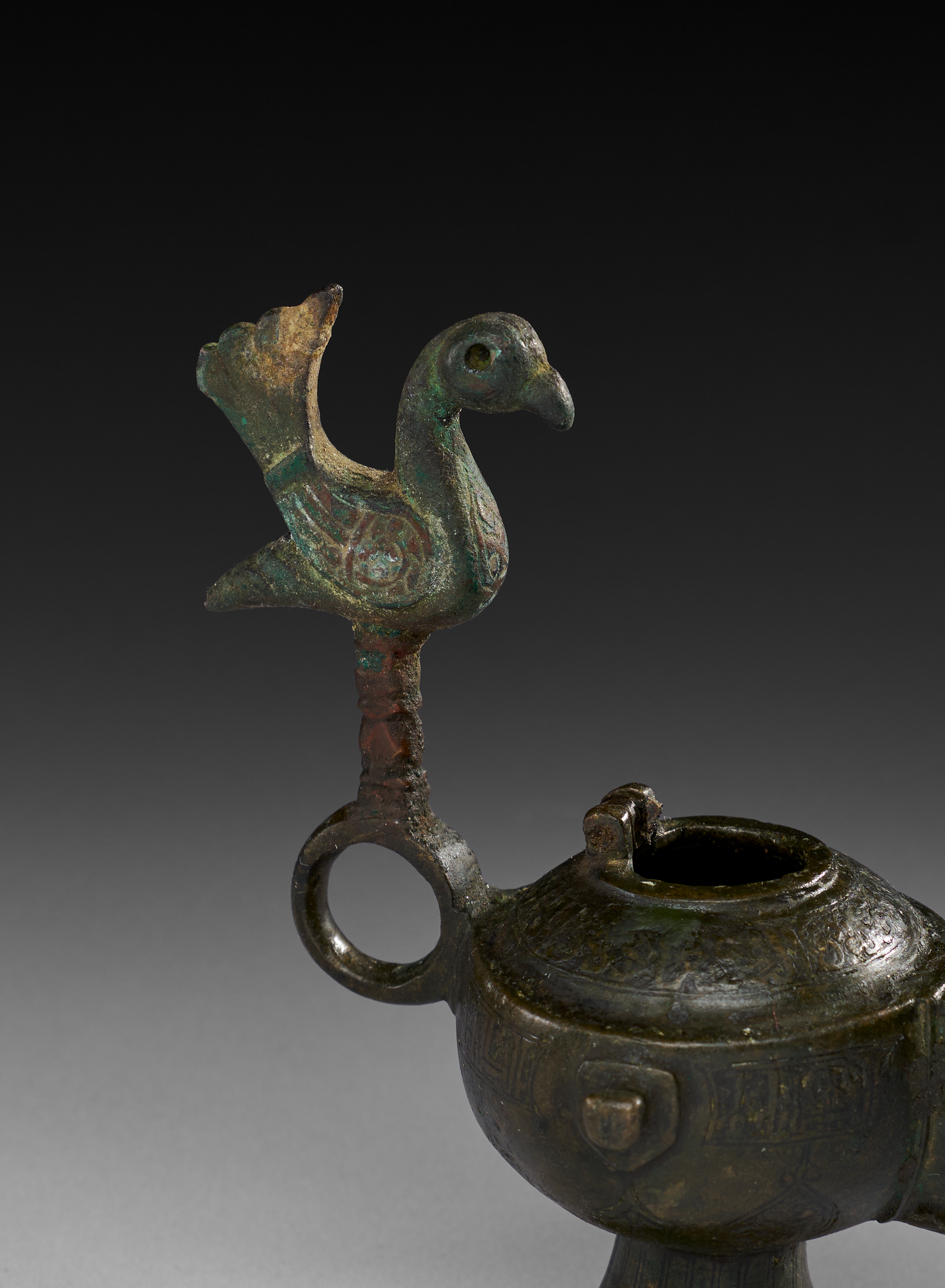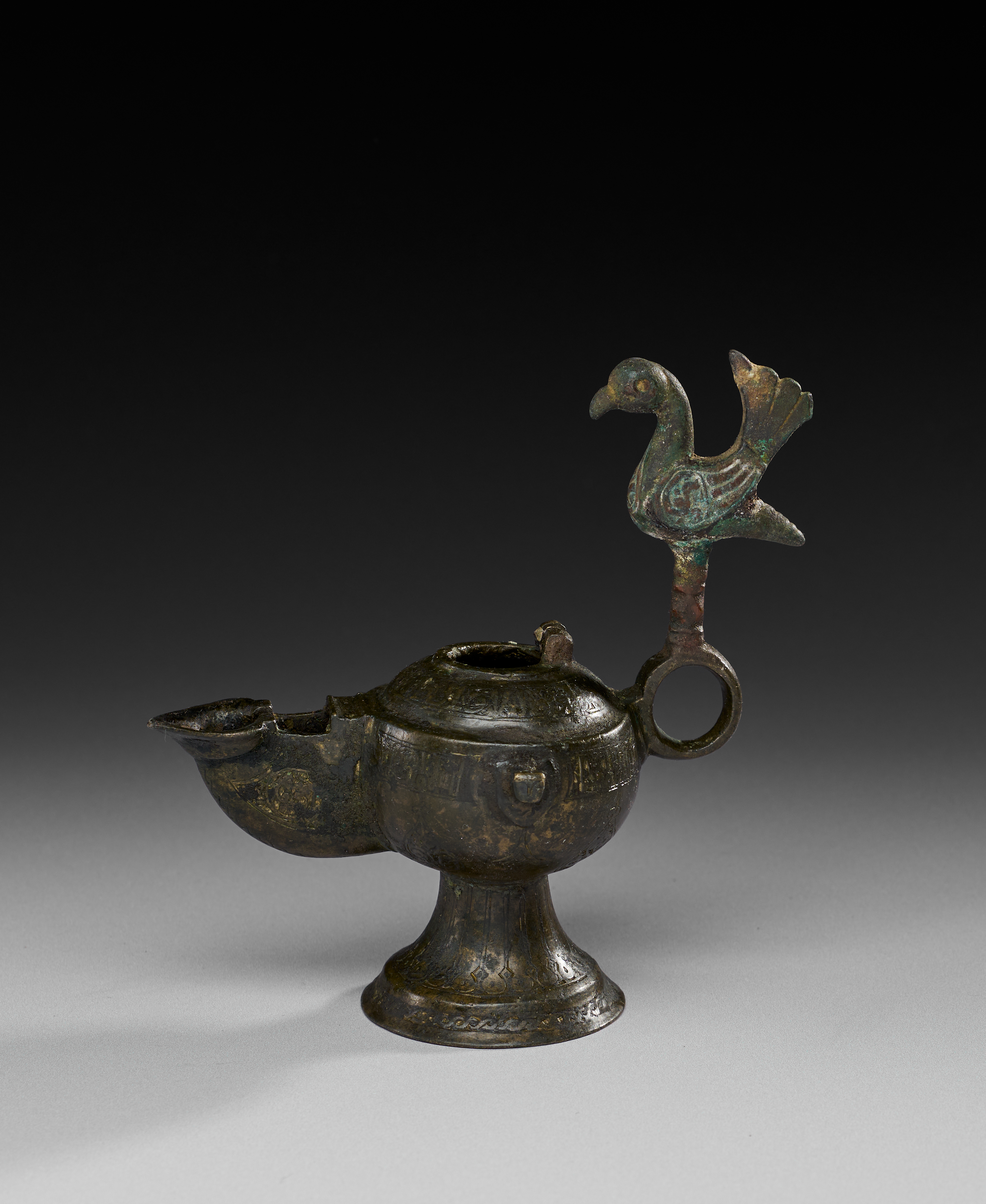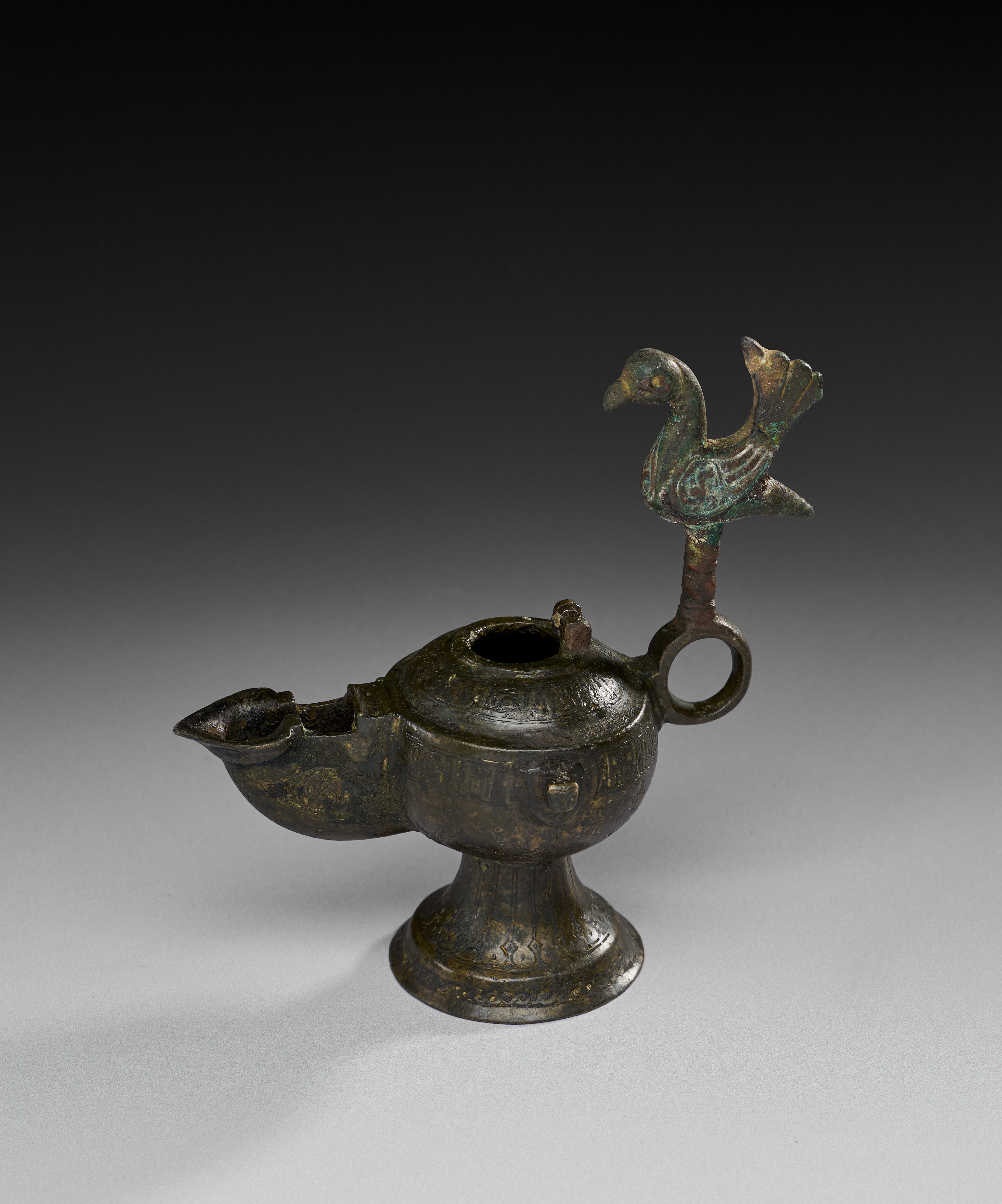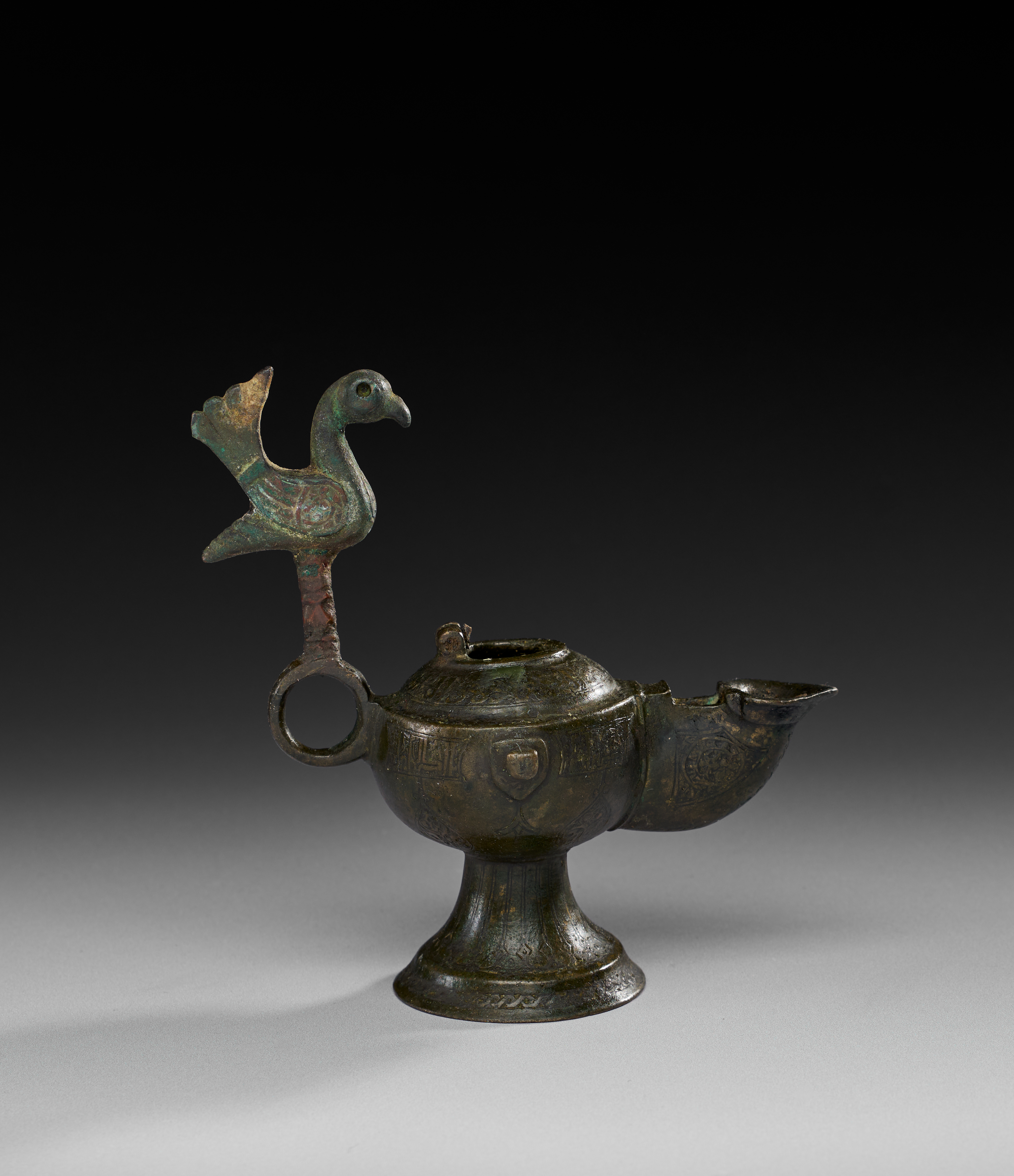 A BRONZE SELJUK OIL LAMP, PERSIA, 10TH – 12TH CENTURY