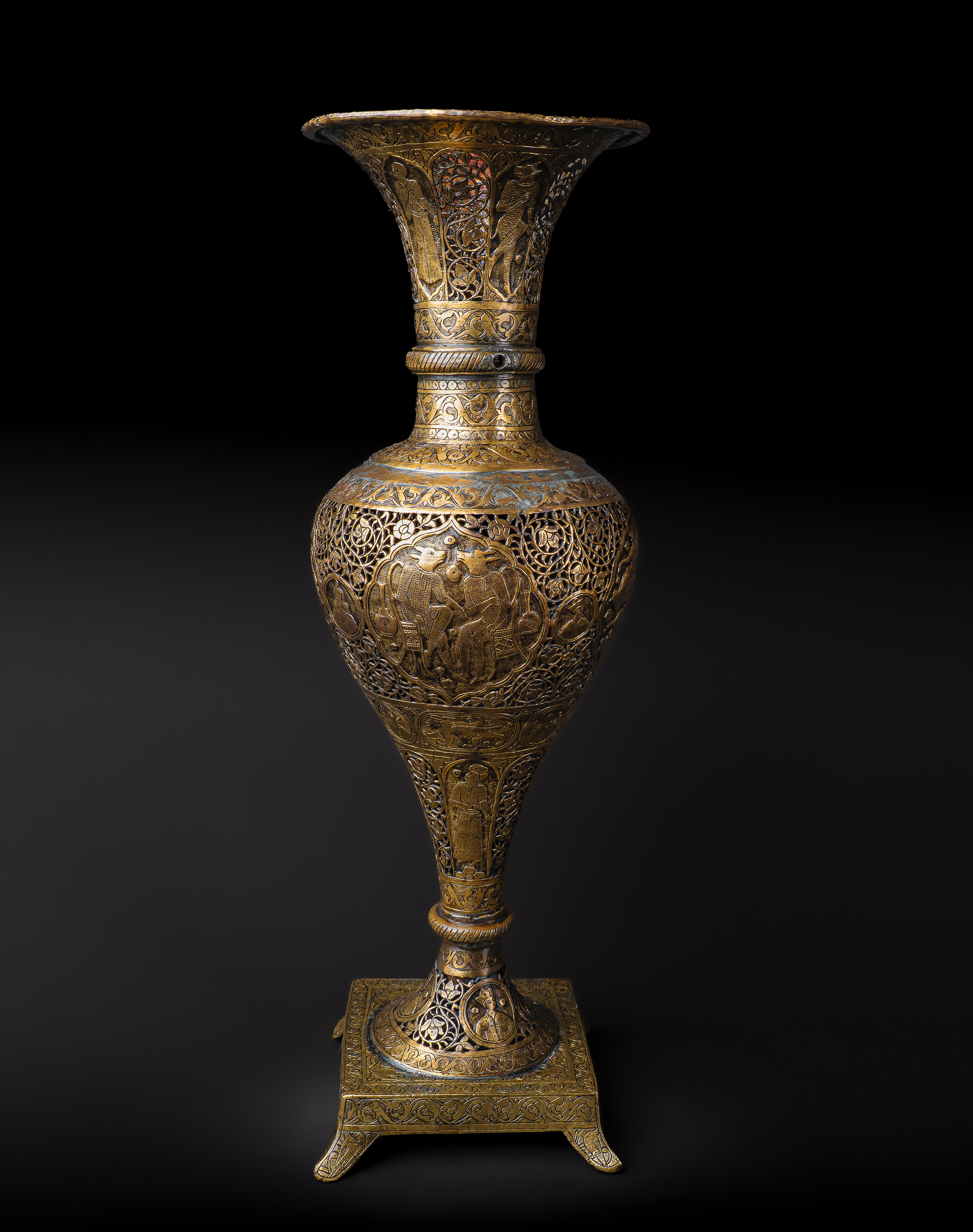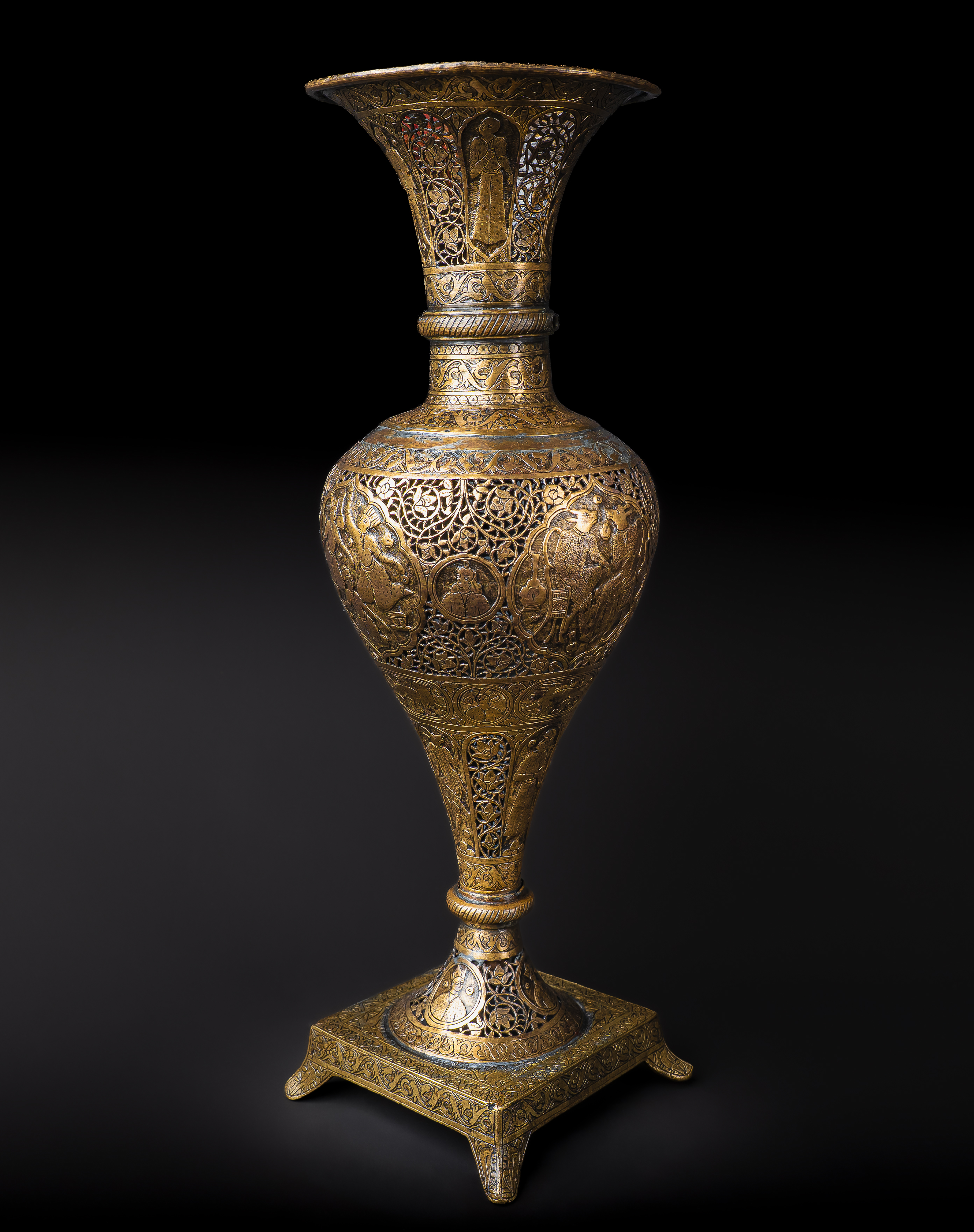 AN ENGRAVED BRASS PERSIAN VASE, QAJAR, 19TH CENTURY
