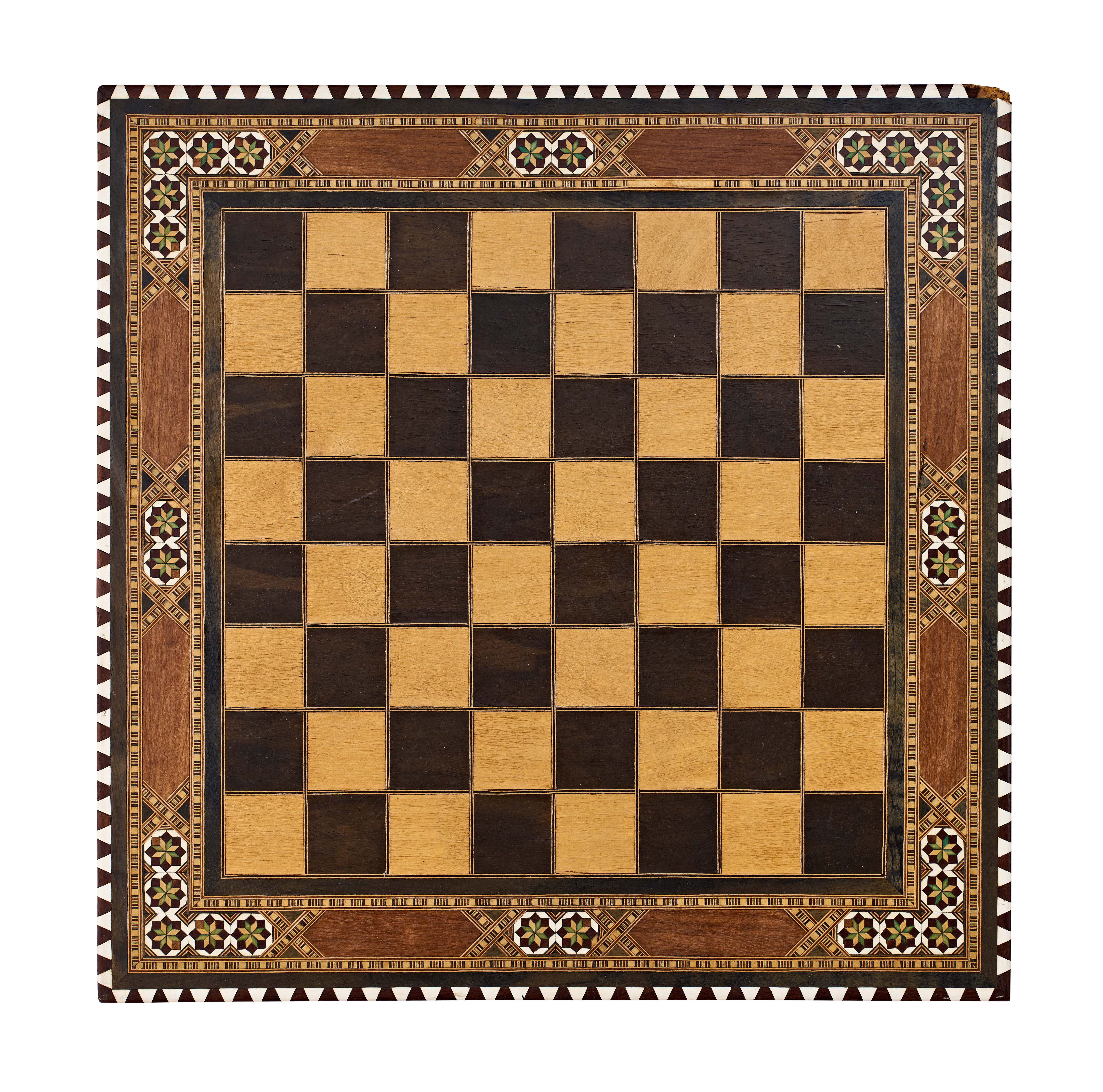 A MOORISH SPANISH INLAID WOODEN CHESS BOARD, EARLY 20TH CENTURY