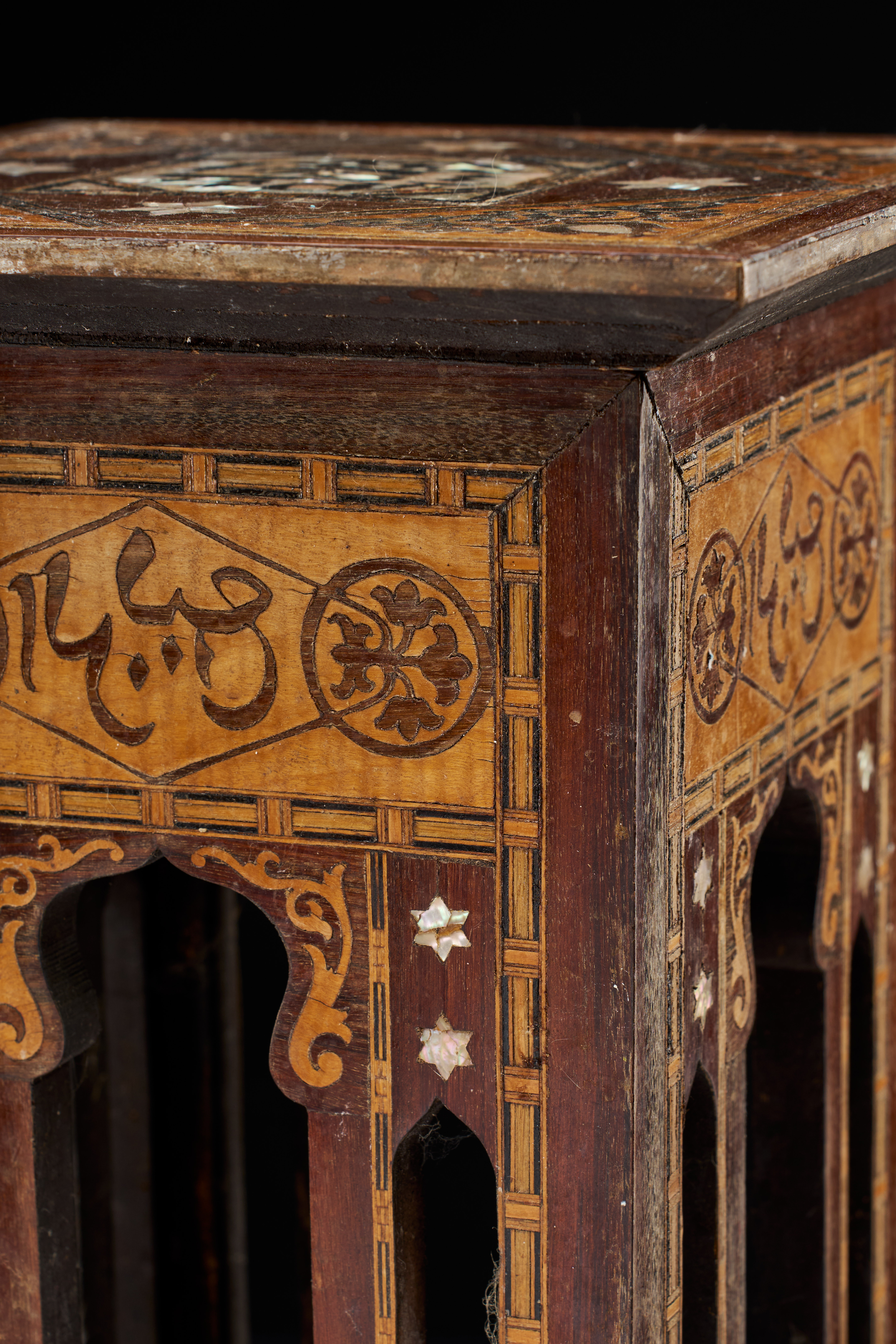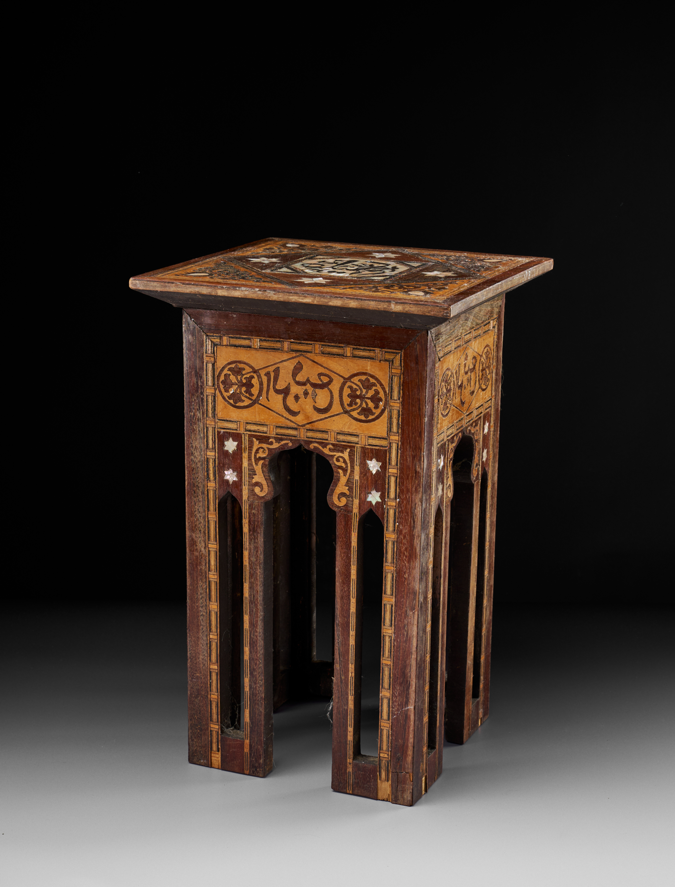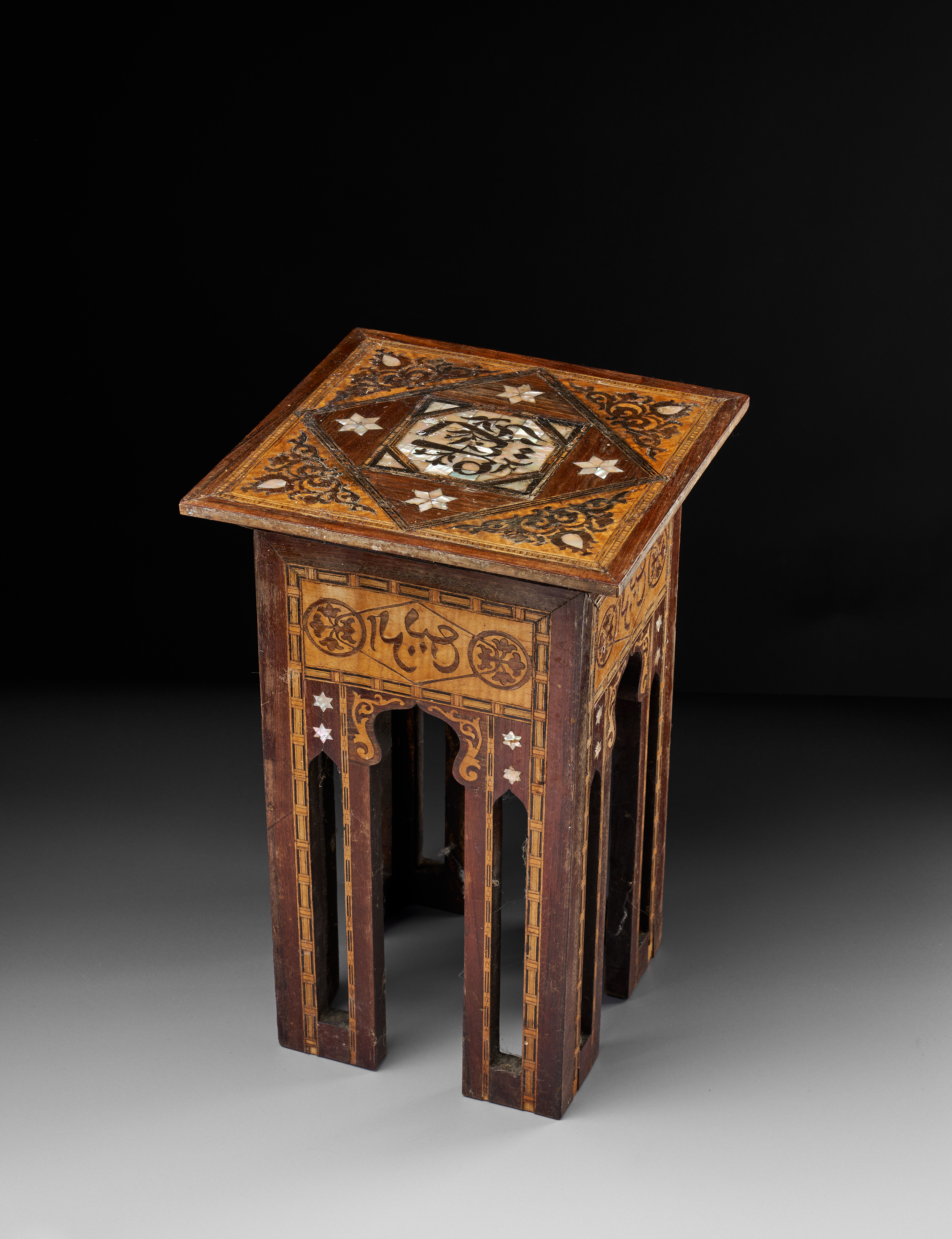 AN ISLAMIC MOTHER OF PEARL AND MARQUETRY INLAID TABLE, DAMASCUS, CIRCA 1900