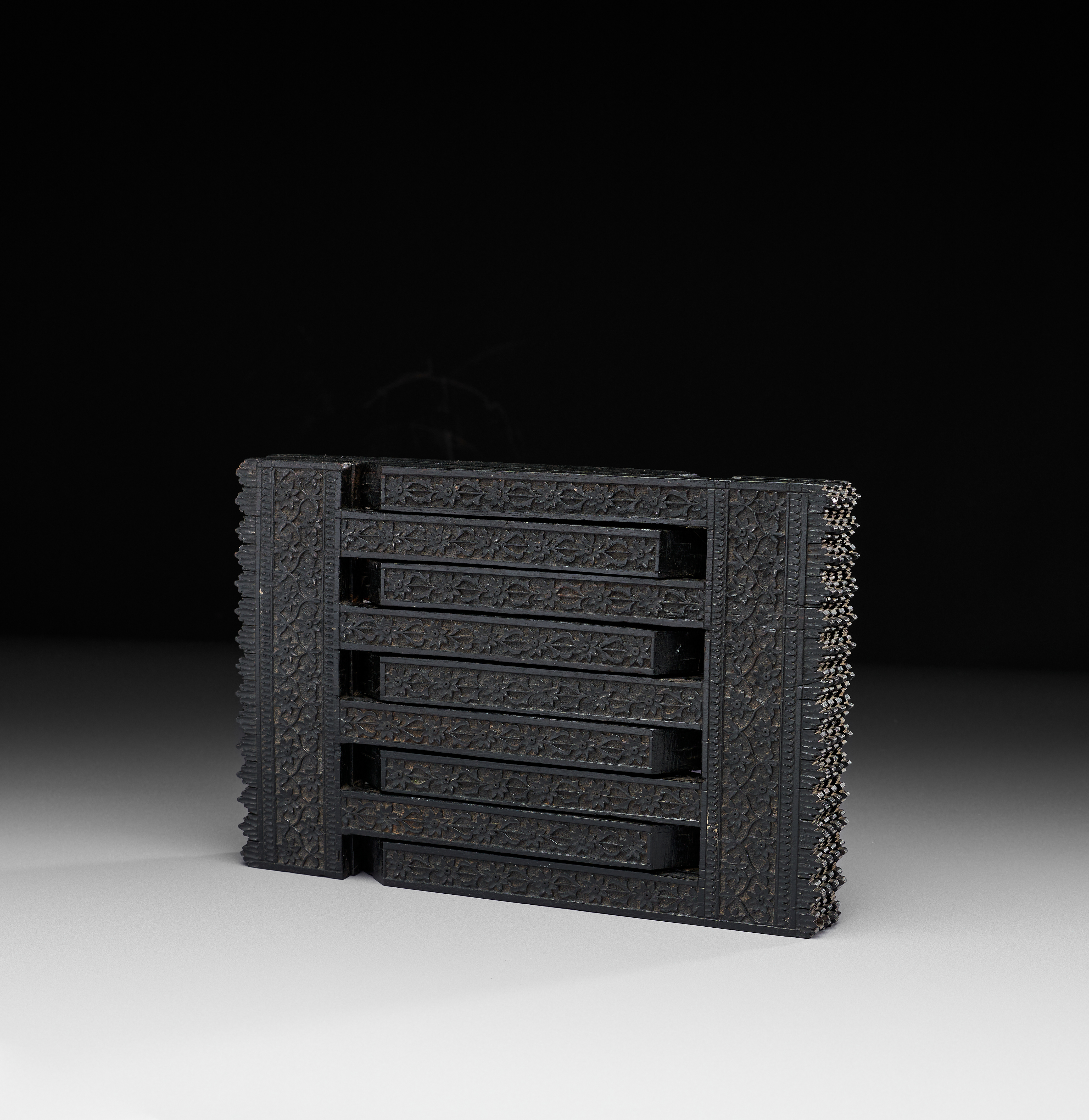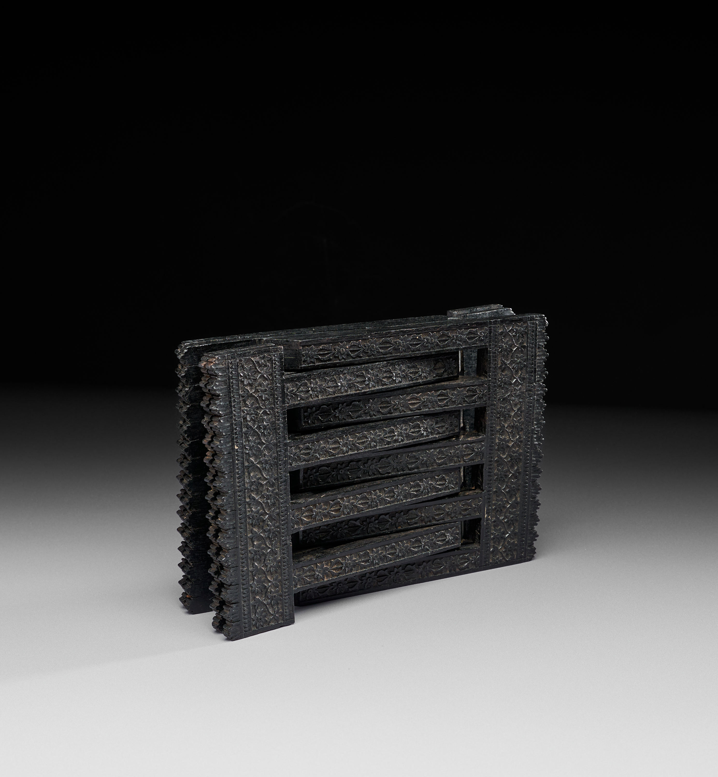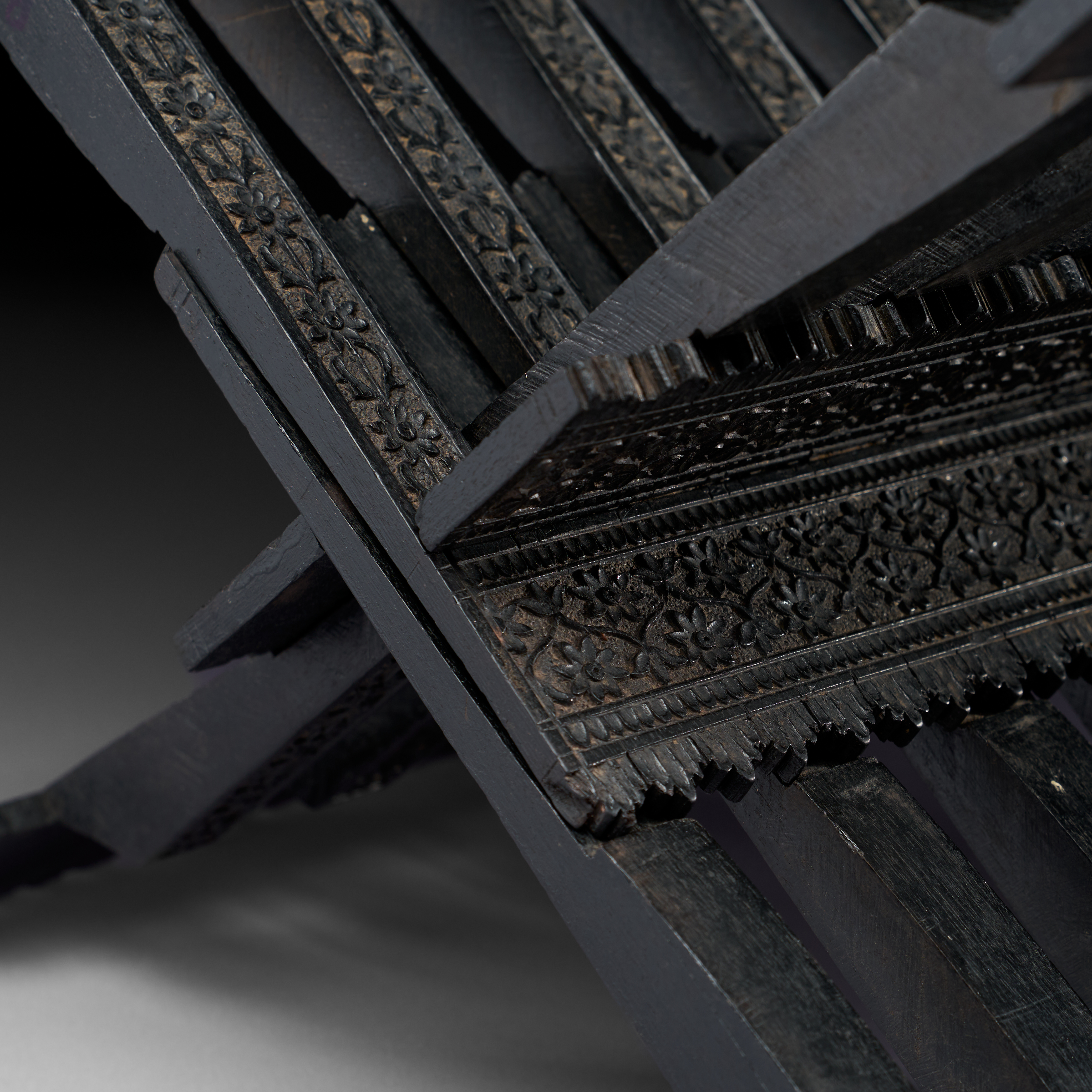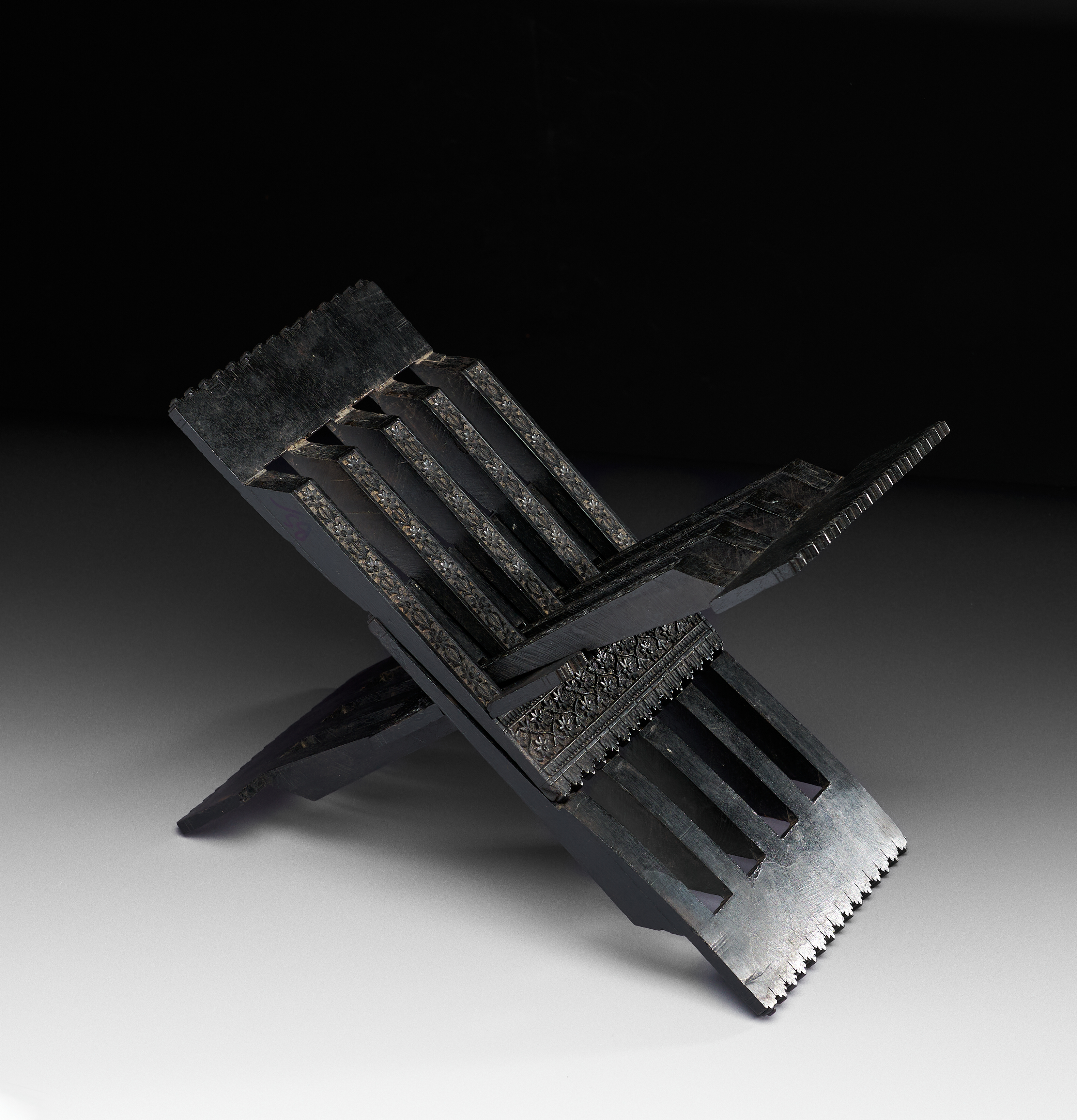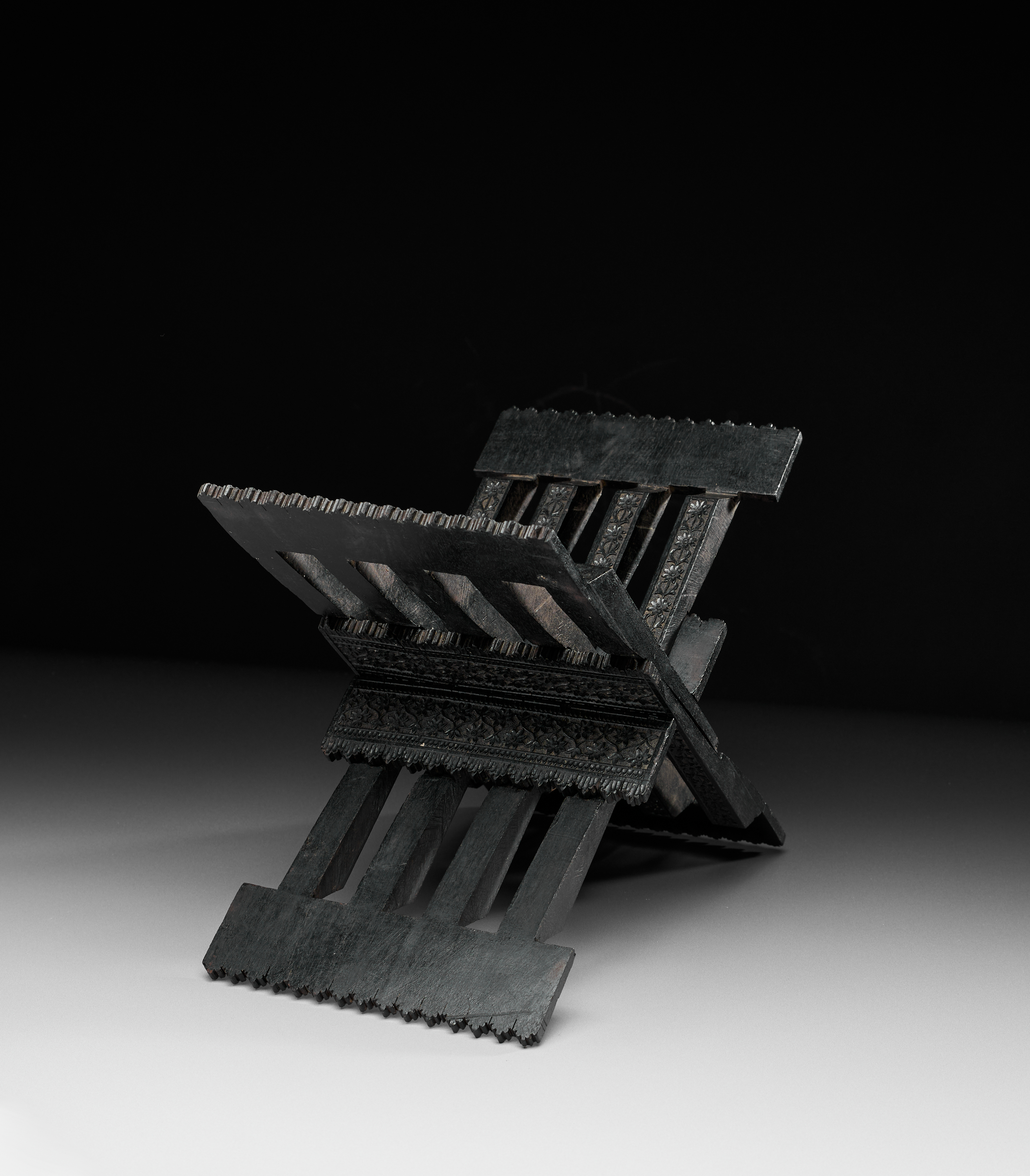 A CARVED NORTH INDIAN EBONY TABLE QURAN STAND, 19TH CENTURY