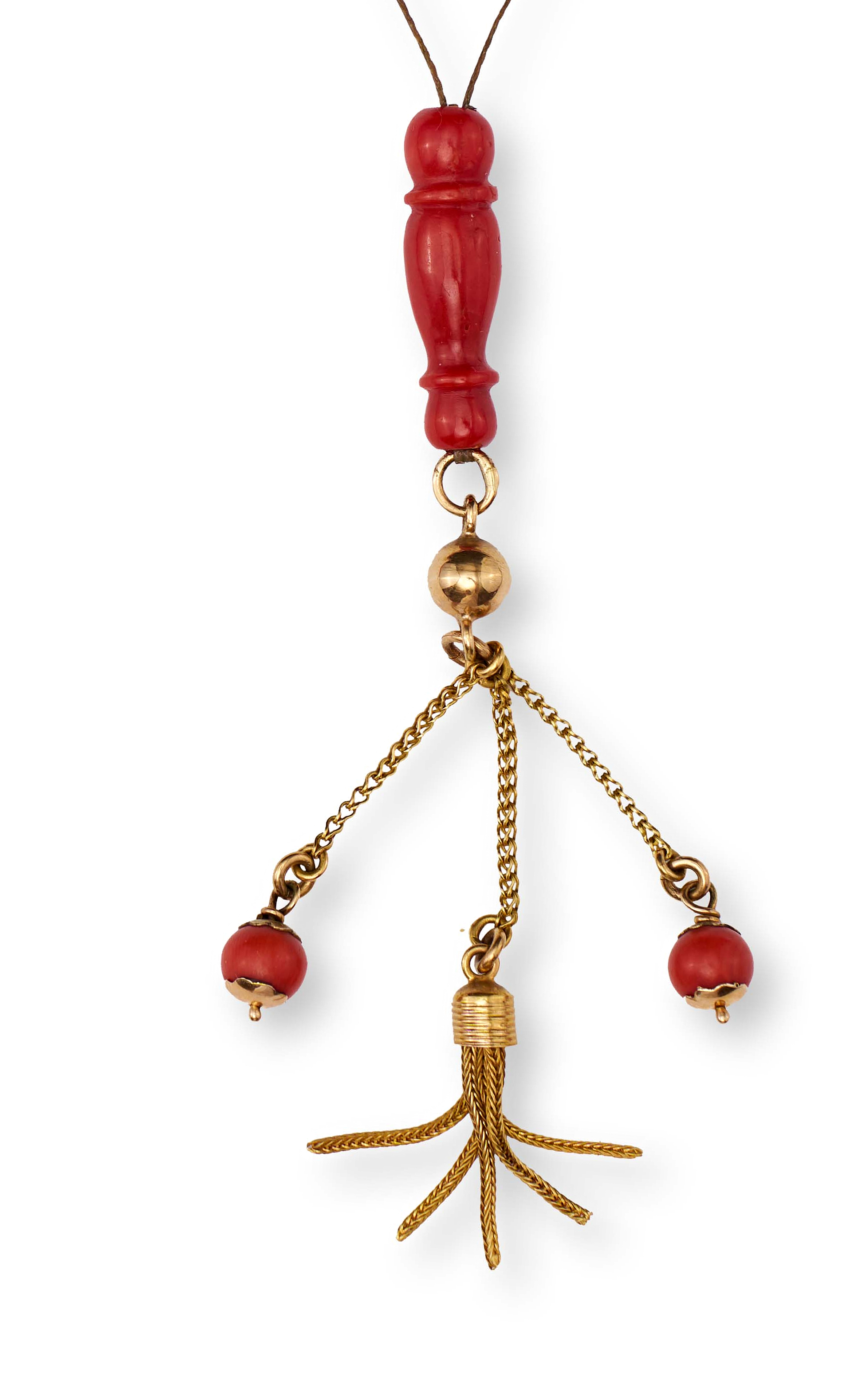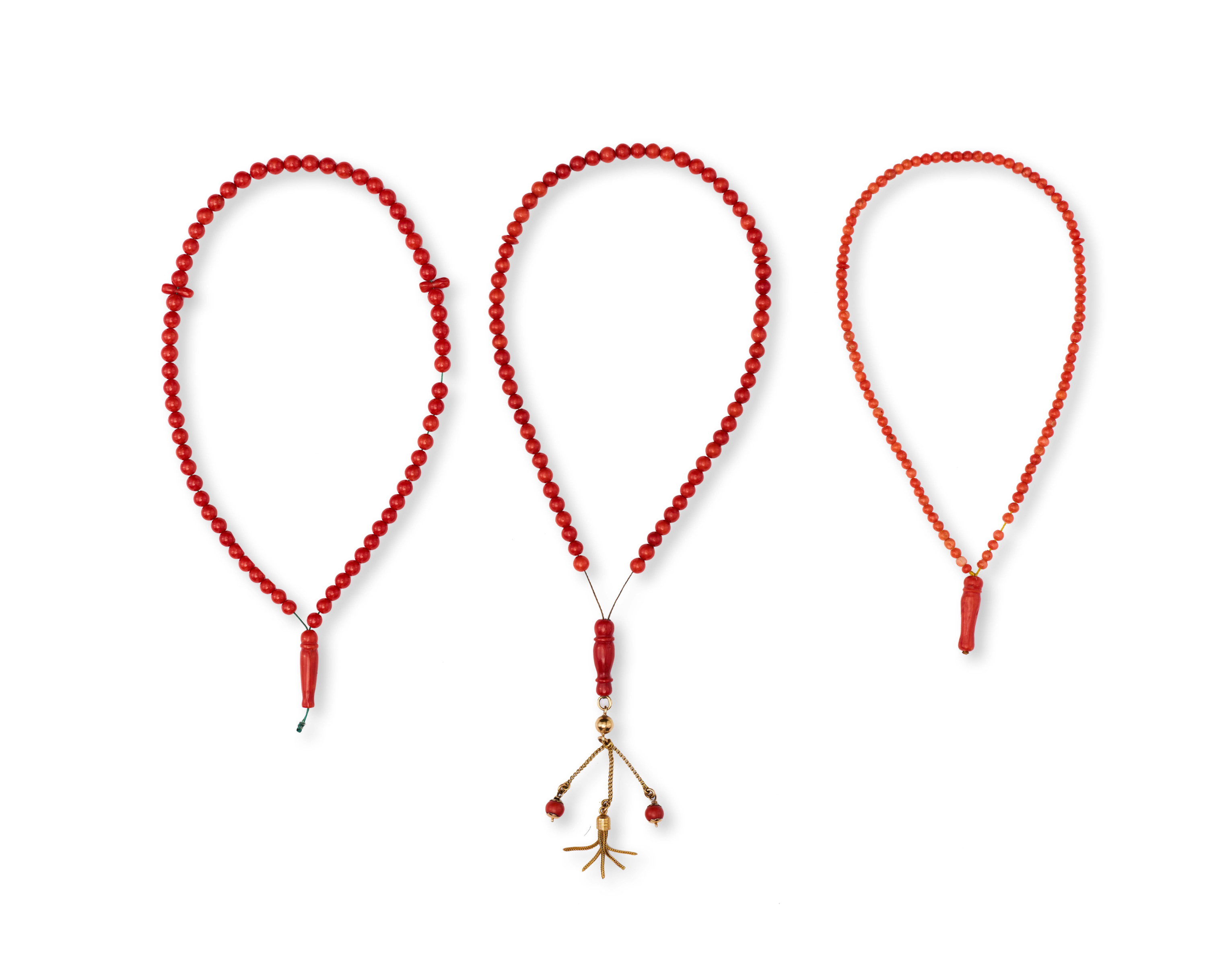 THREE CORAL ROSARY/PRAYER BEADS, 19TH CENTURY