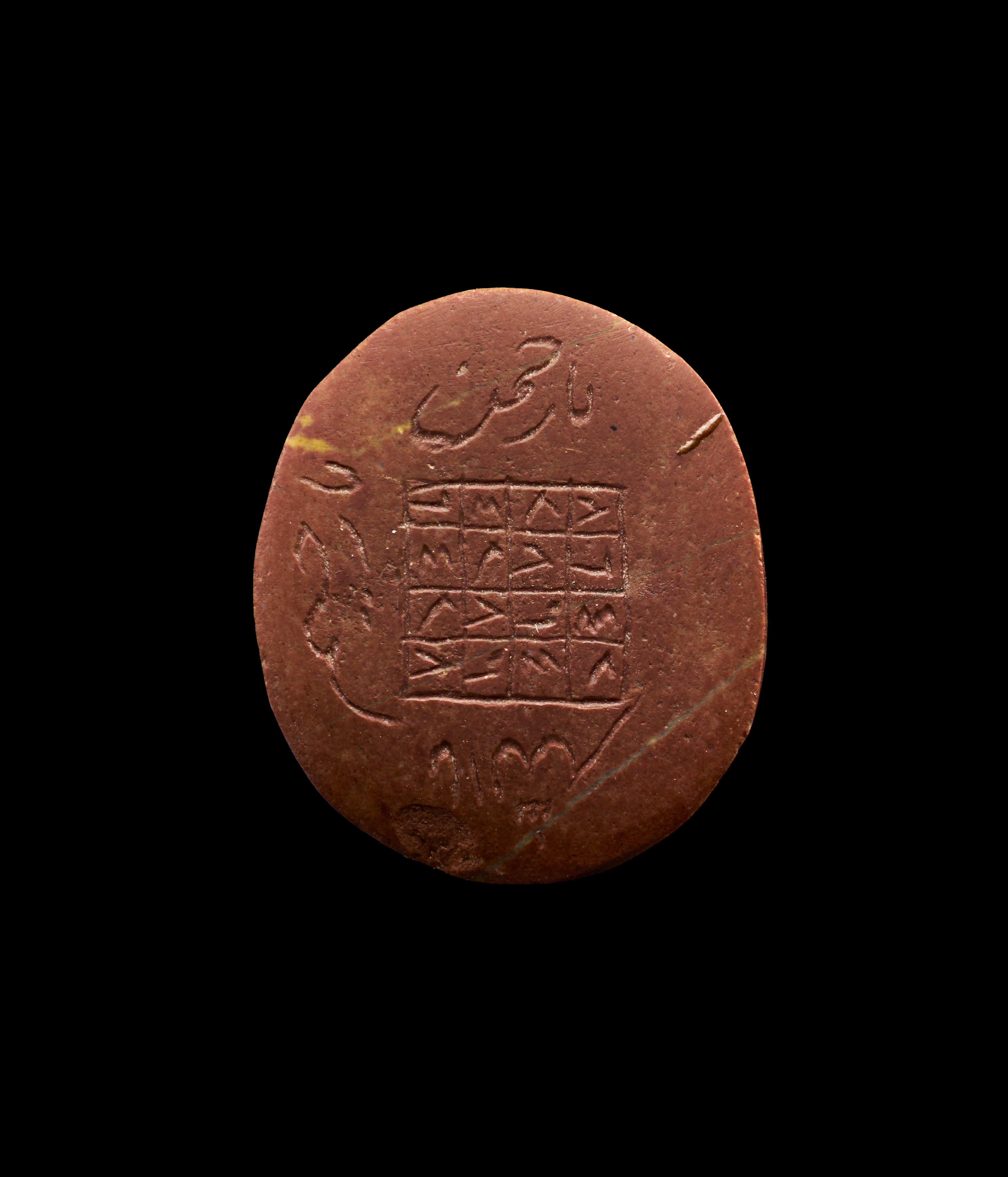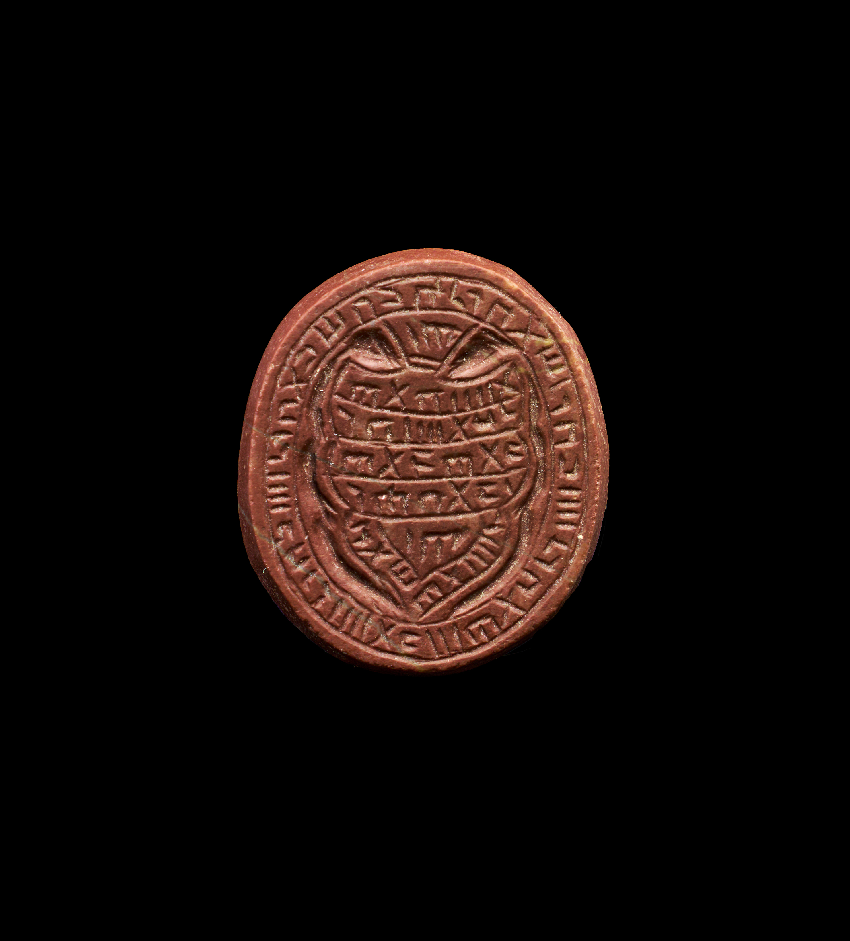 A RED HARD RING STONE WITH JUDAICA JEWISH AND ARABIC INSCRIPTIONS