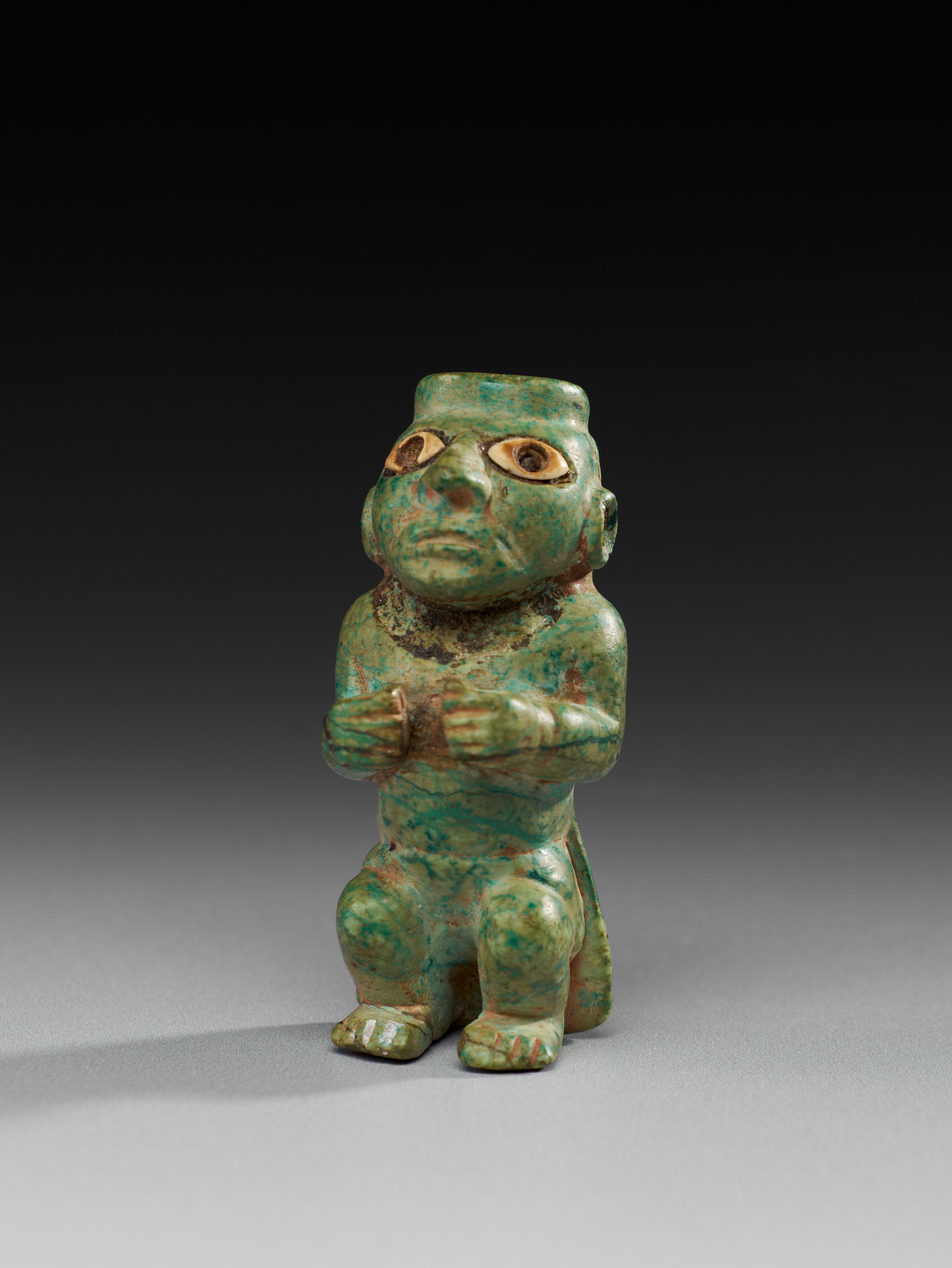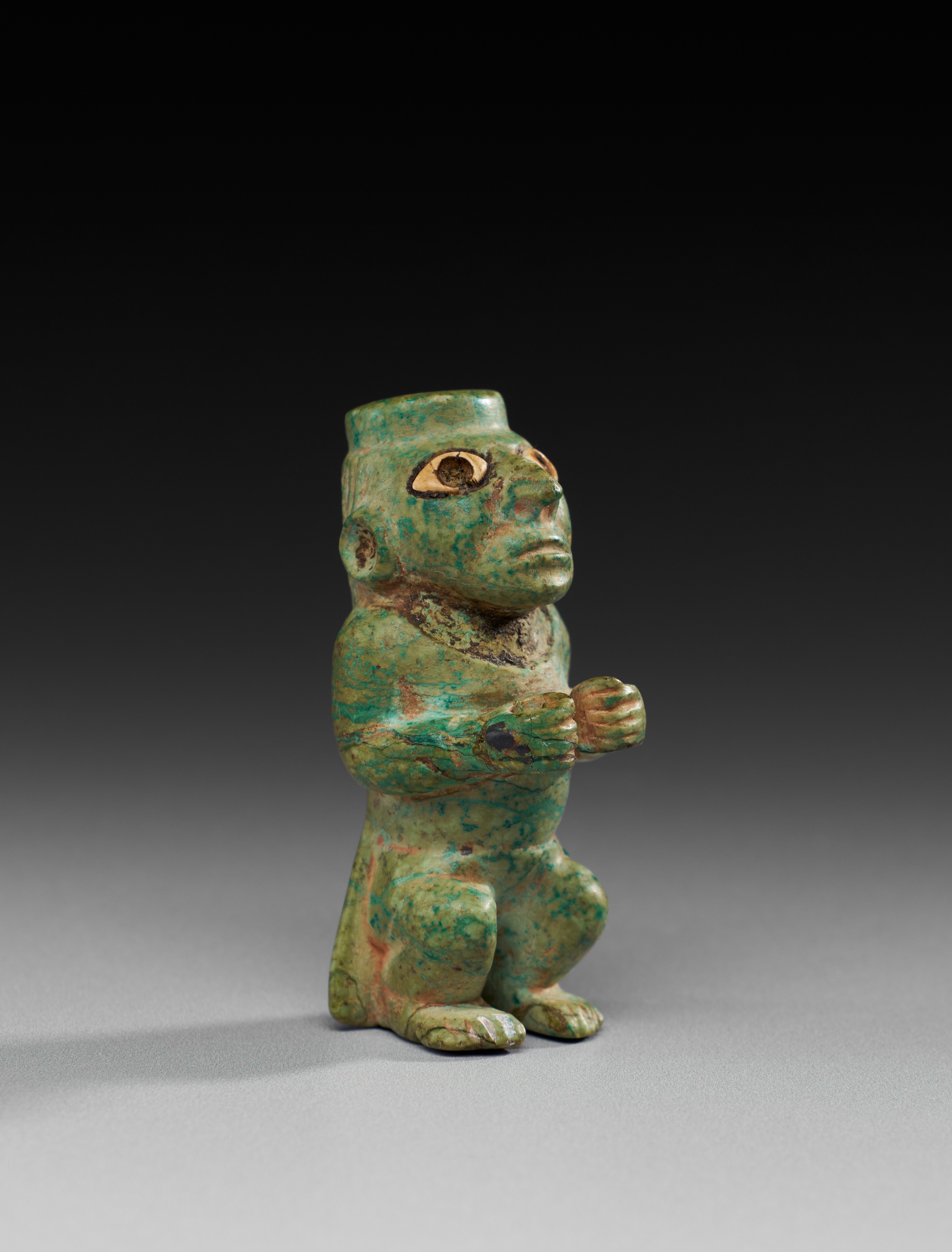 A CARVED GREEN STONE FIGURE, POSSIBLY SOUTH AMERICAN