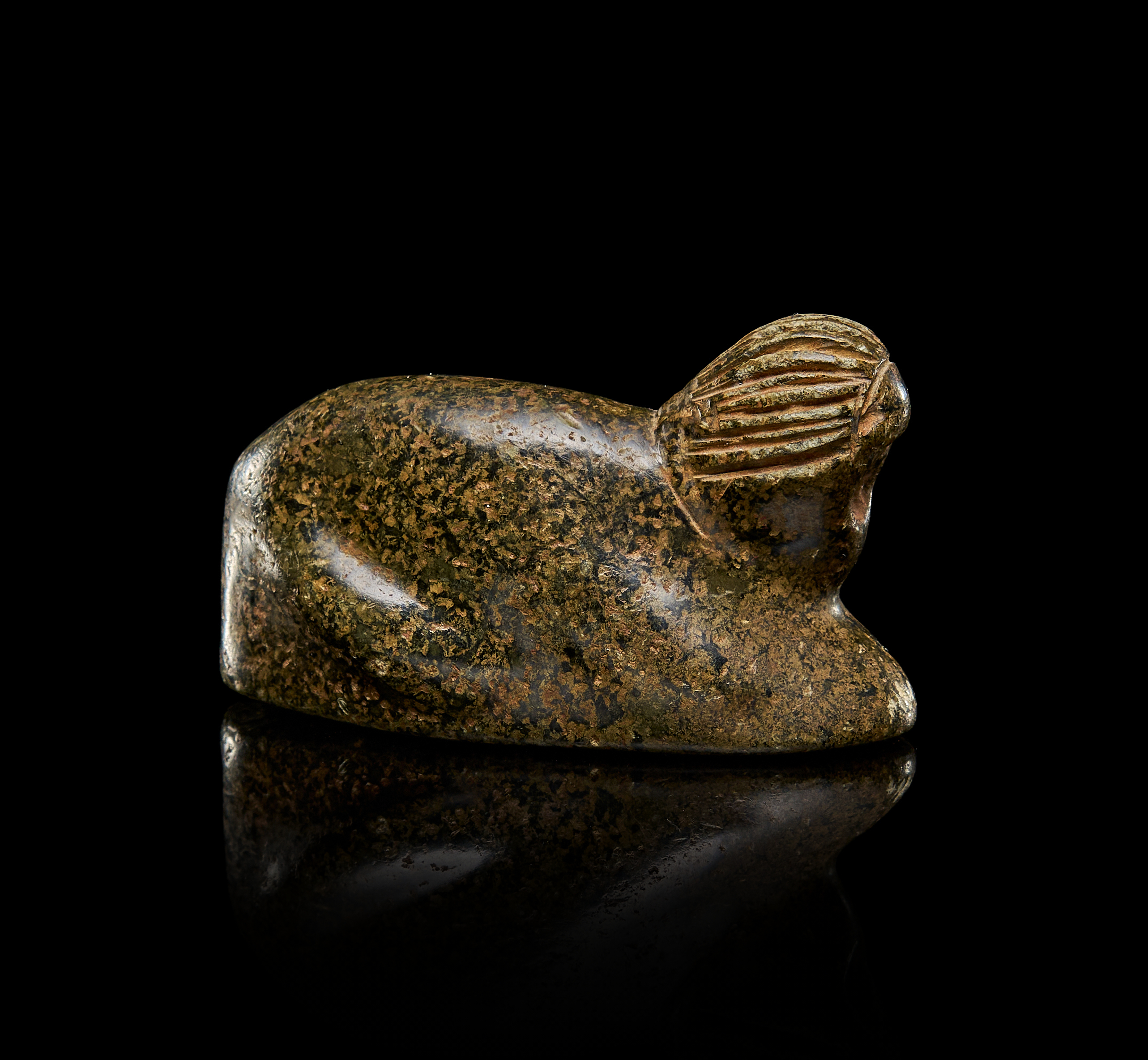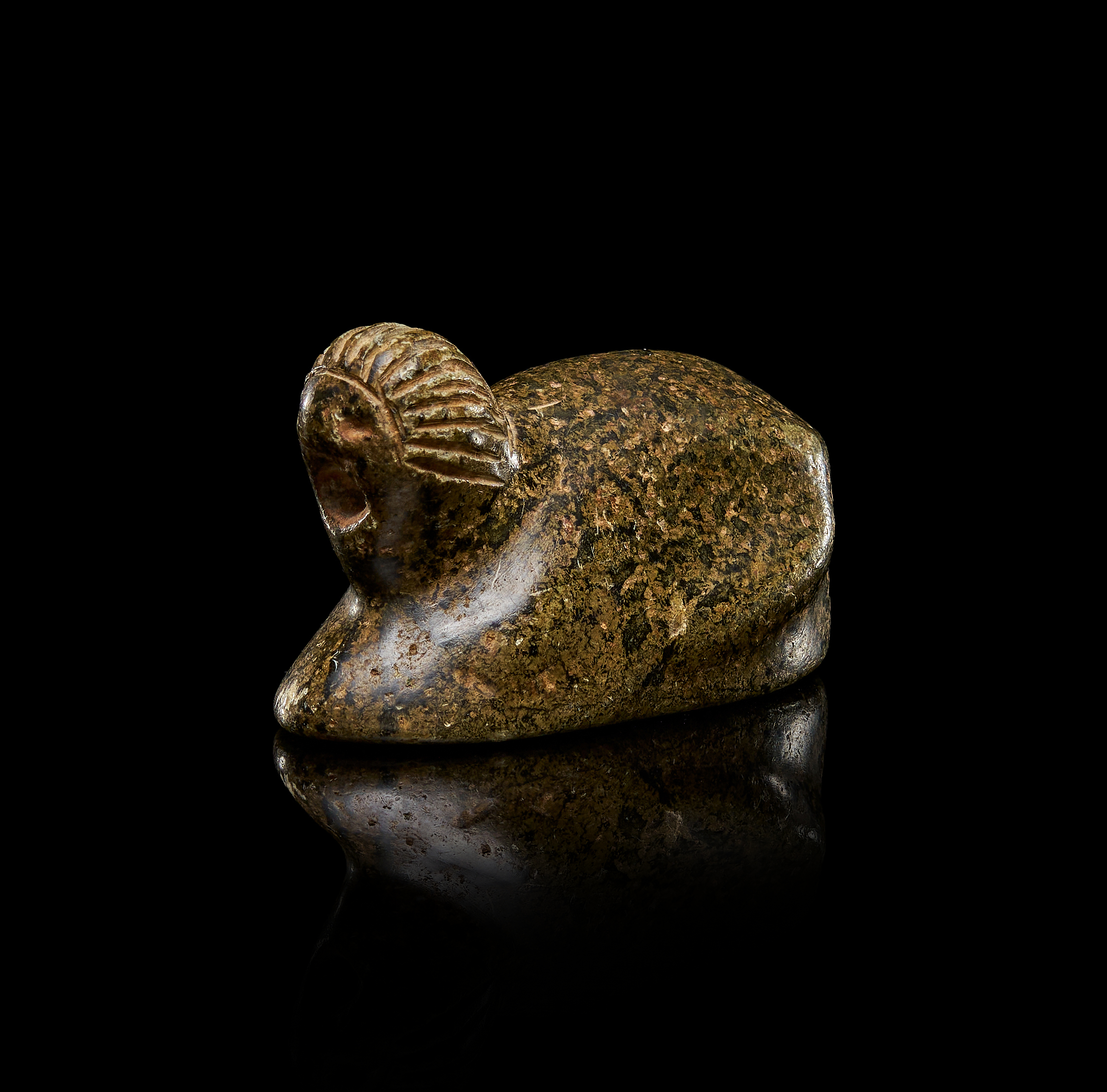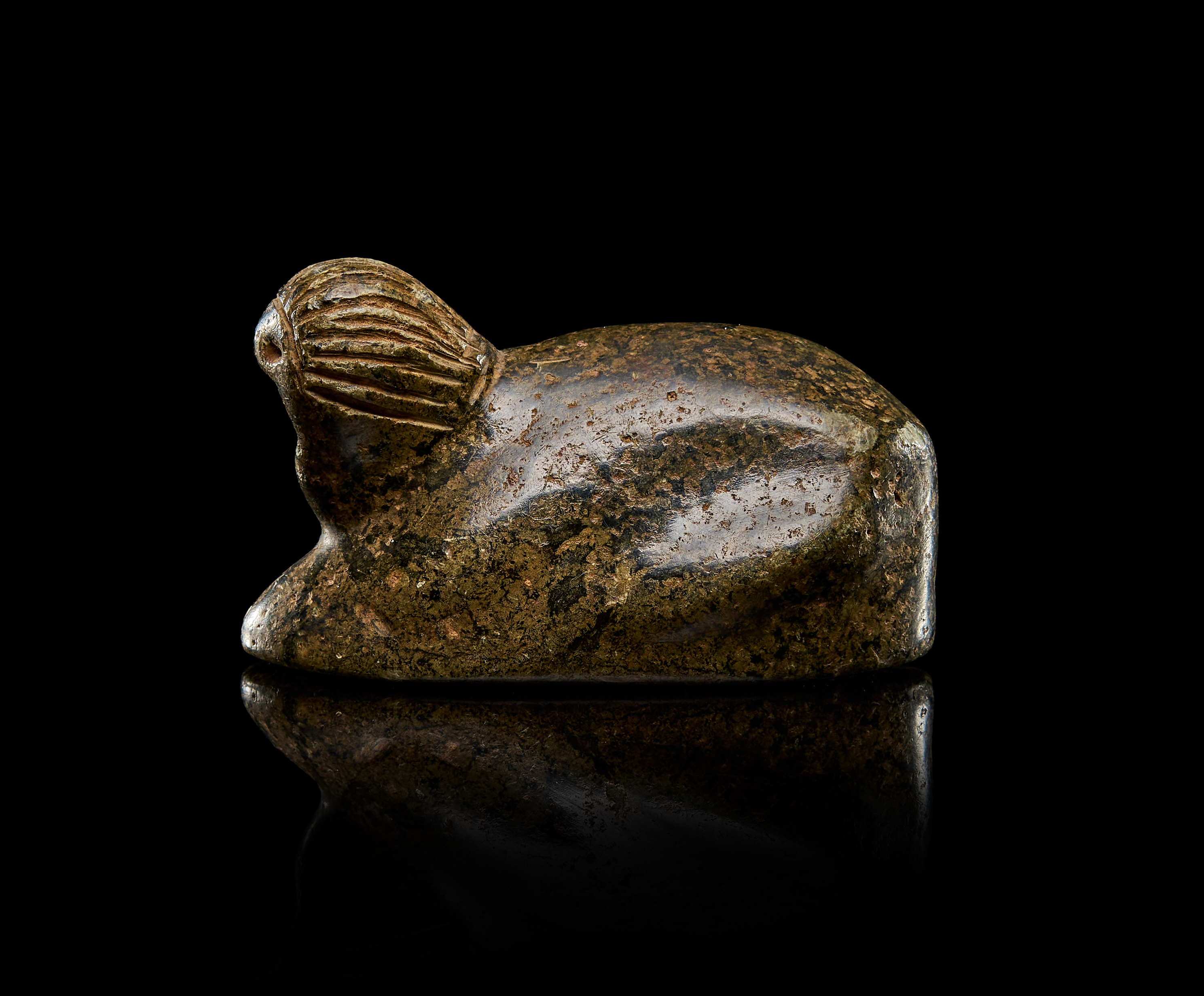 AN SEATED ANIMAL IN SCHIST STONE, ANCIENT STYLE, 1ST MILLENNIUM B.C