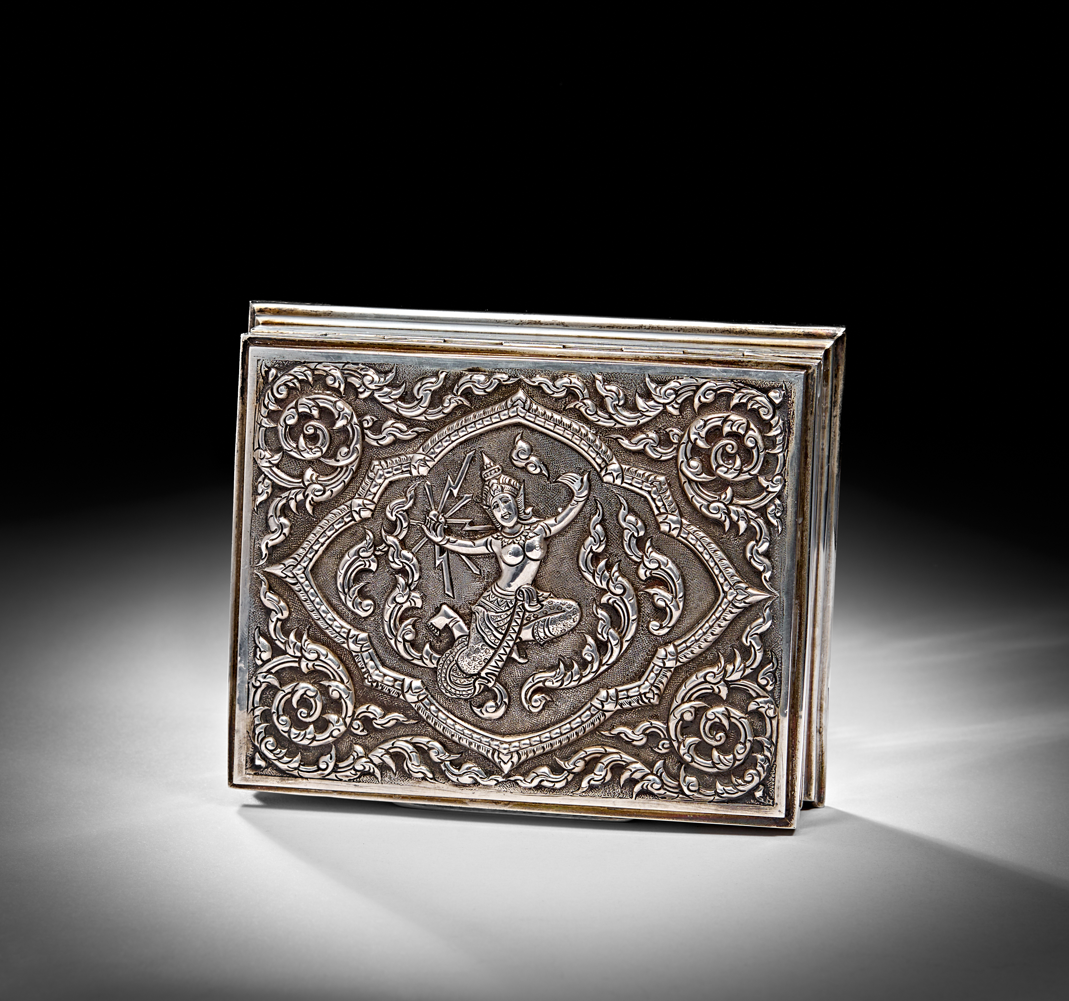 A VINTAGE SIAM STERLING SILVER HINGED LIDDED BOX, 20TH CENTURY