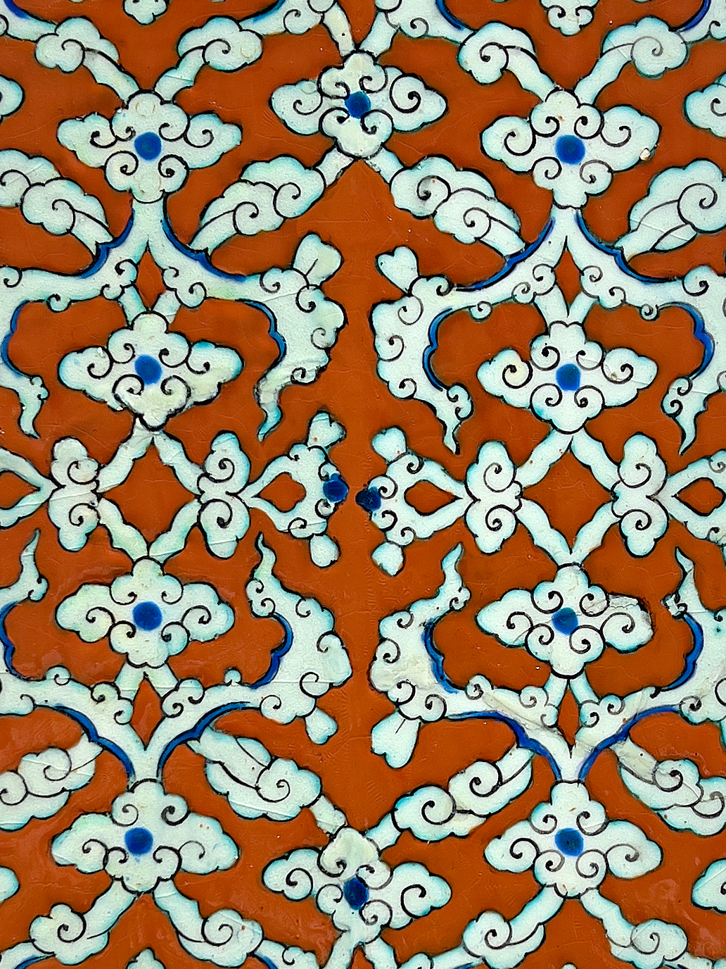 Tiles of similar design, though with a turquoise ground, are in the Suleymaniye Mosque (1550-57) and the Tomb of Selim II (r.1574-75).