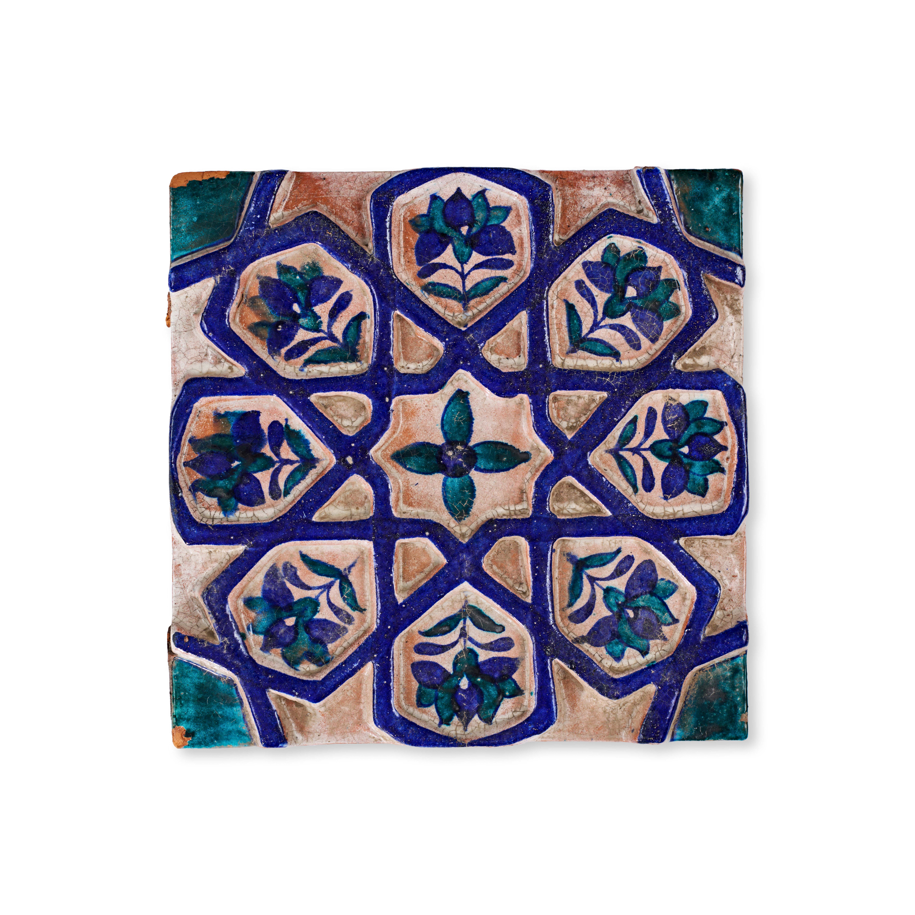 A SQUARE MULTAN RELIEF TILE, PAKISTAN, 19TH CENTURY